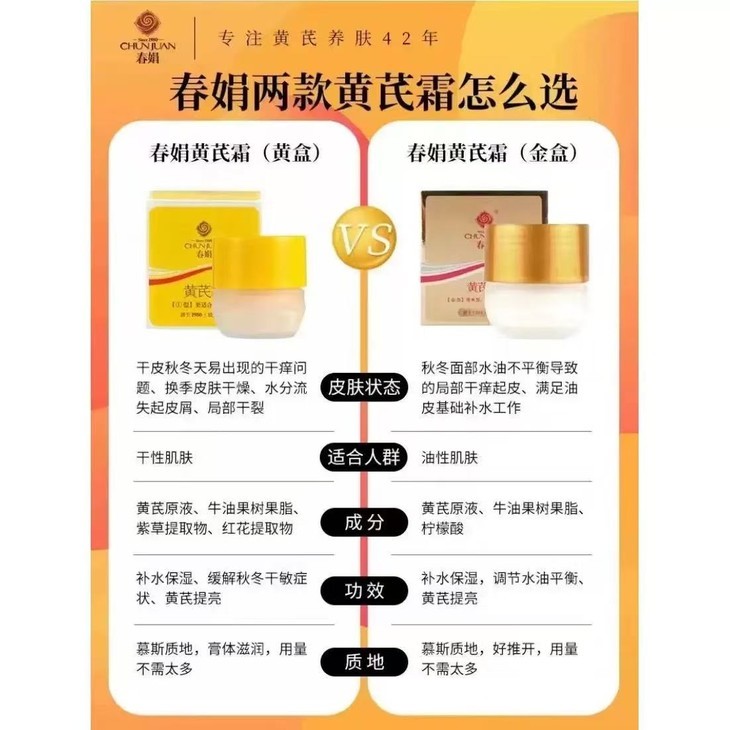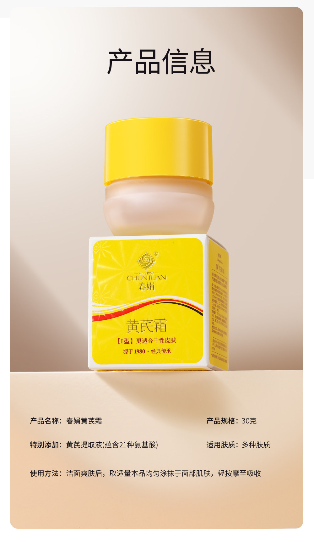 春娟黄芪面霜30G 补水保湿滋润老牌国货黄暗护肤
