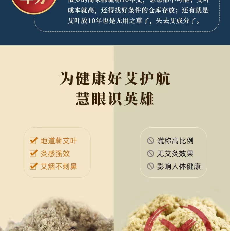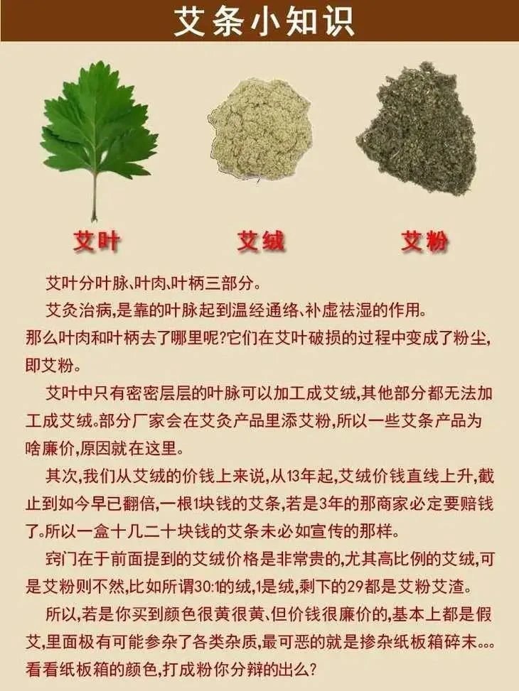 所以,外面养生馆压根没有这个能力去辨别真伪,因为就凭肉眼是看不出来的,到底几年也无法辨别,除非你是种植艾叶几年以上的!