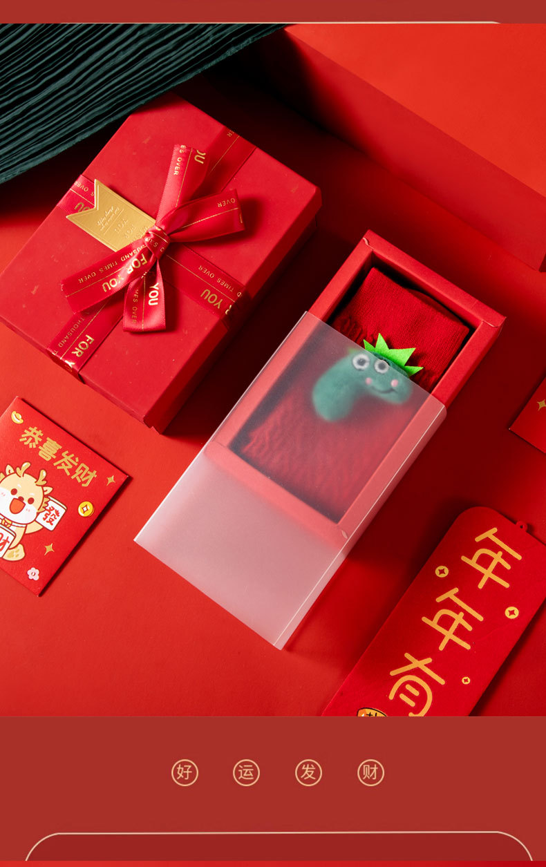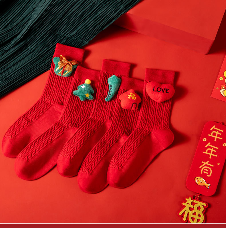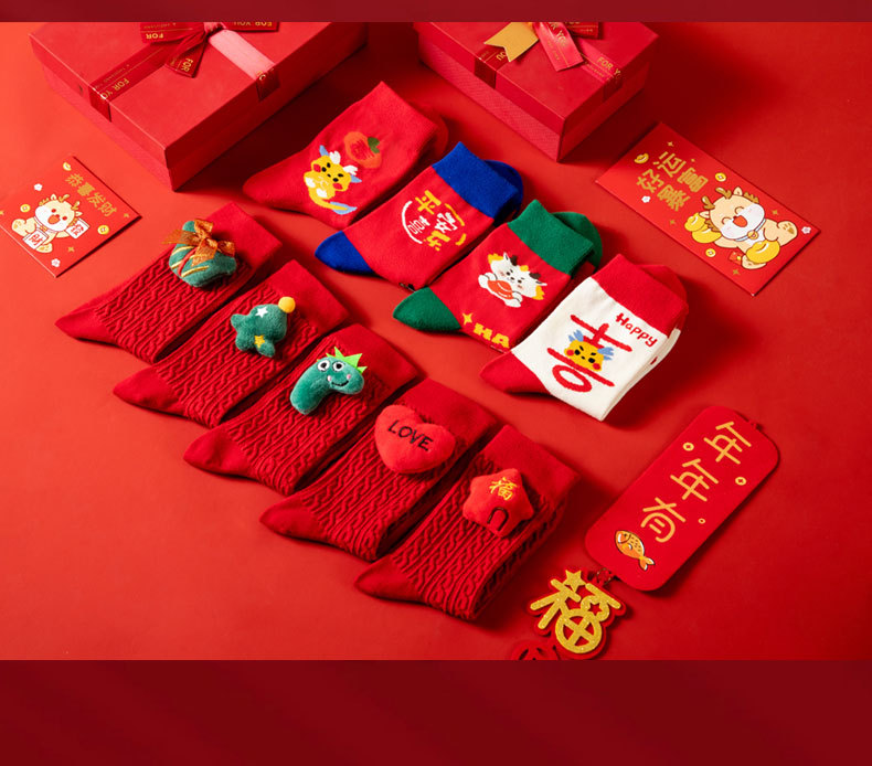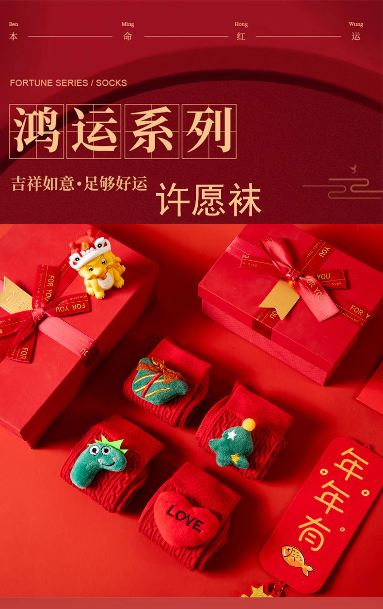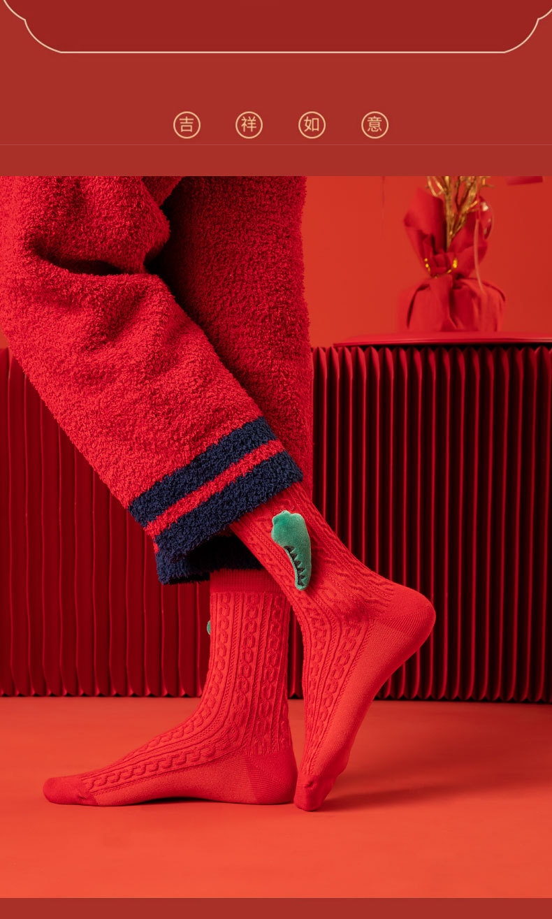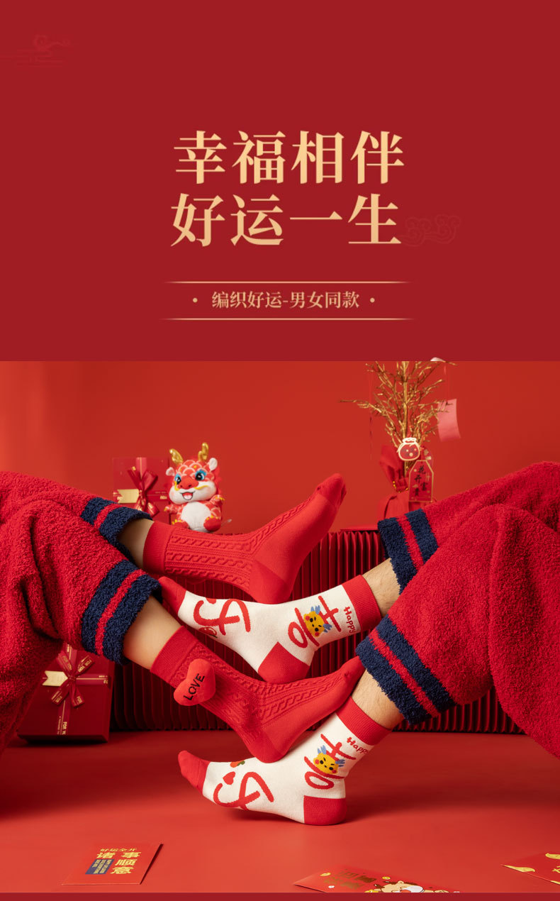 本命年红袜子【结婚许愿神龙袜】中筒棉袜 男女同款 公仔款
