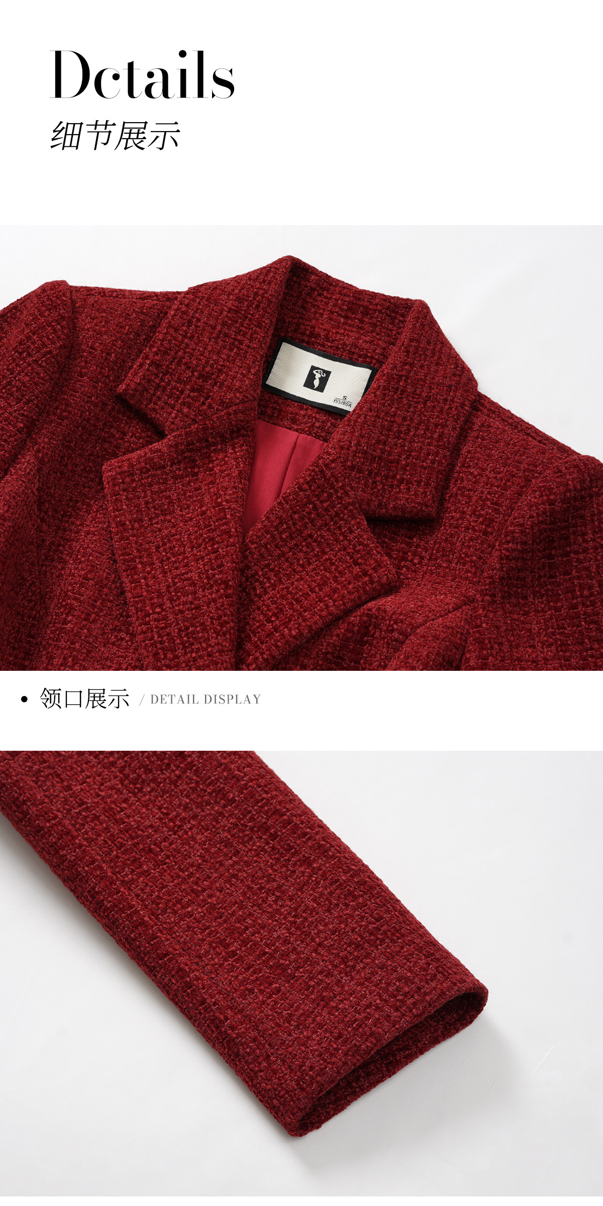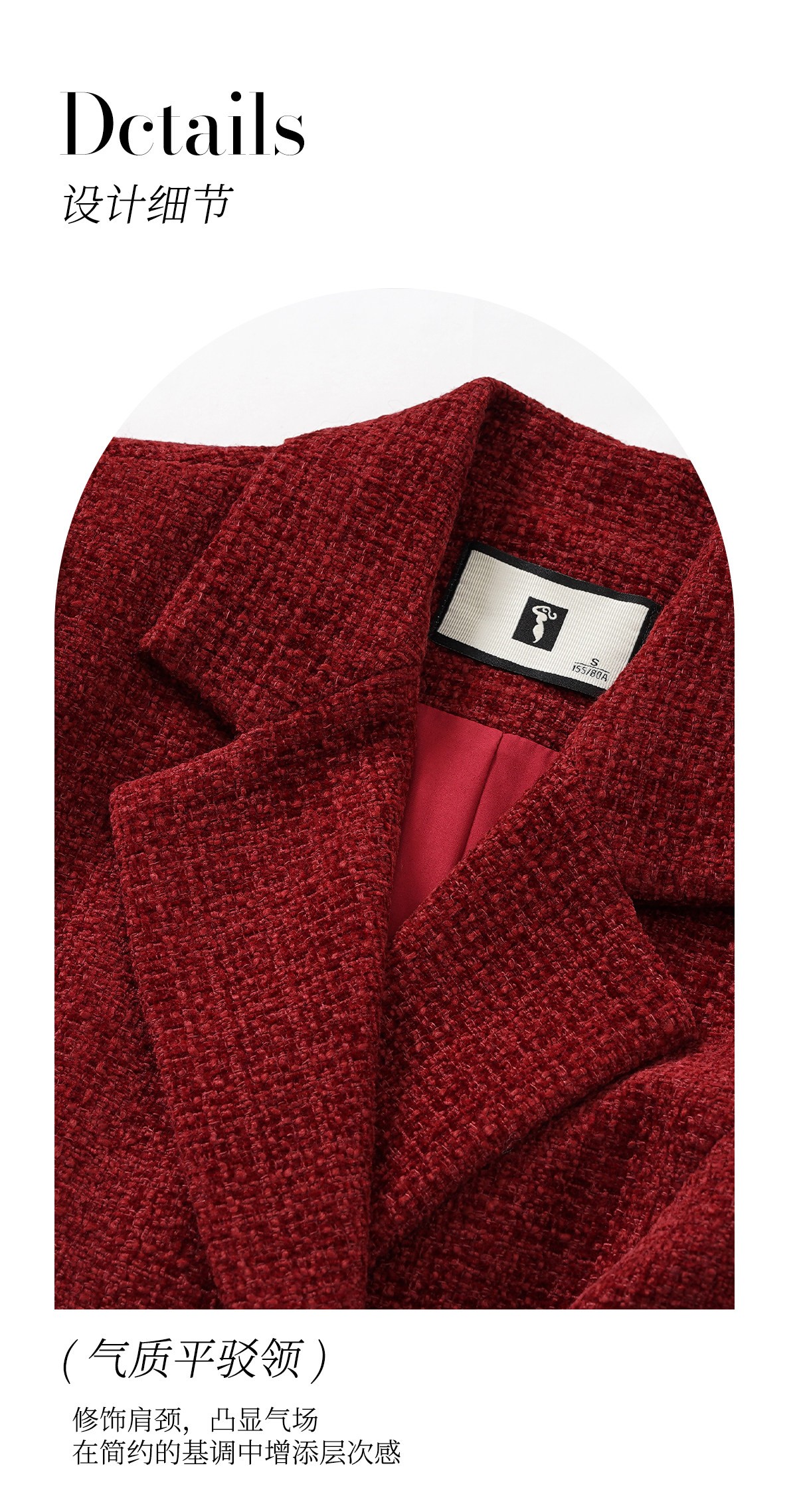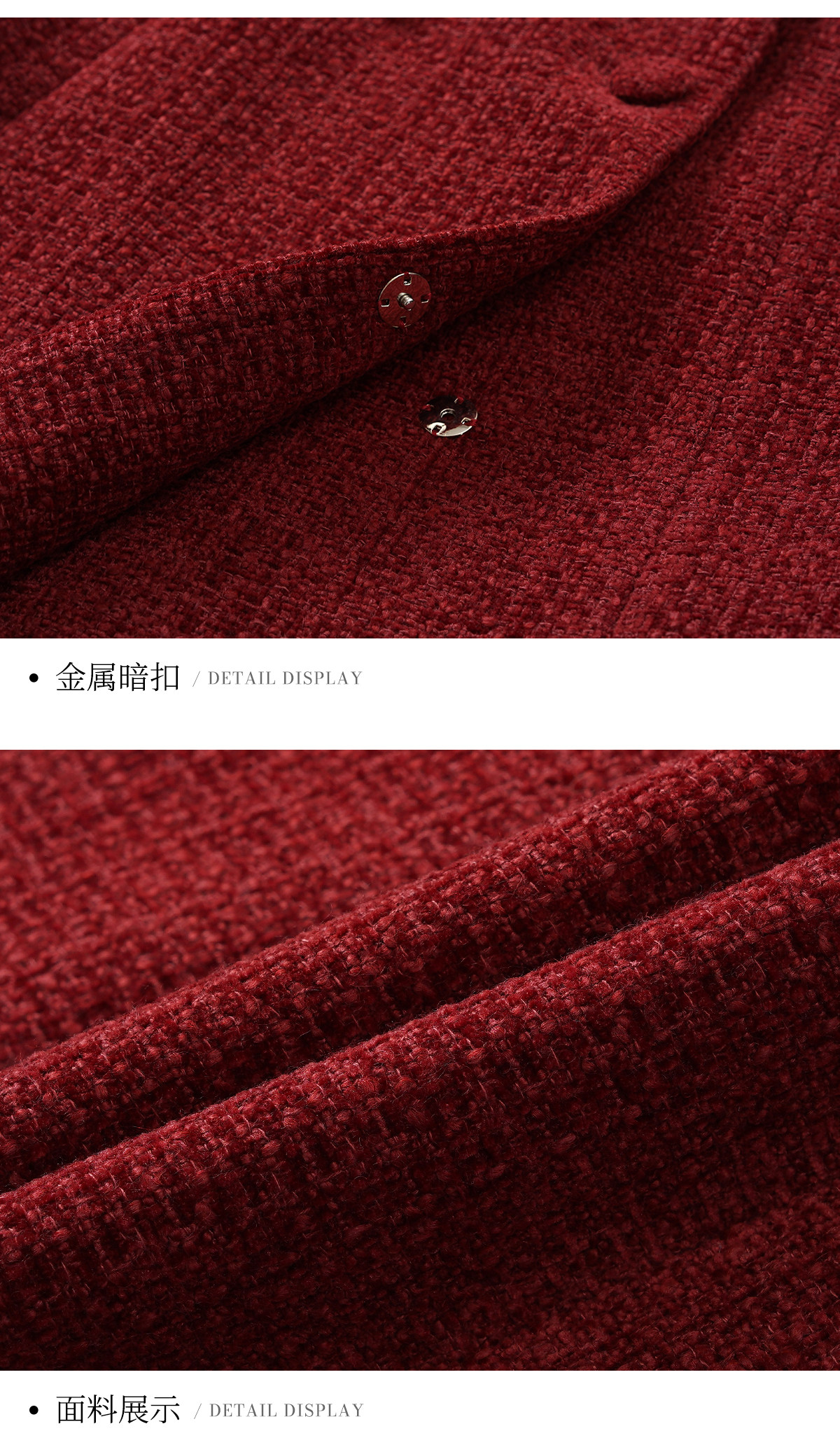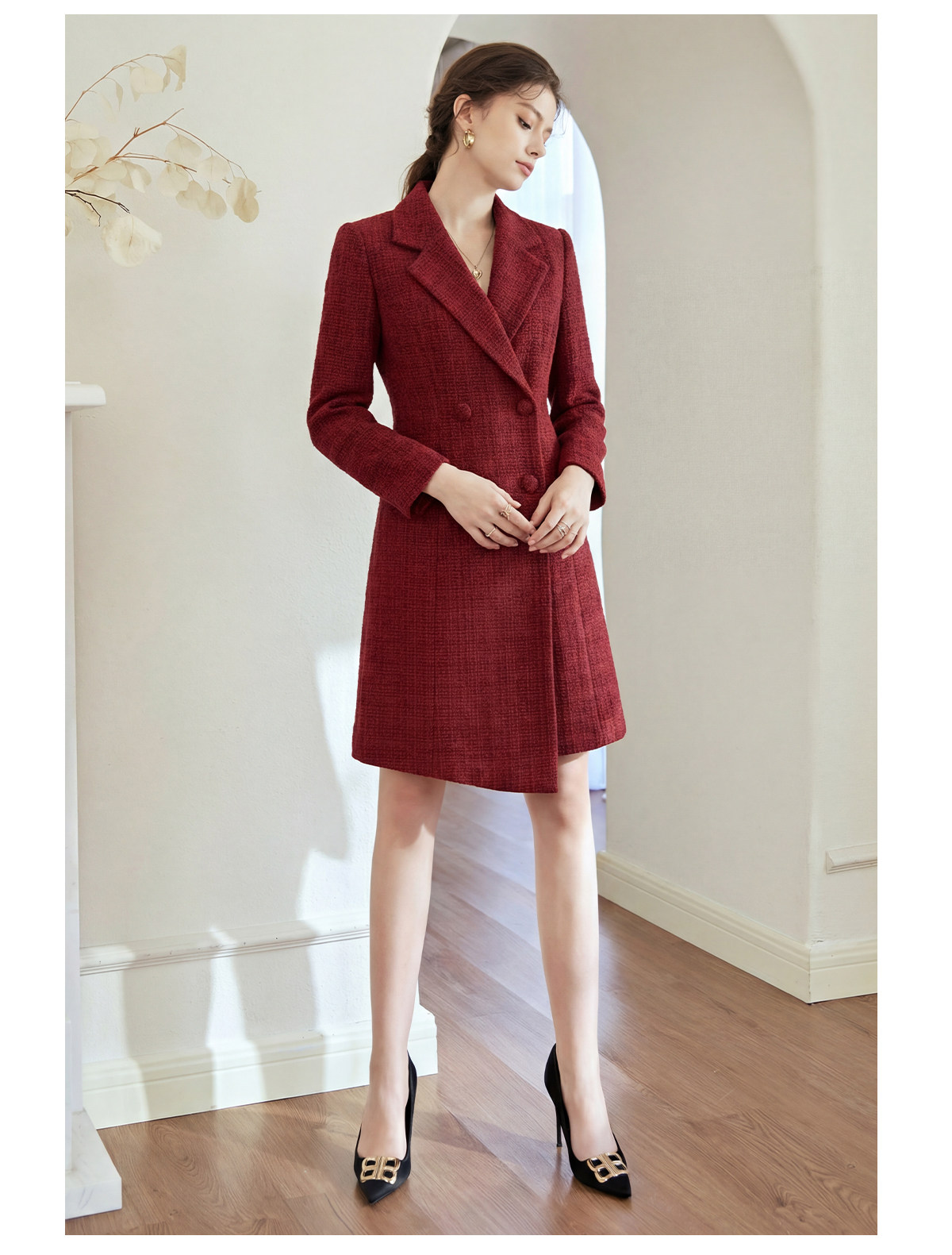 IWY/酒红色高级感羊毛西装领连衣裙女双排扣收腰显瘦宴会礼服裙WQ090-