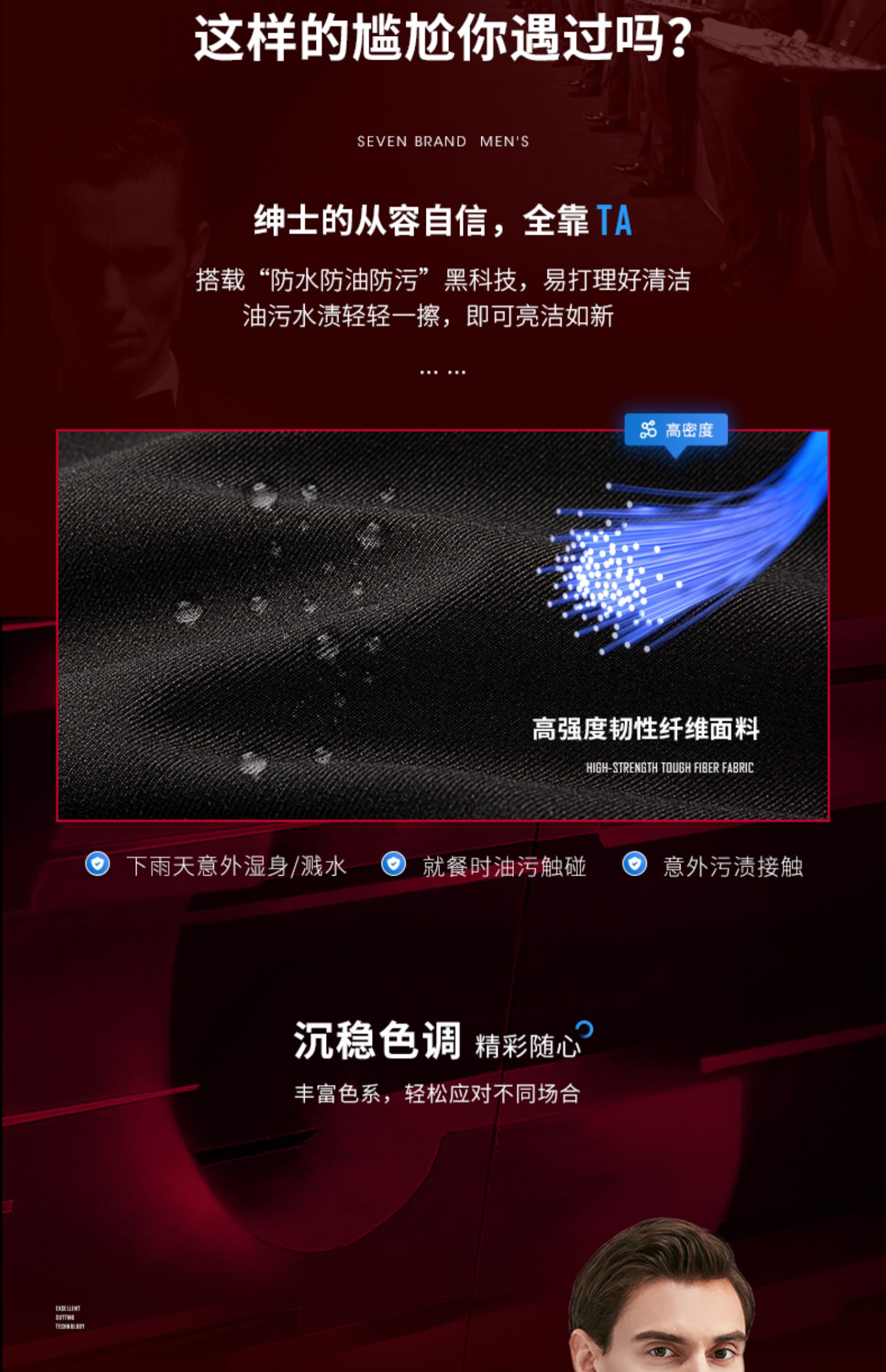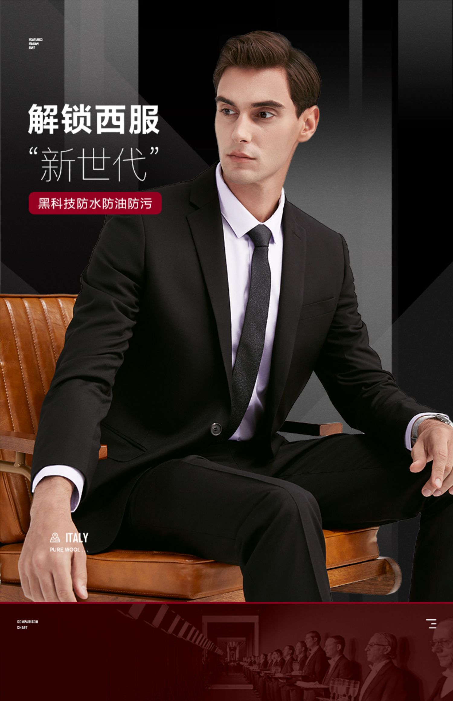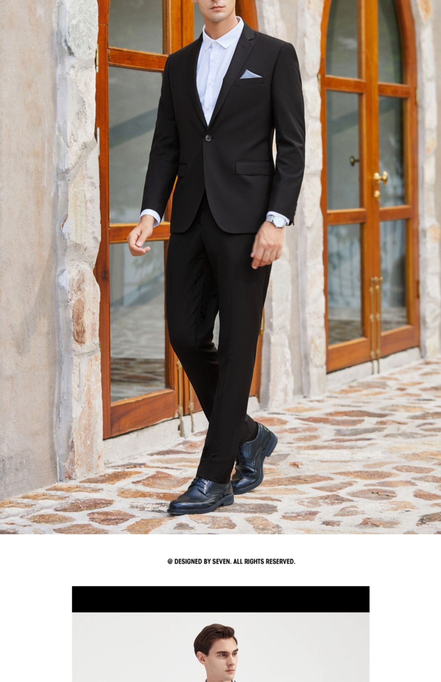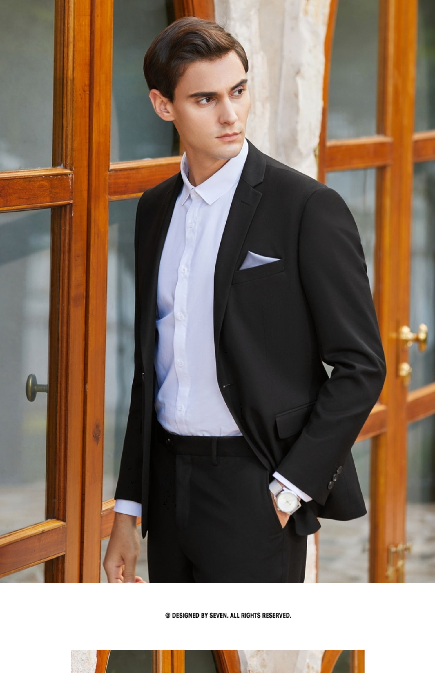 【三防】柒牌男士西服套装混纺平驳领婚礼商务休闲修身正装两件套 121C70460