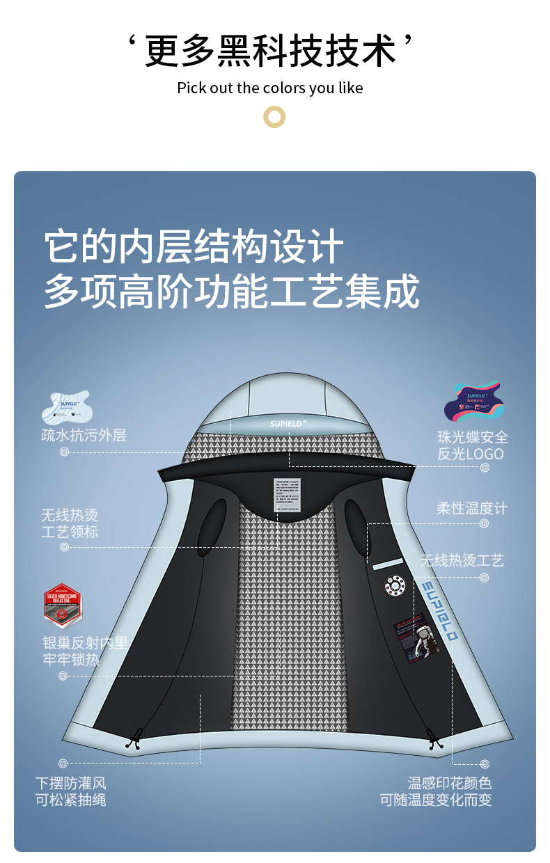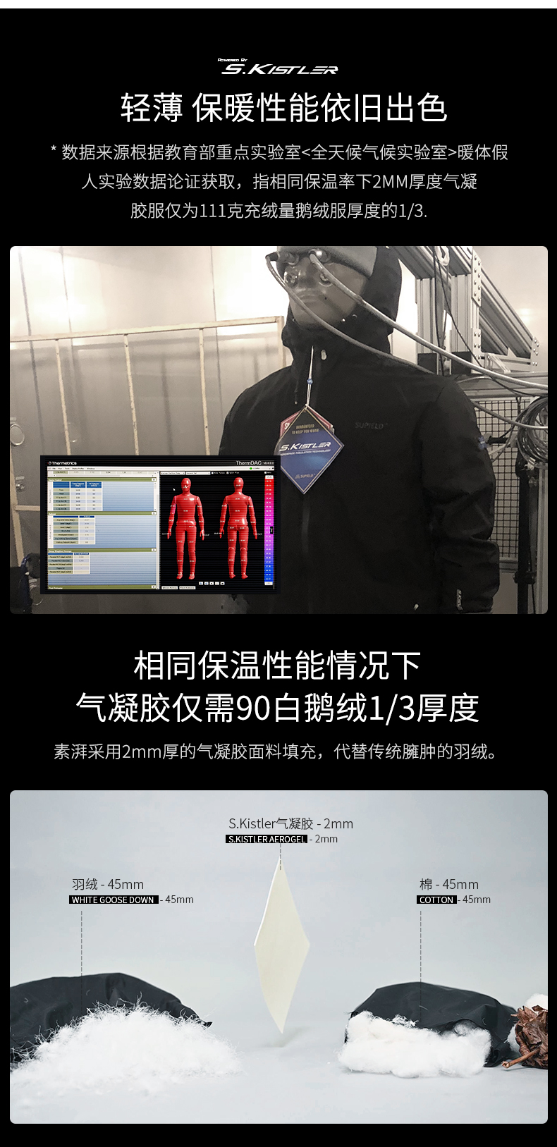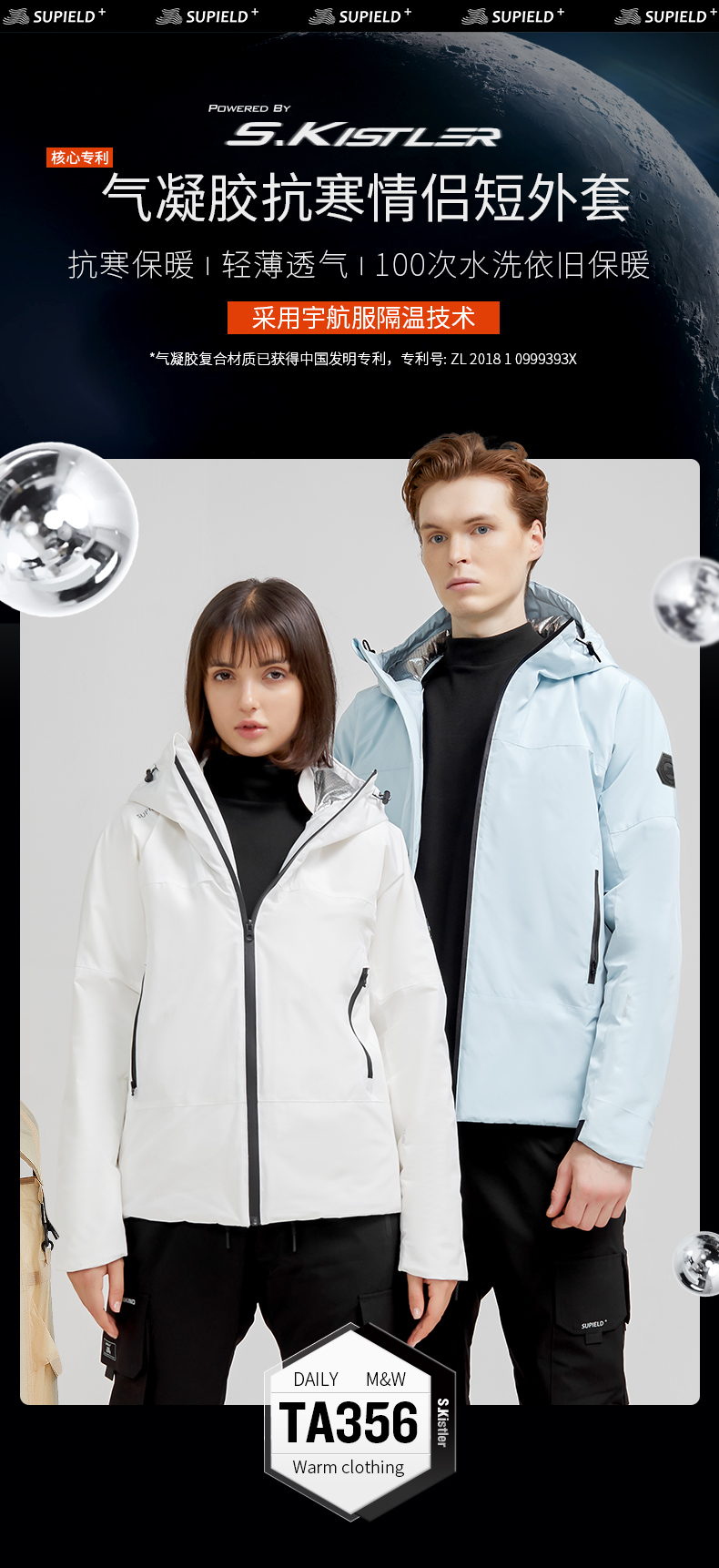 Supield素湃气凝胶抗寒服男户外保暖防寒东北滑雪外套女冬