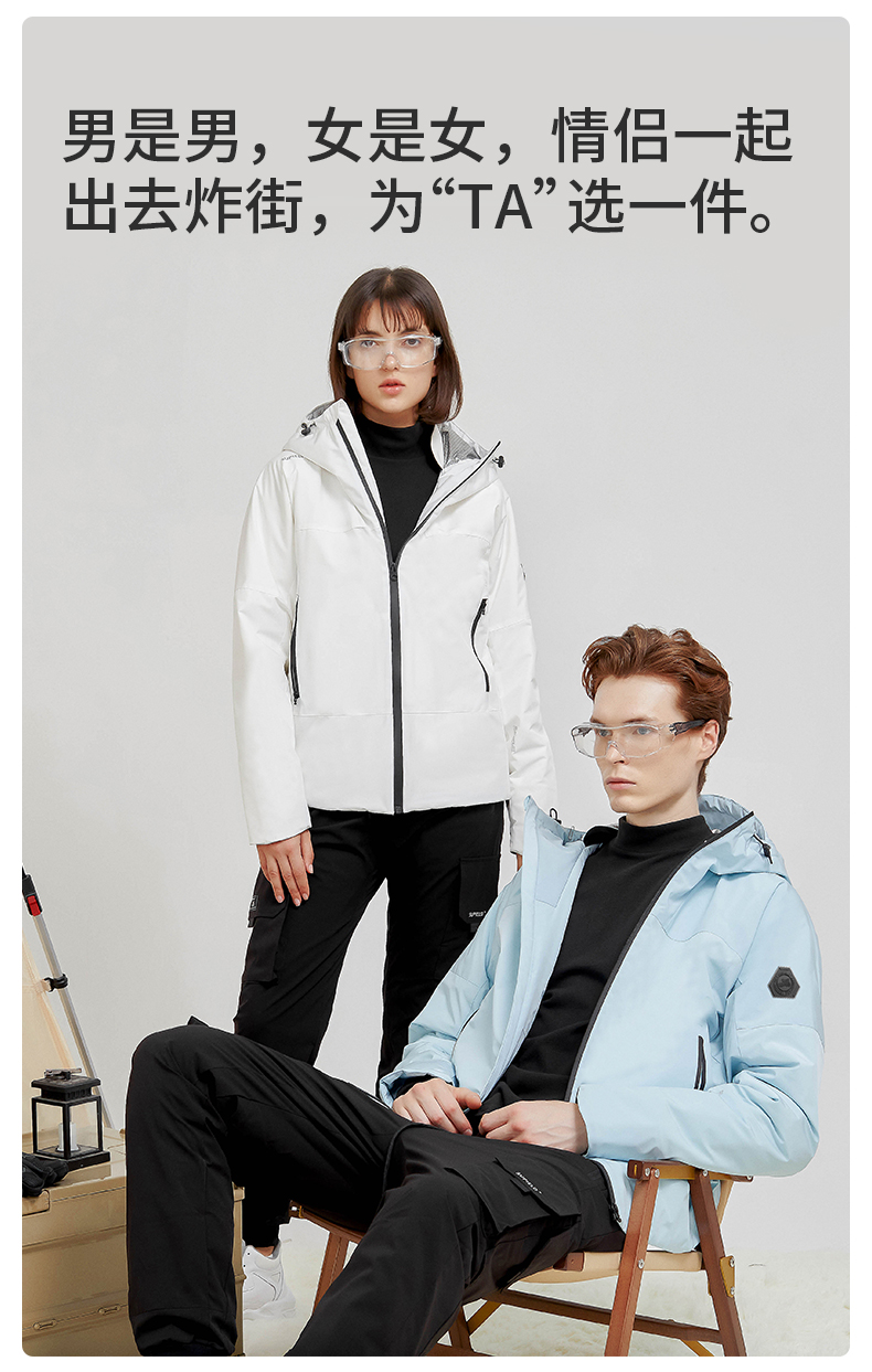 Supield素湃黑科技蓝奇热宇航气凝胶保暖抗寒棉服连帽情侣棉衣