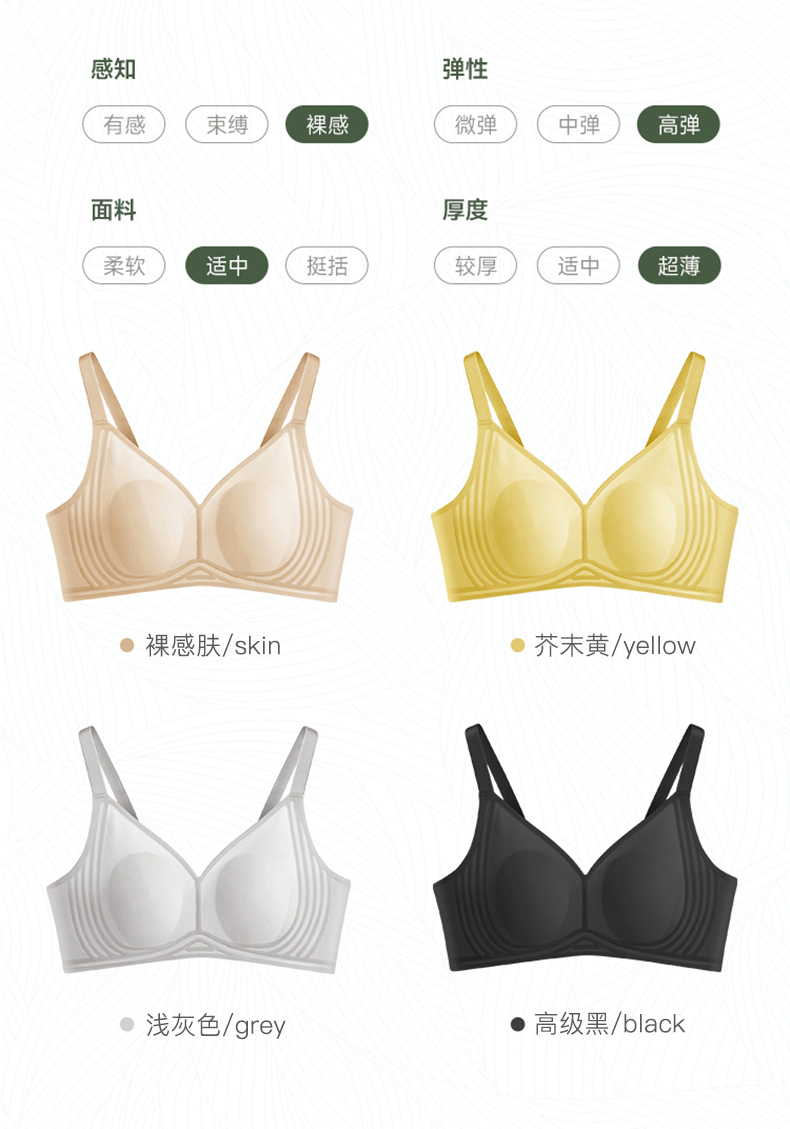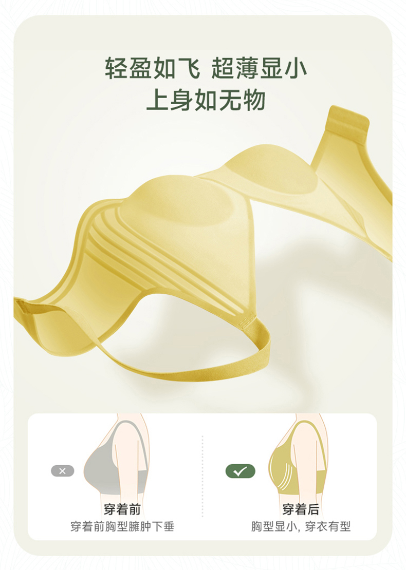 「冰丝果冻内衣」PSQUEEN 莱卡纤维果冻内衣 兔耳朵罩杯 塑形聚拢 轻盈柔软 舒适无痕 凉爽透气 薄至0.1cm 仿如无穿