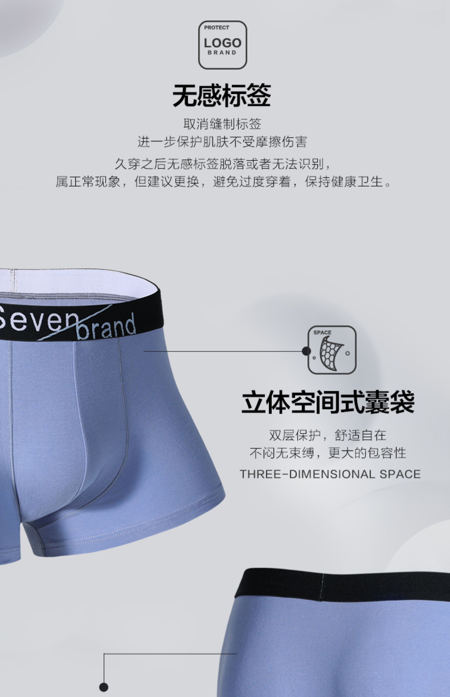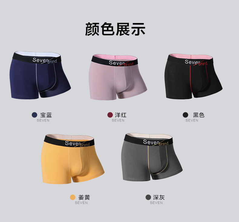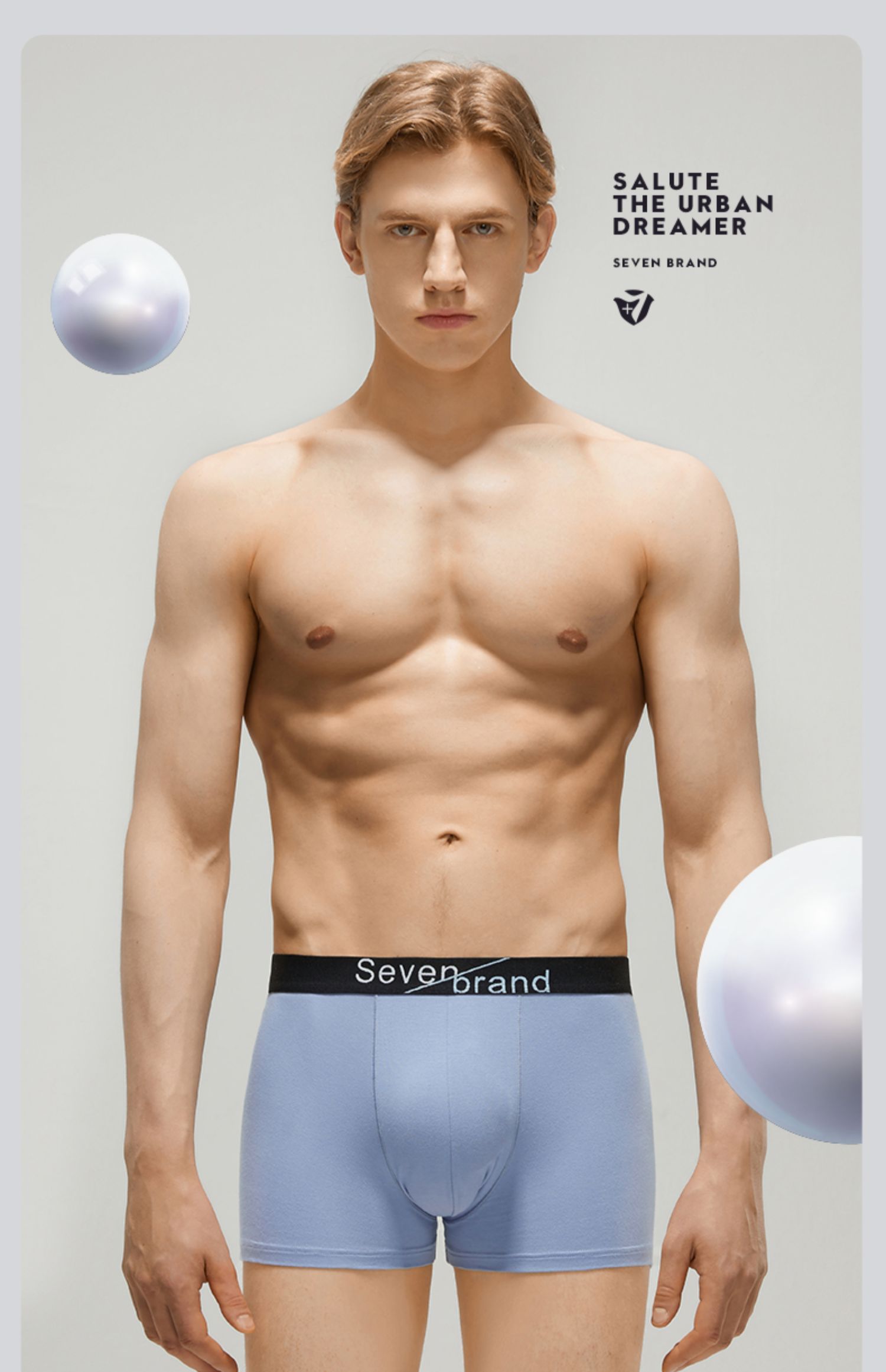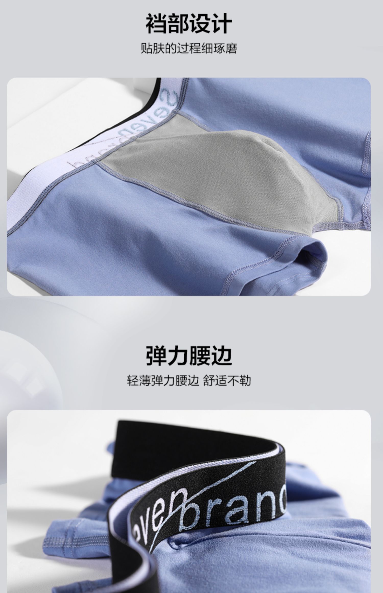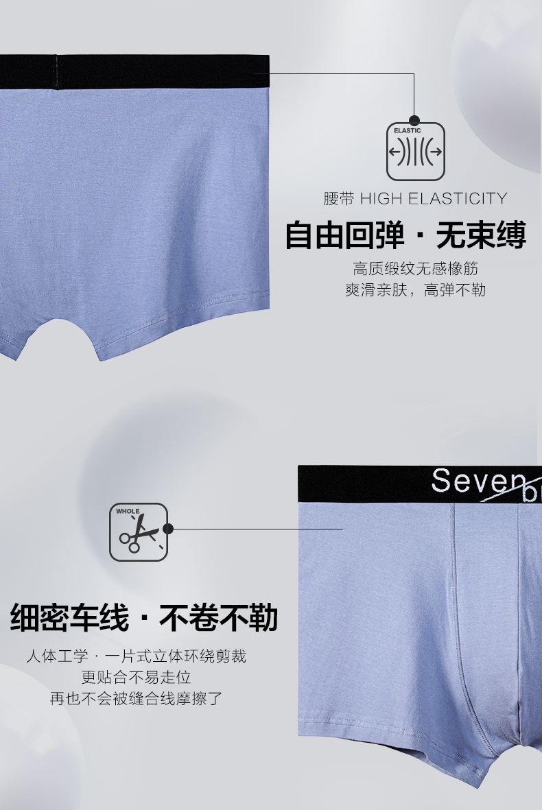 【礼盒3条装】柒牌男士内裤新款纯棉透气平角四角裤抗菌青年潮流短裤头 119F70150
