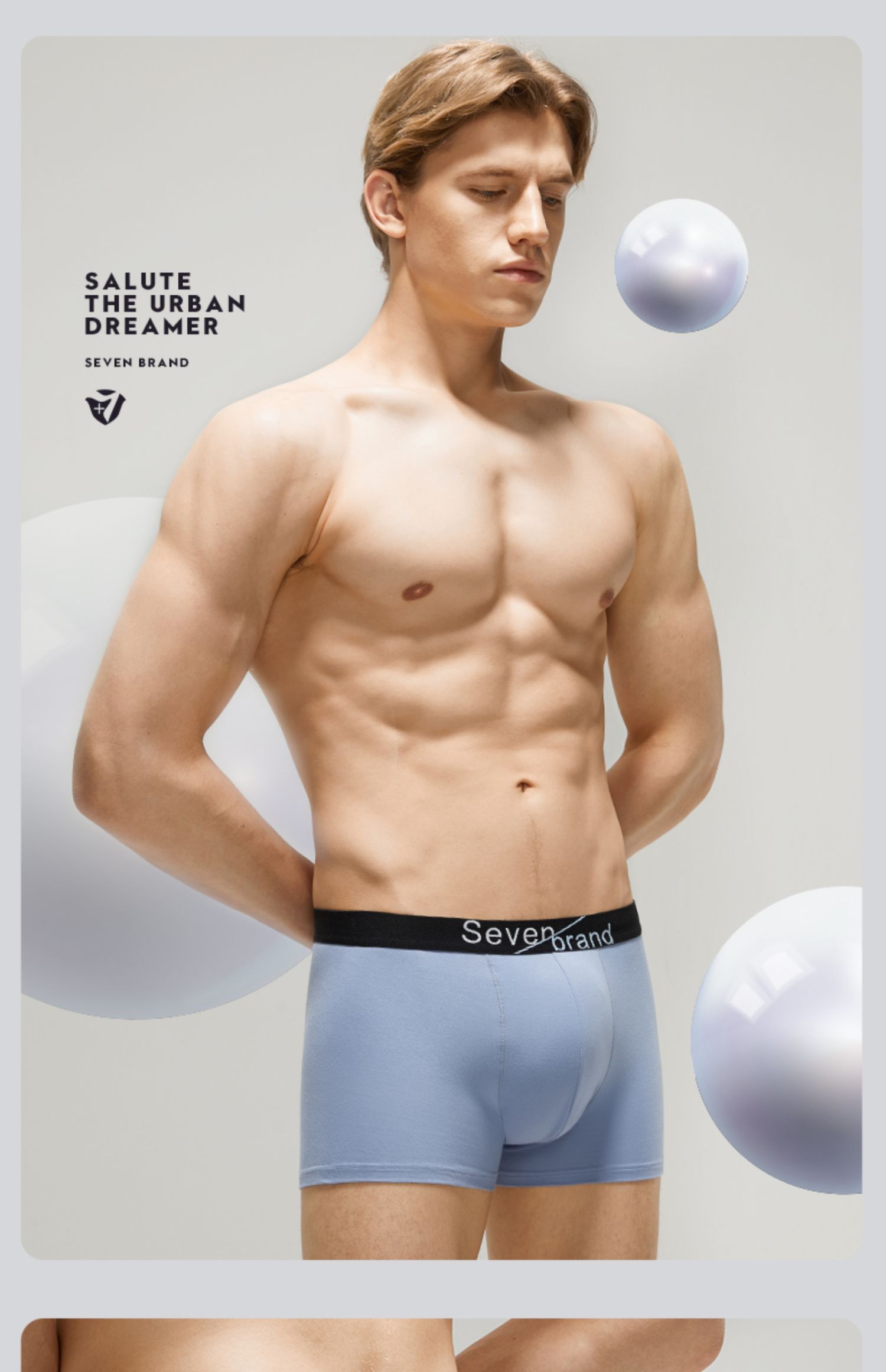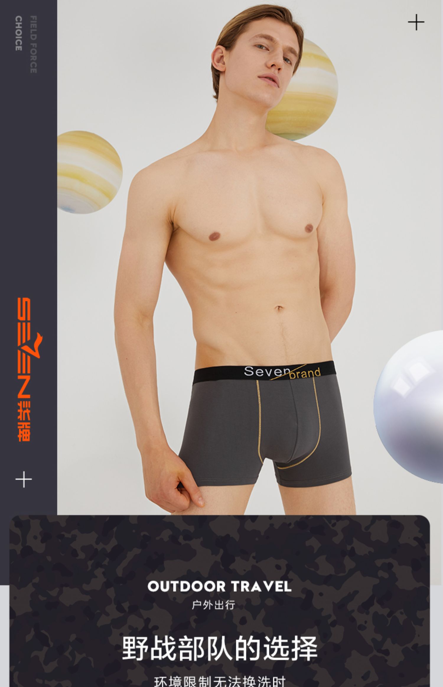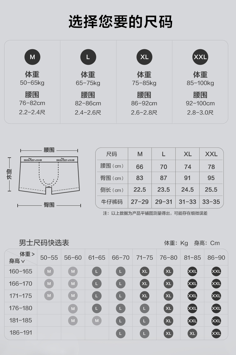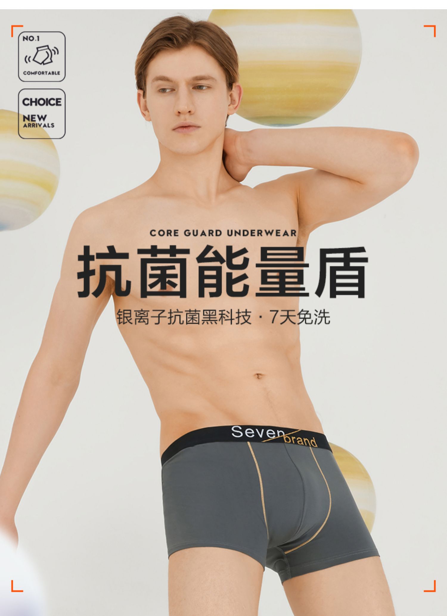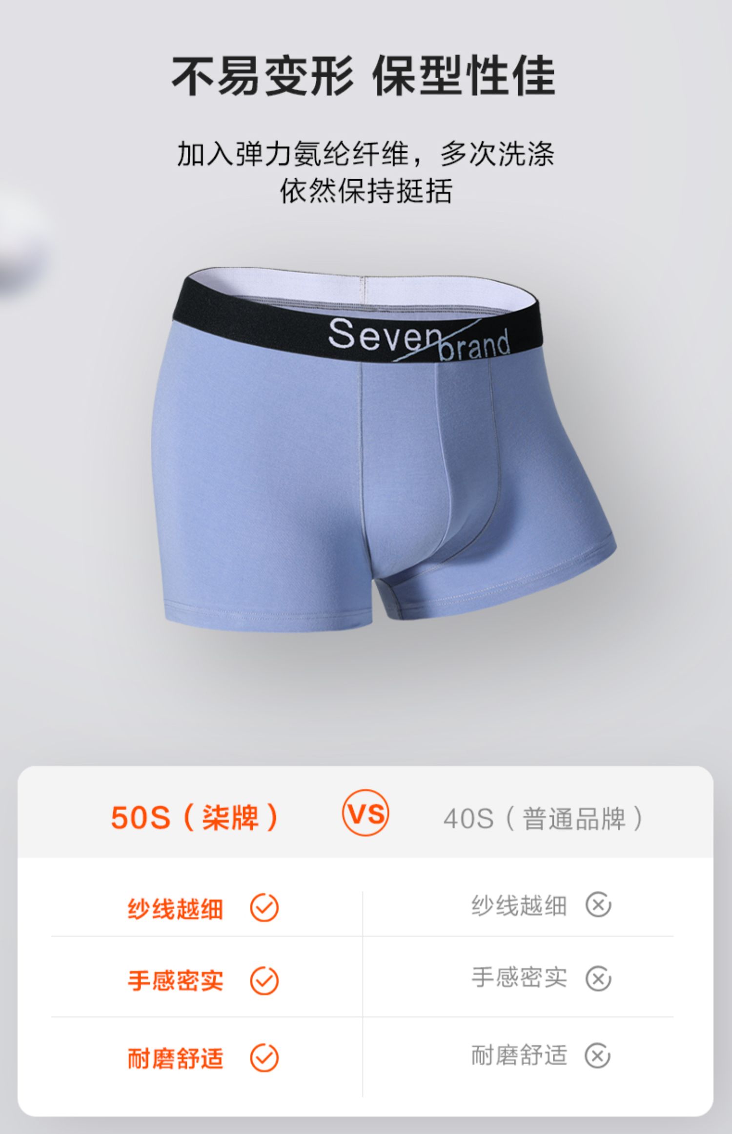 【礼盒3条装】柒牌男士内裤新款纯棉透气平角四角裤抗菌青年潮流短裤头 119F70150