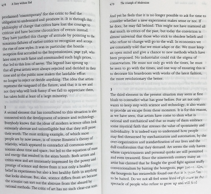“任何寻找从[原文如此]洞穴壁画到 20 世纪艺术史的可读性概览的人都应该购买制作精美的全新袖珍版 《艺术的故事》,它仍然是艺术批评的伟大经典之一。” –独立
