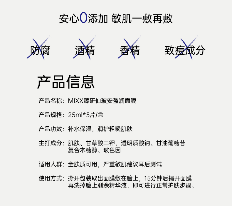 【U先试用】MIXX觅研仙玻安盈润面膜2片 玻色因+抗老多肽因子保湿抗老维稳舒缓泛红