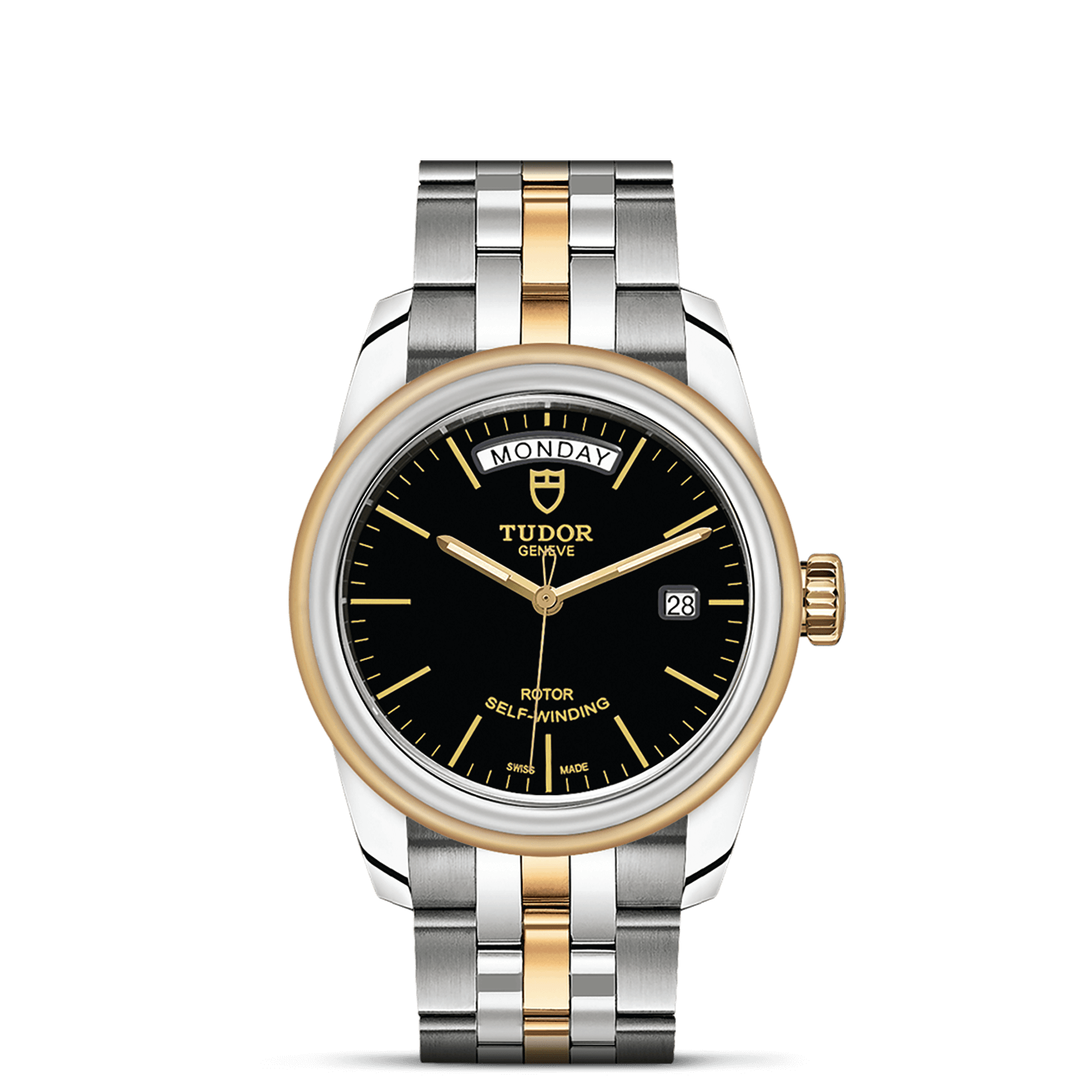 旋入式上链錶冠,饰以帝舵表标志;精钢覆有0.1毫米18K黄金薄层