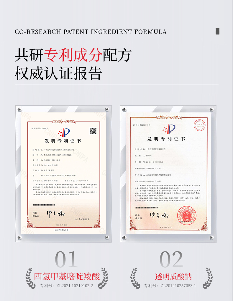 专利成分:透明质酸钠——专利号:ZL201410257053.1