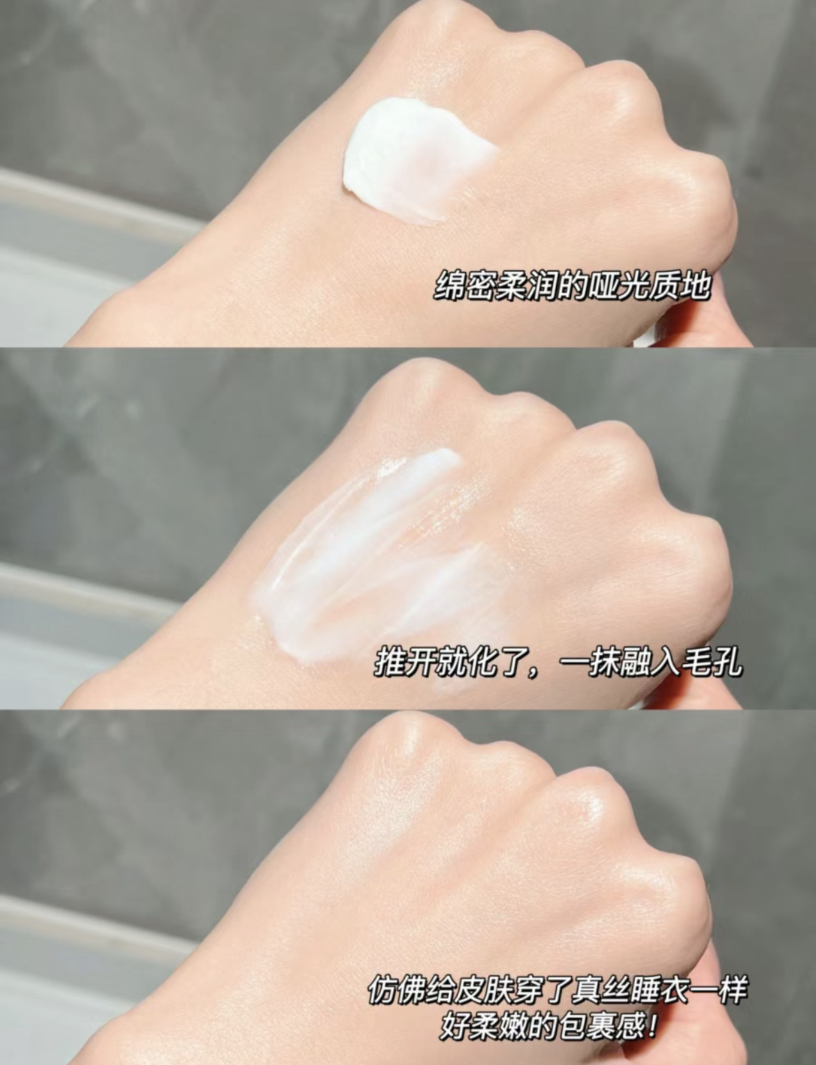 上脸丝滑好抹匀,上脸后快速与皮肤融合成膜