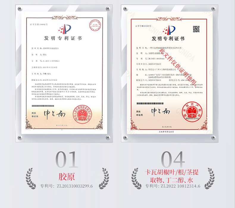 专利成分:胶原——专利号:ZL201310033299.6