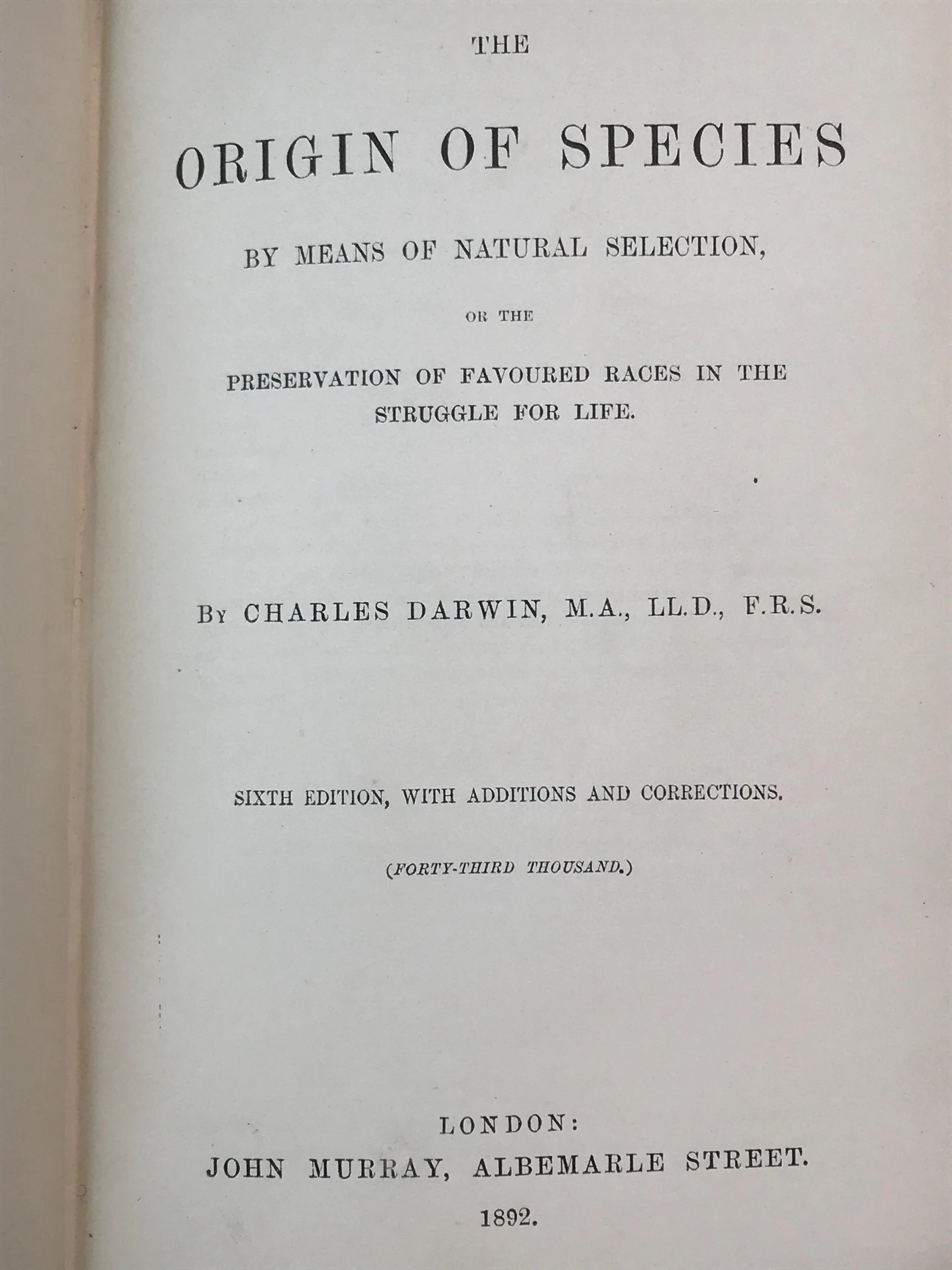 1892年伦敦版 查尔斯・达尔文《物种起源》 漆布精装