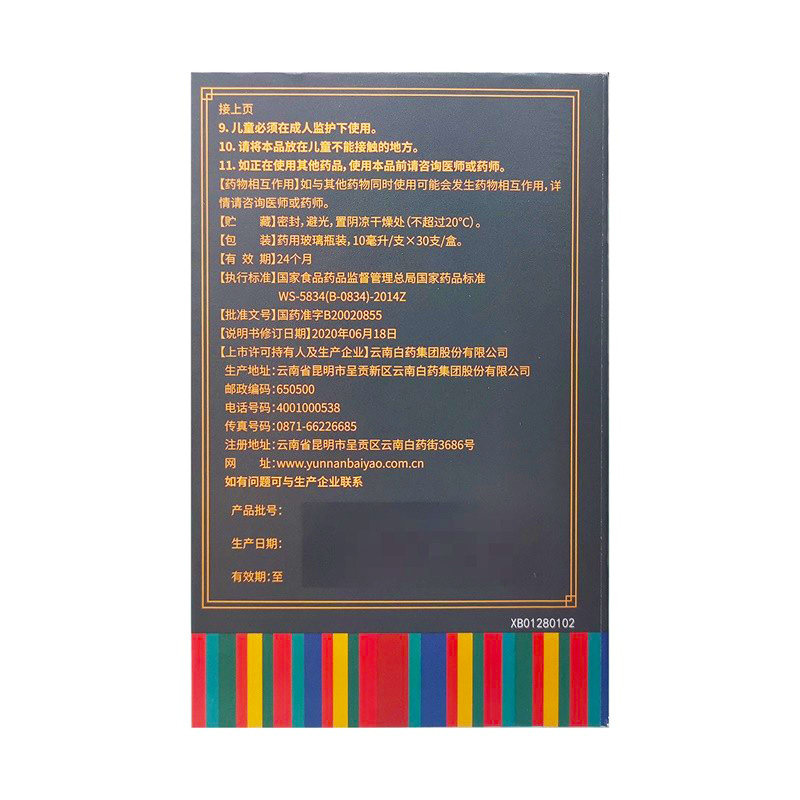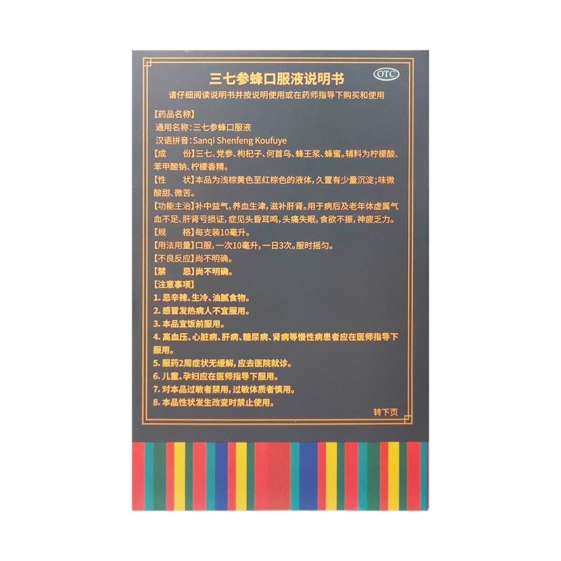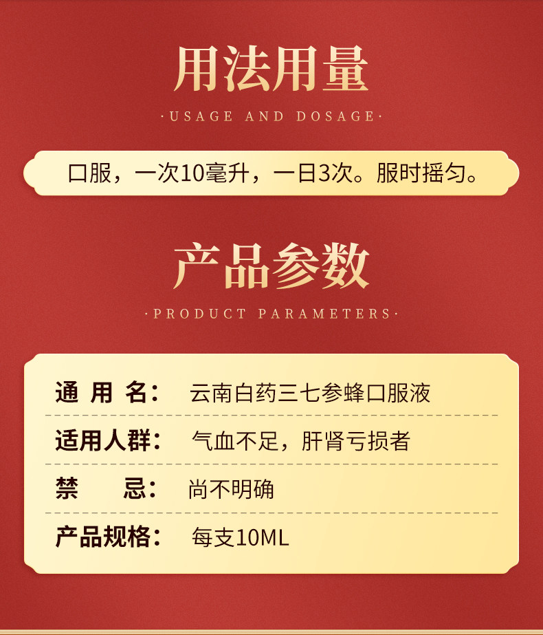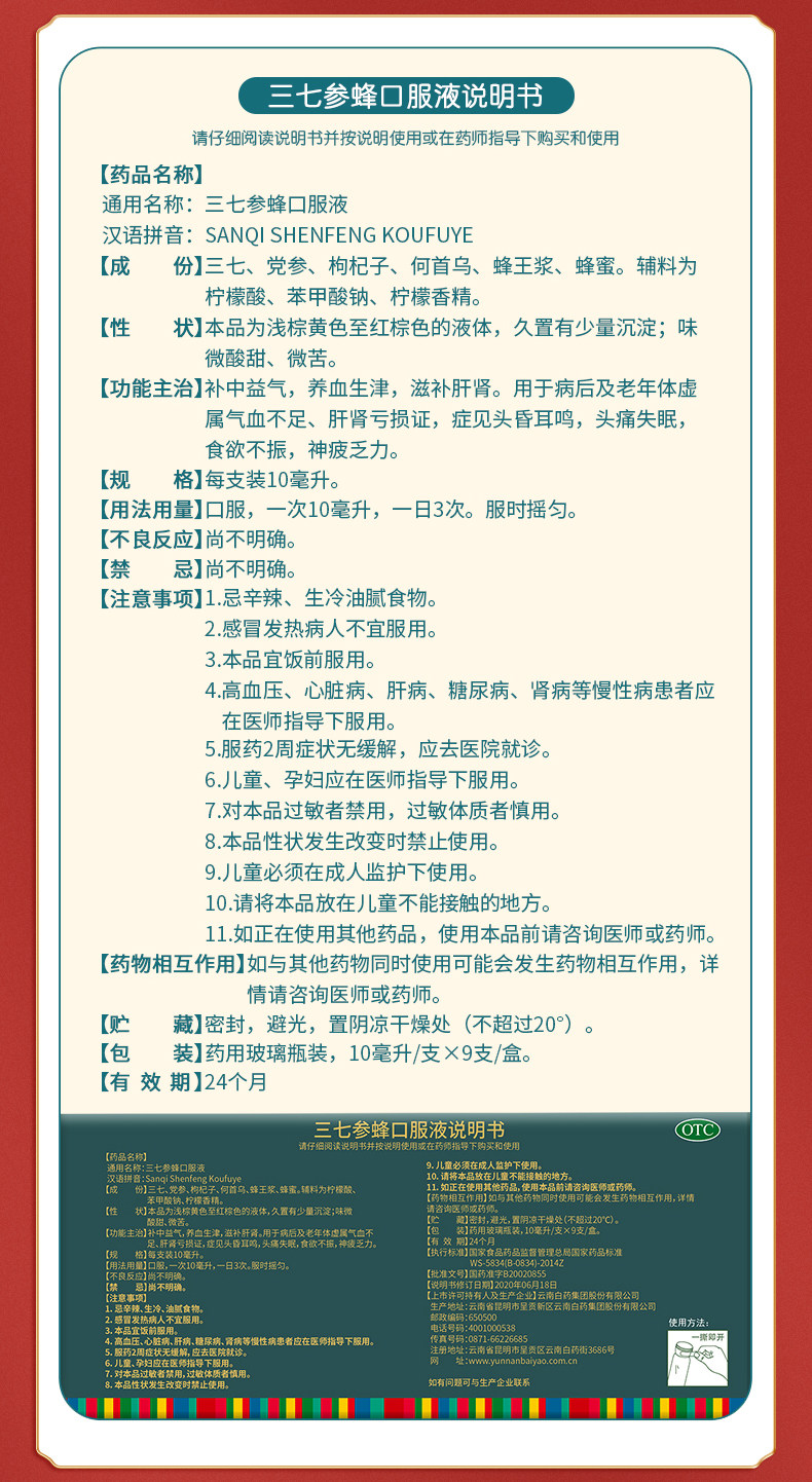 【官方正品】云南白药云丰三七参蜂口服液10ml*30支补中益气养血生津滋补肝肾