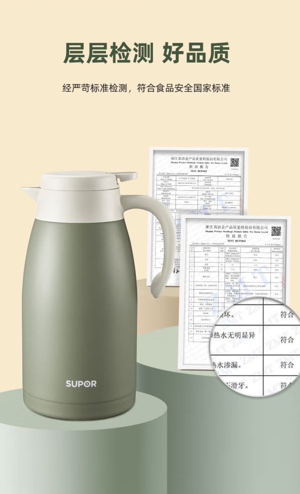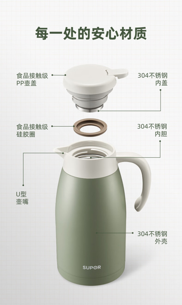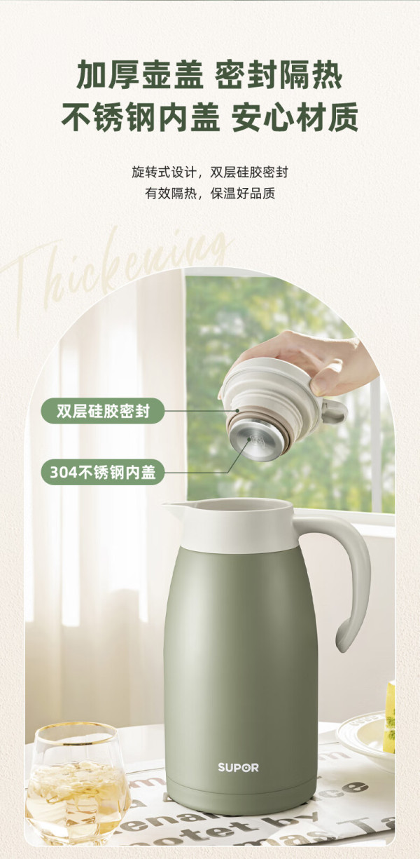 苏泊尔真空保温壶2.0L.罗勒绿 KC20KH52