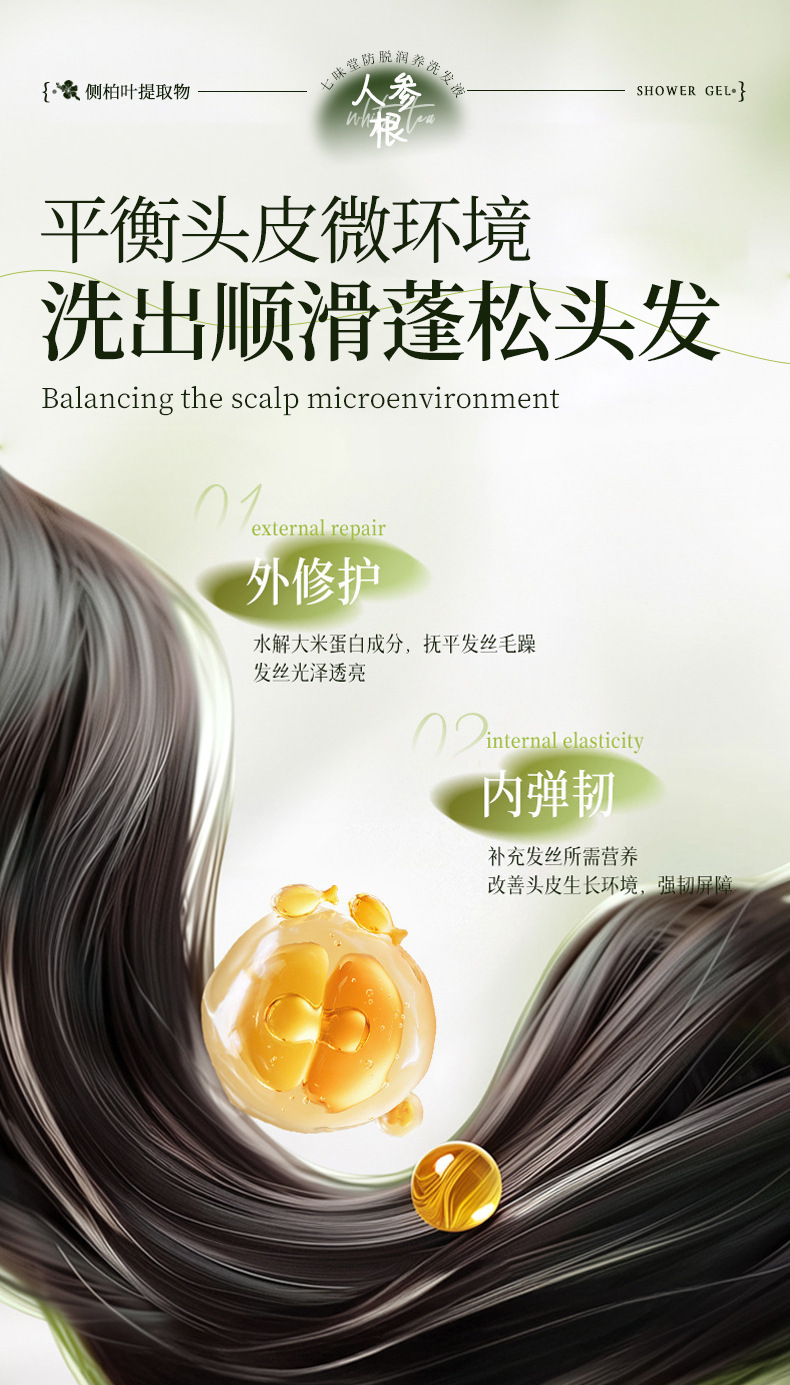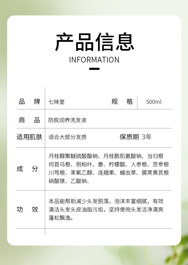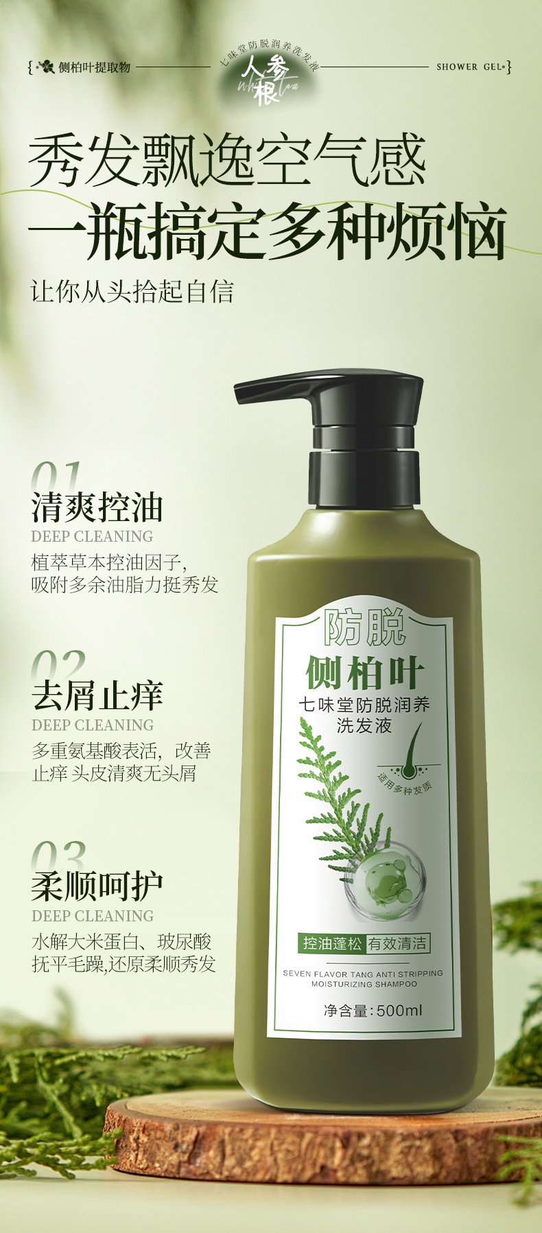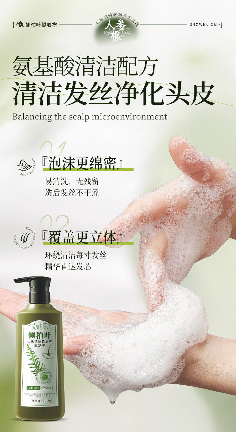 【甄选植物精萃❗️精华提纯古法养发】500ml大容量家庭装七味堂防脱洗发水侧柏叶生姜草本植萃。ja