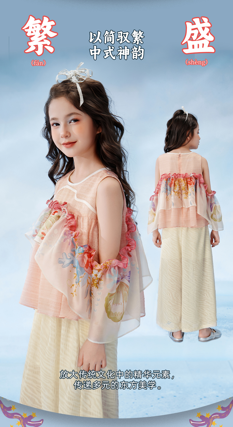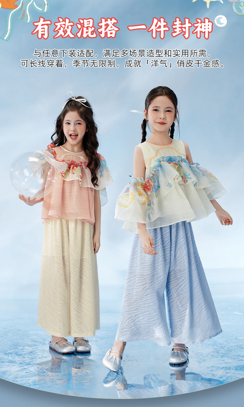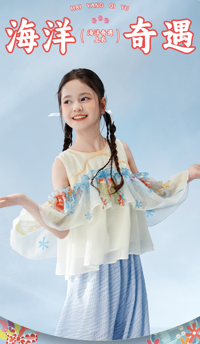 年衣童装儿童无袖上衣女童2025年夏季新款新中式海洋奇遇上衣