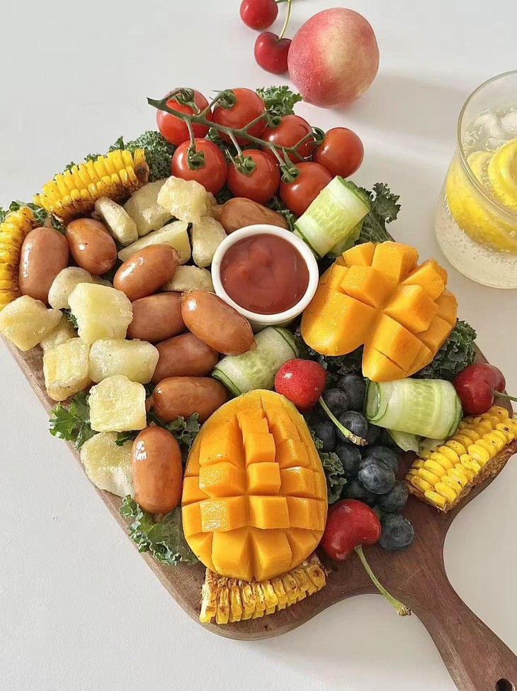 调到下午茶频道!😀 来一份仪式感下午茶,让宅家的日常更快乐! 烤香肠烤土豆烤玉米,搭配水果和快乐水 是满满的幸福感!🥰 香肠和土豆,蘸着番茄酱吃,真的太过瘾啦! 外酥内糯!一口香肠,一口土豆,双倍快乐,好吃到停不下来!😋
