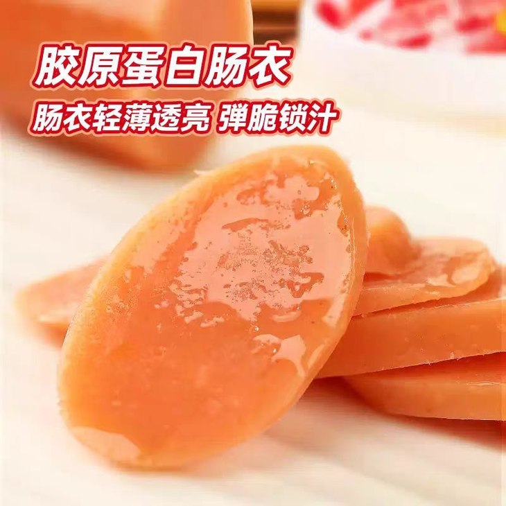 从选材到加工再到包装给你安全感! 只用新鲜优质肉源,每块肉都经过严格筛选🔍 真空包装锁味锁鲜,拆开还是Q弹口感👍 这款QQ肠跟那些淀粉多到爆的根本不是一个次元! 只添加少许淀粉优化口感 肉质紧实到能嚼出蹦迪感💃 不管是狼吞虎咽还是细嚼慢咽,都能让你欲罢不能❗