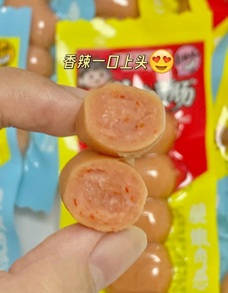 香肠的香,入口的鲜,咀嚼的爽😎 三者完美融合,鲜嫩满满 Q弹劲道的肉质搭配Q弹的肠衣 每一粒都让人吃得超过瘾 让人吃了一包还想再吃一包,根本停不下来😍