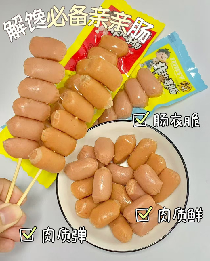 再说说里面的肉馅,那可是肉质鲜嫩、粒粒饱满的代表🌟 每一粒亲亲肠都塞满了实实在在的肉料 拿在手里都能感受到沉甸甸的扎实感 轻轻一咬,肉粒饱满Q弹 鲜香味瞬间在舌尖炸开💥 香而不腻,每一口都是对味蕾的极致犒劳,好解馋🥰