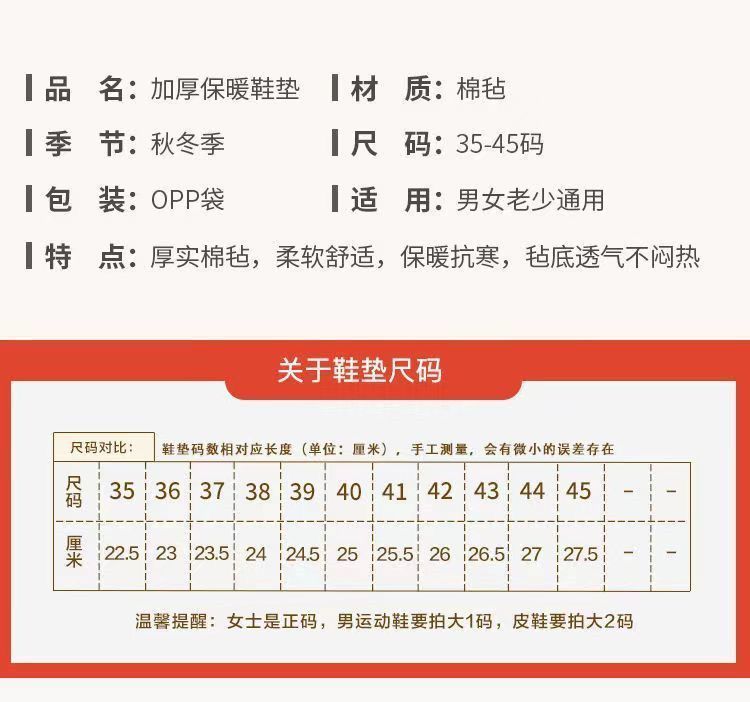 【软暖羊羔绒!保暖鞋垫】冬季加厚加绒鞋垫防寒毛毡保暖鞋垫防臭吸汗舒适透气棉鞋垫。ry