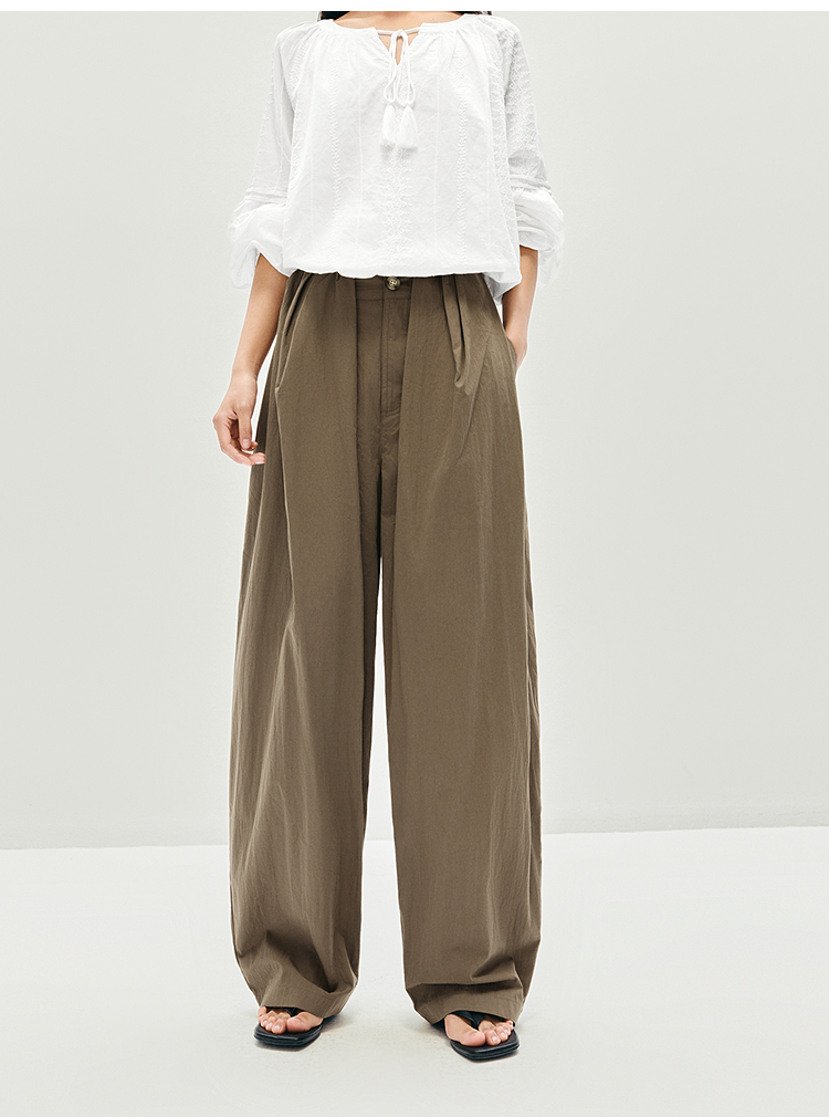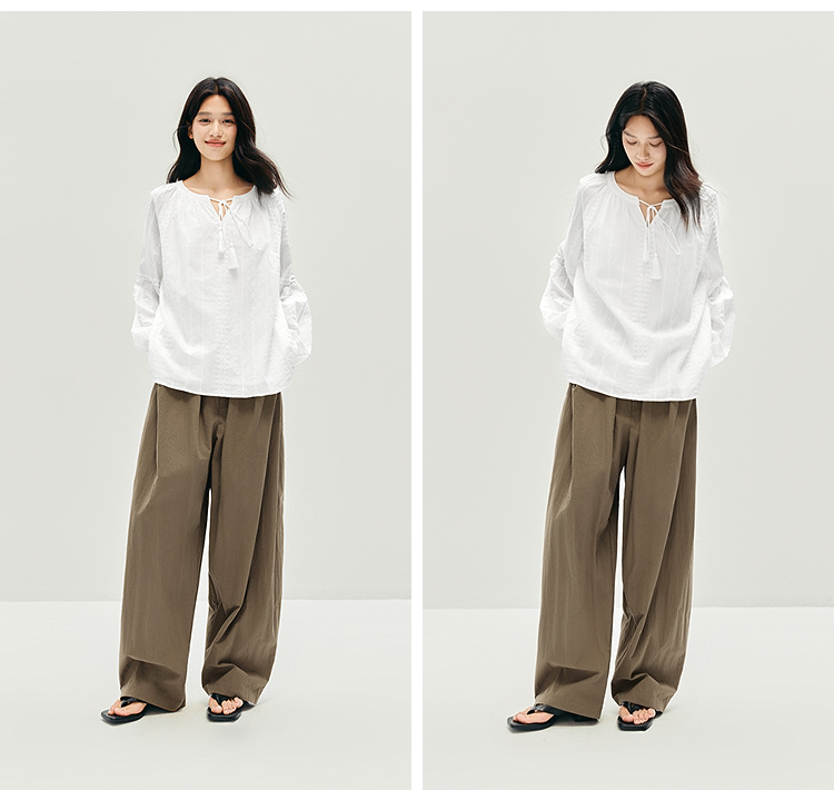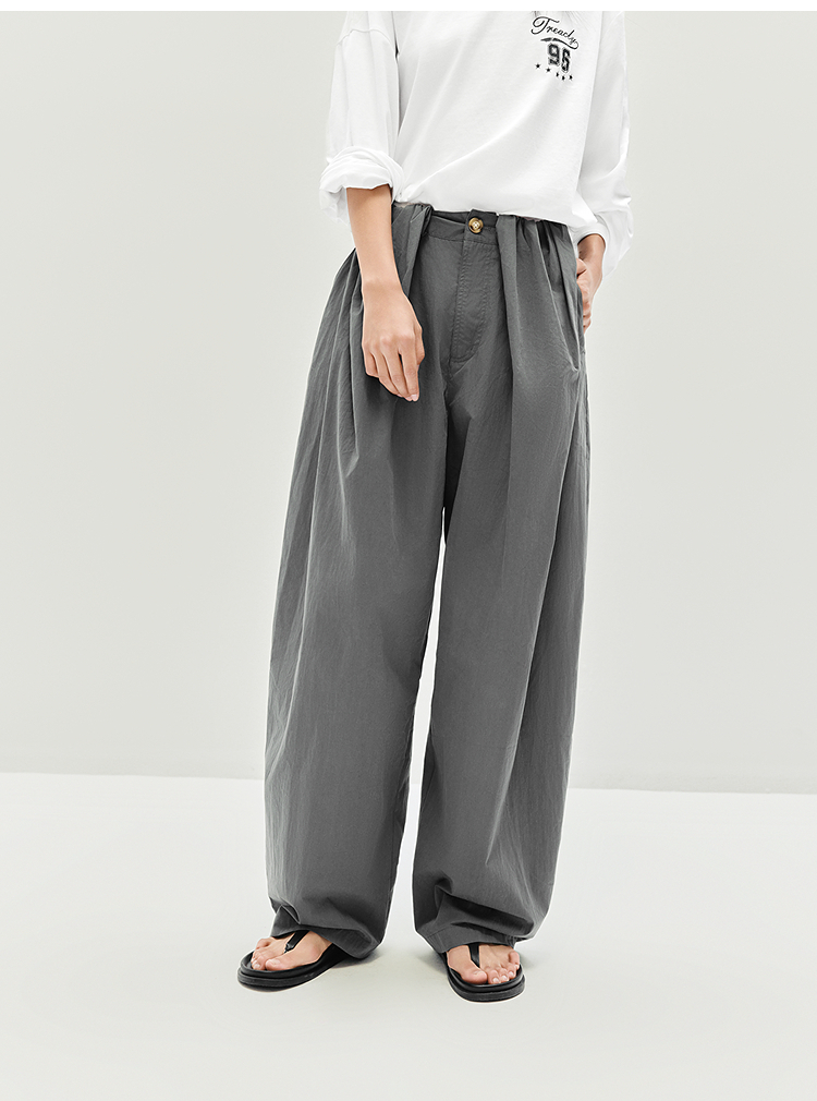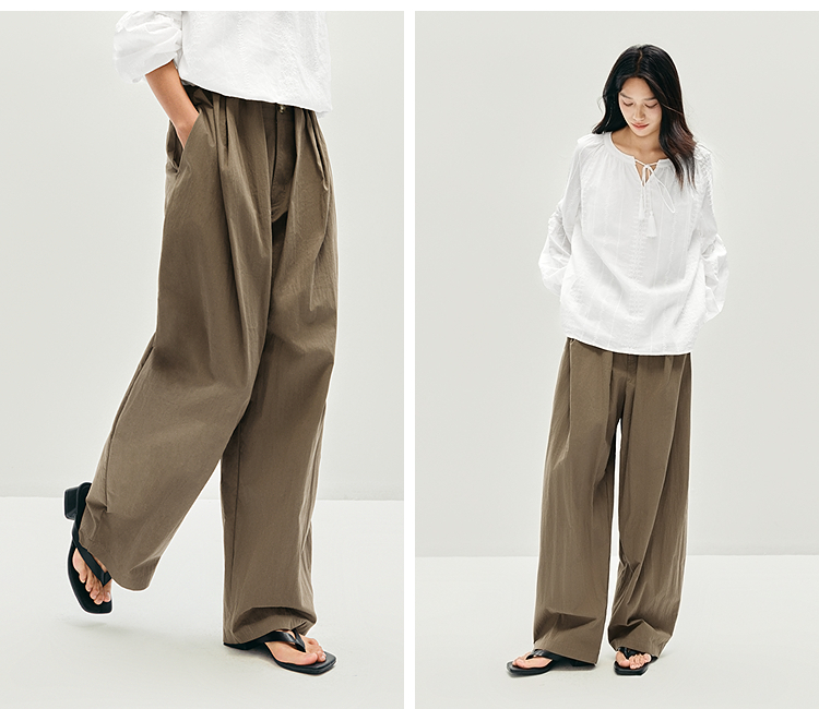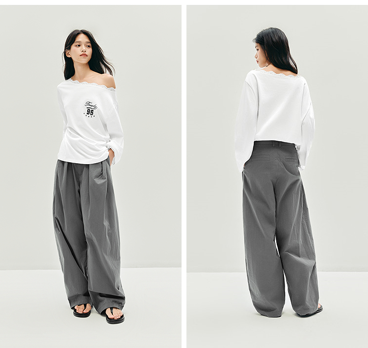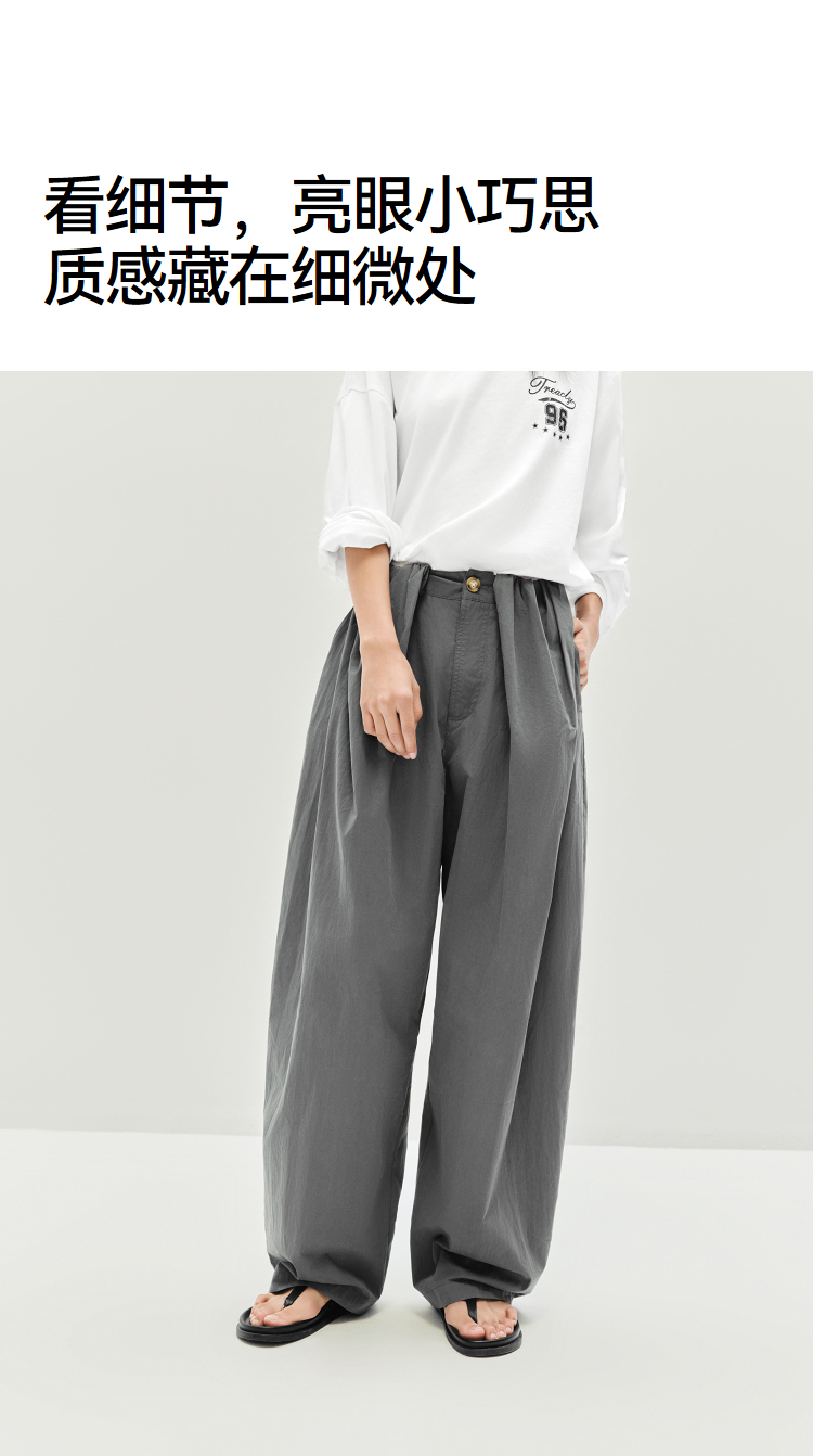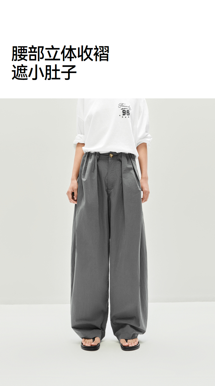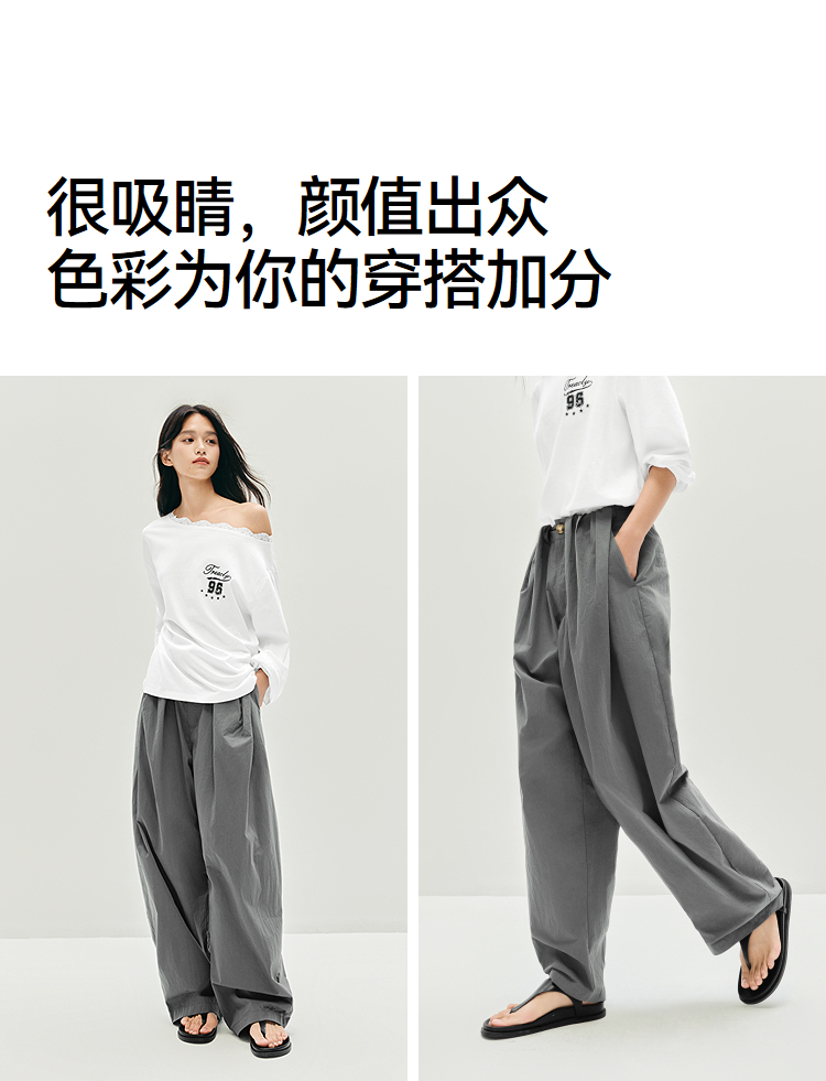 森马休闲裤女设计感显瘦慵懒2025秋季新款肌理宽松弧形长裤松弛感