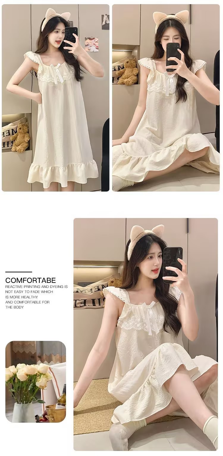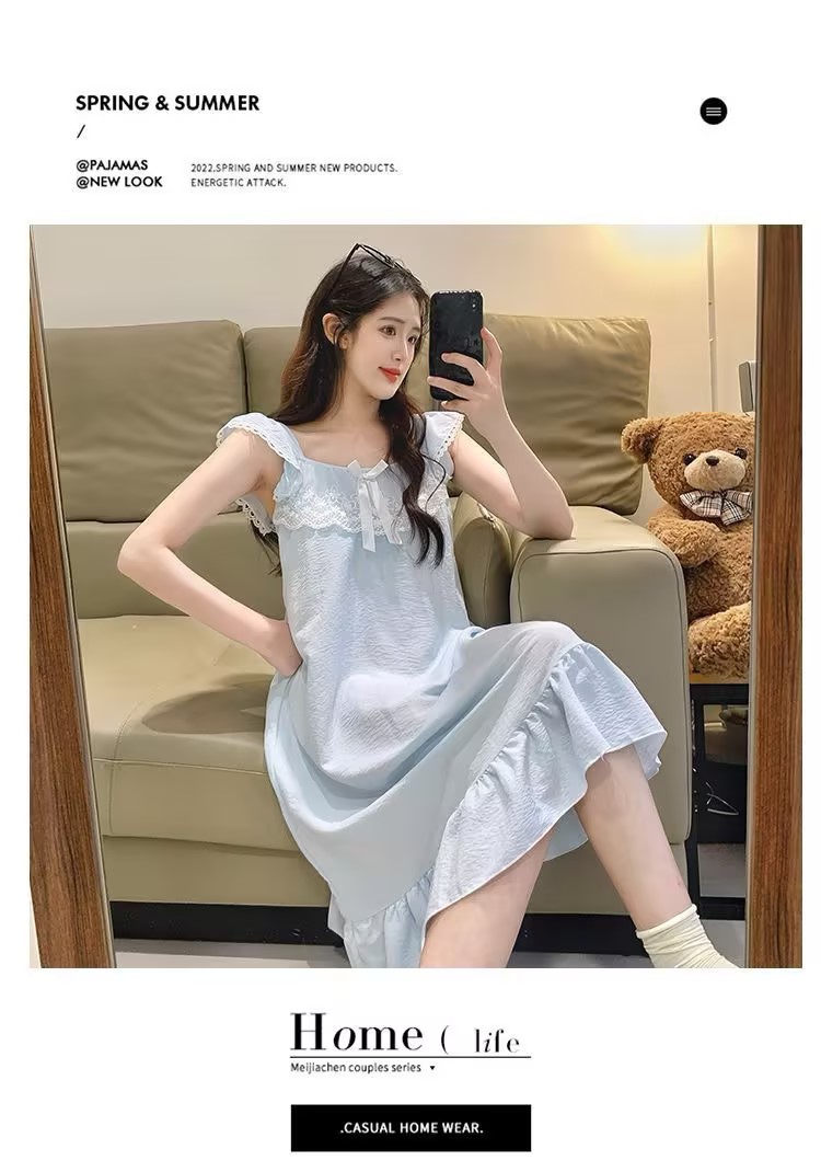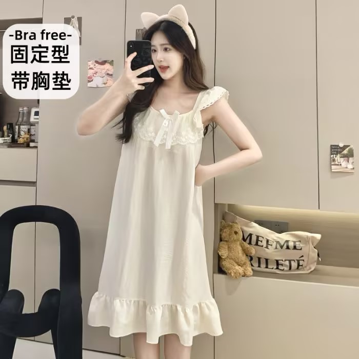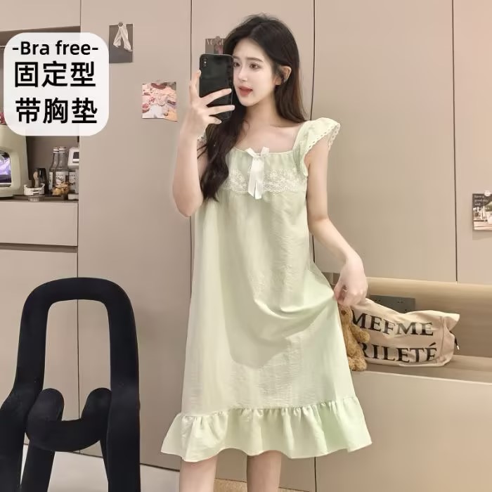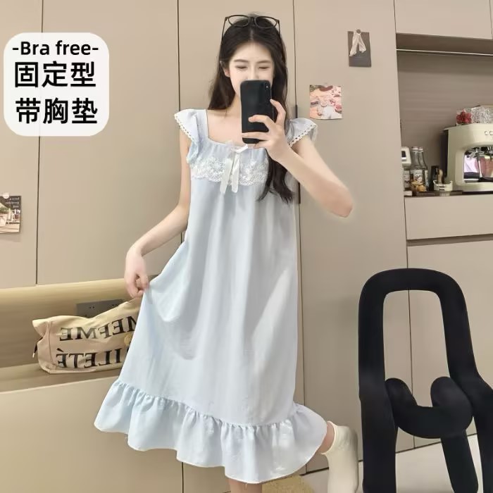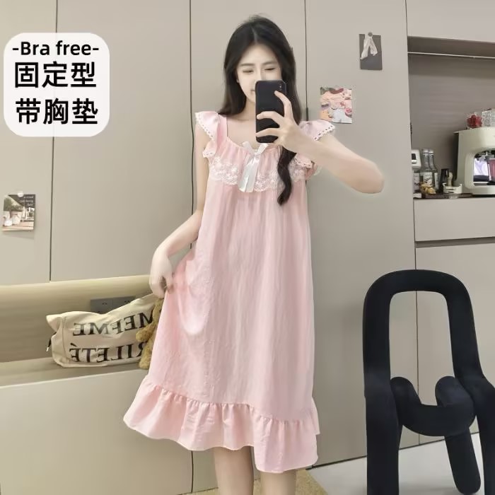 GZ买手优选云朵棉睡衣甜美风带胸垫小飞袖吊带睡裙家居服170794528(预售3-5天发货)