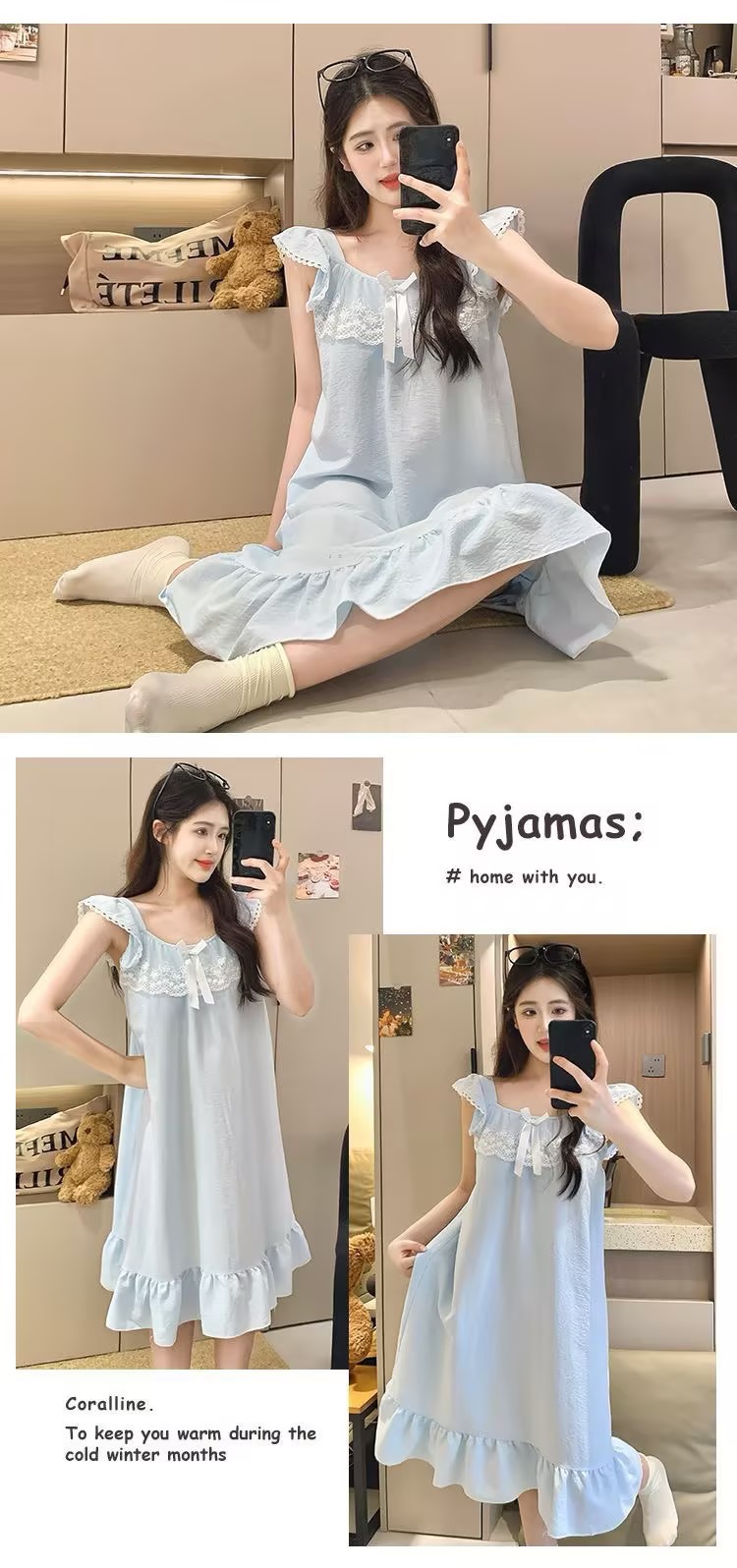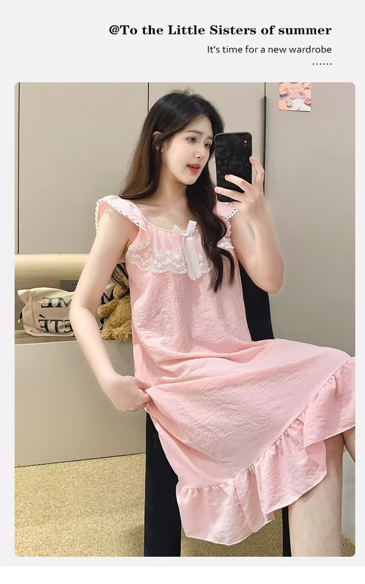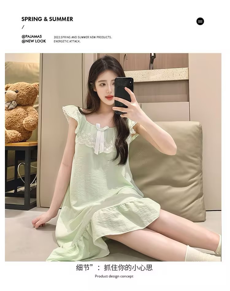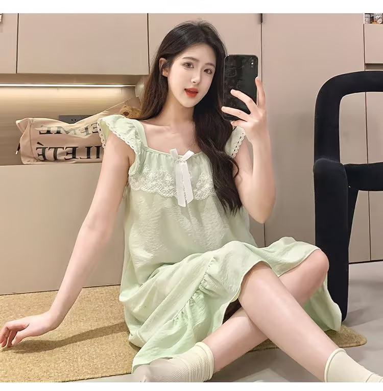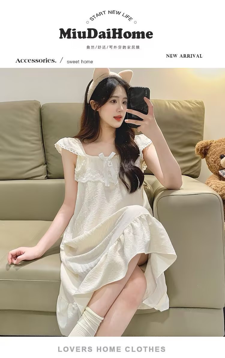 GZ买手优选云朵棉睡衣甜美风带胸垫小飞袖吊带睡裙家居服170794528(预售3-5天发货)