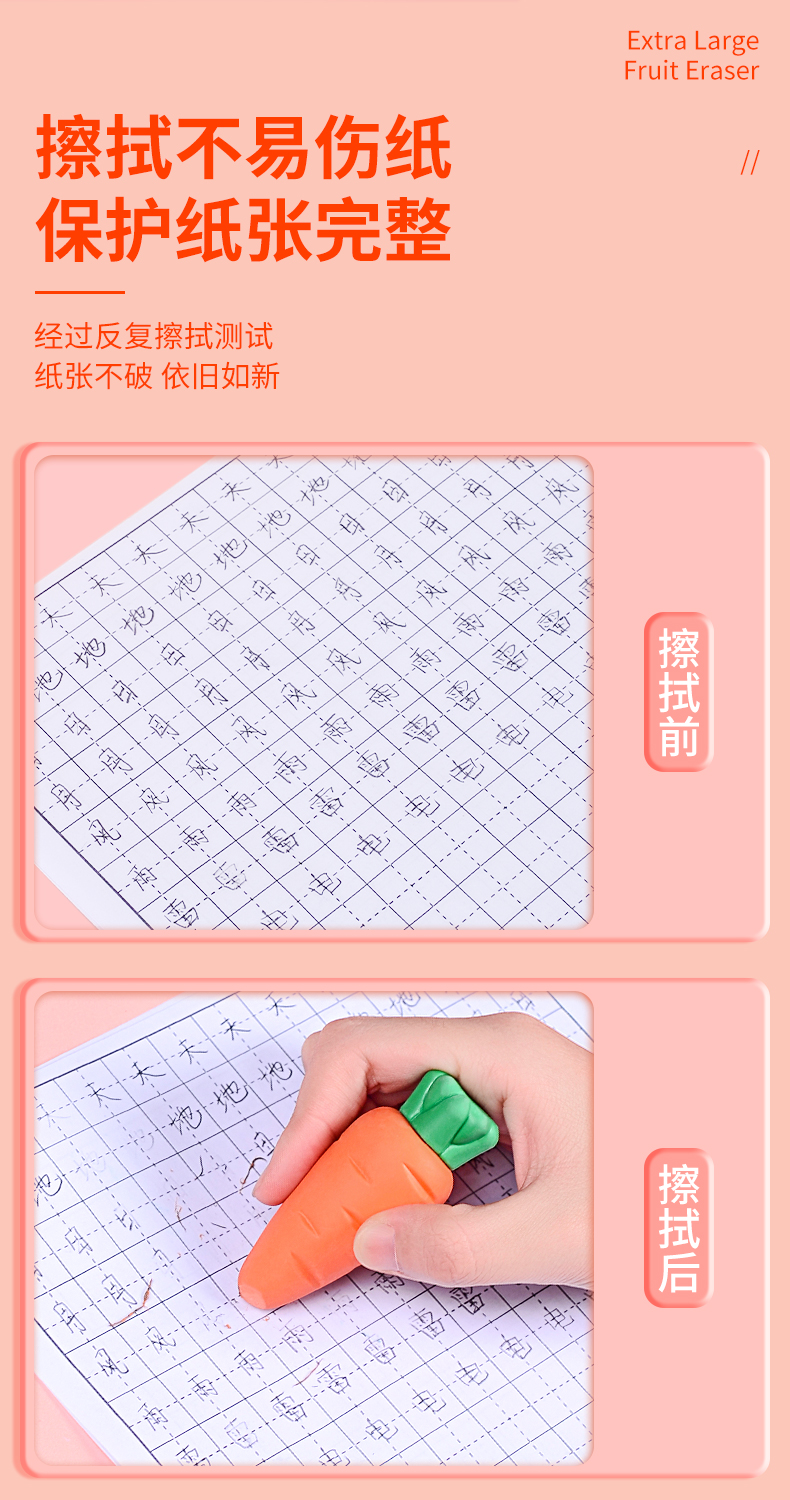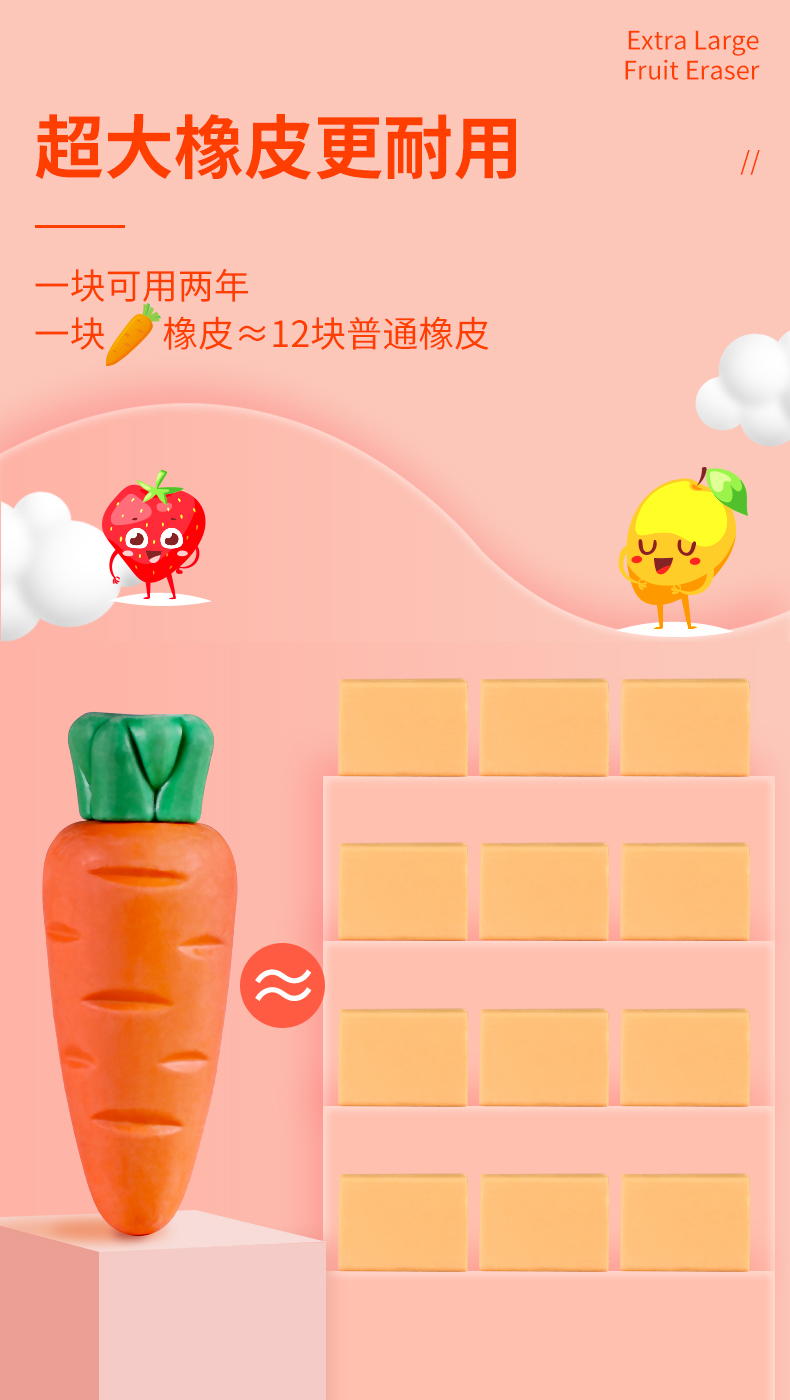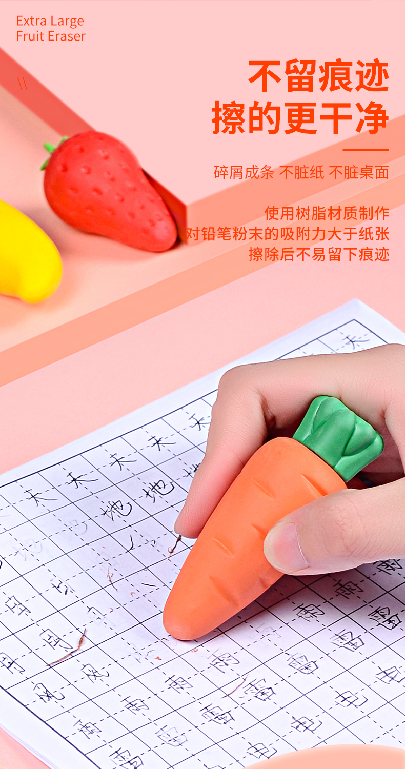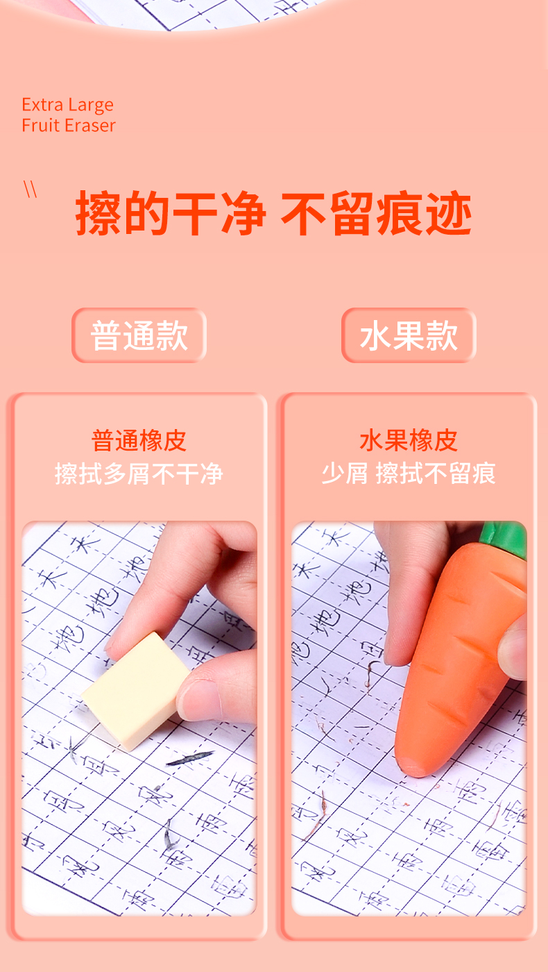 【大号升级材质 擦字成线 屑少成条】水果橡皮擦巨无霸不留痕儿童学生专用小学生胡萝卜草莓无屑像笔擦象皮创意卡通大像皮