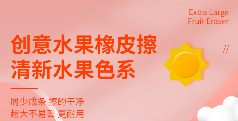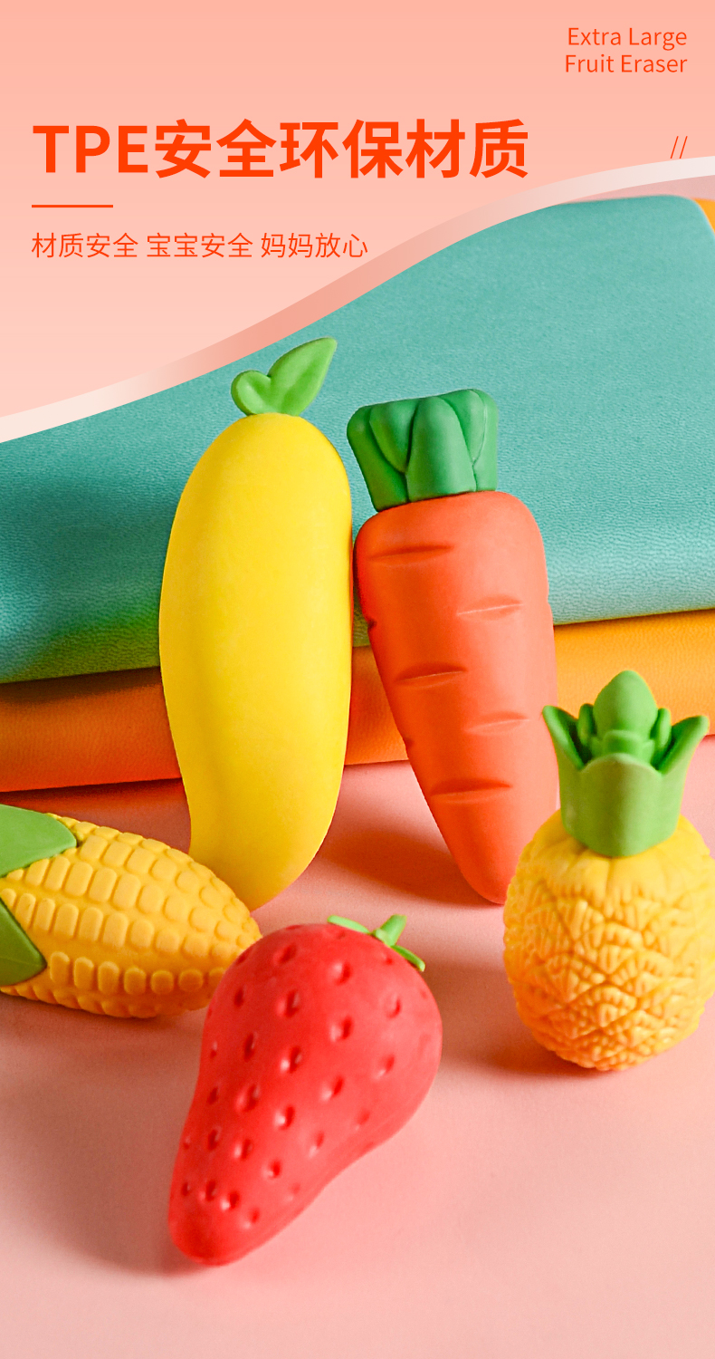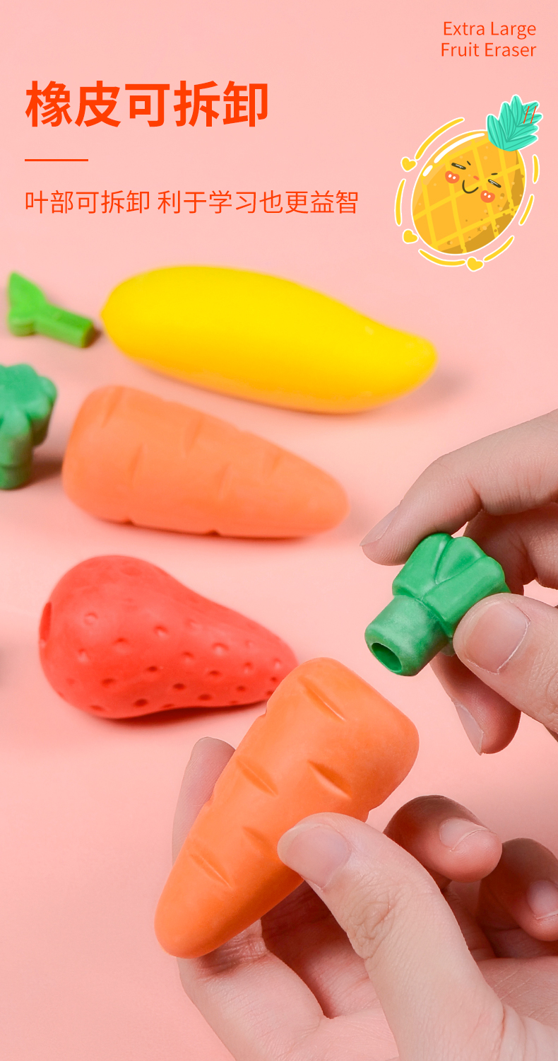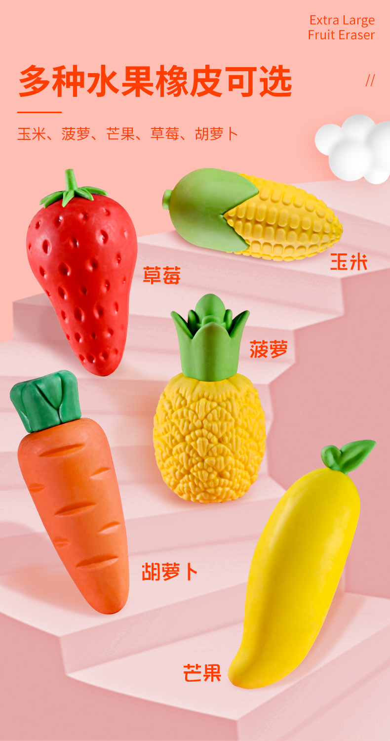 【大号升级材质 擦字成线 屑少成条】水果橡皮擦巨无霸不留痕儿童学生专用小学生胡萝卜草莓无屑像笔擦象皮创意卡通大像皮