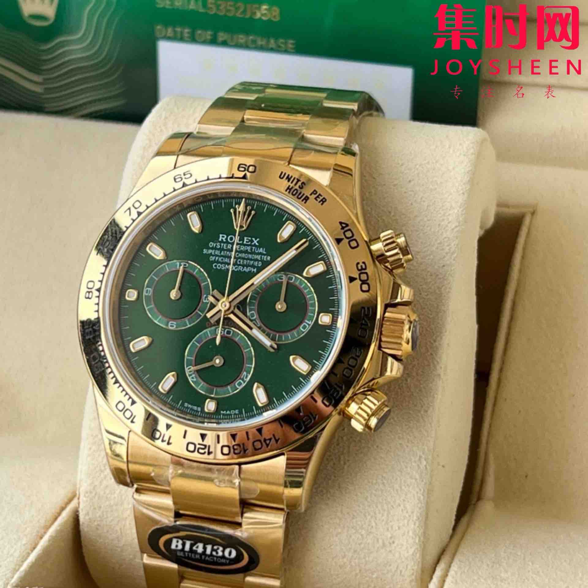 劳力士宇宙计型 BT迪通拿 全金款 绿金迪 男士腕表 丹东4130机 新品上市,BT迪通拿全金款,三段拼接头粒,侧面不漏钢,原版开模,对版全金迪通拿,BT一贯秉承只有更好的工匠精神