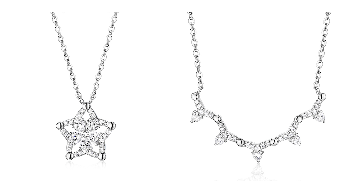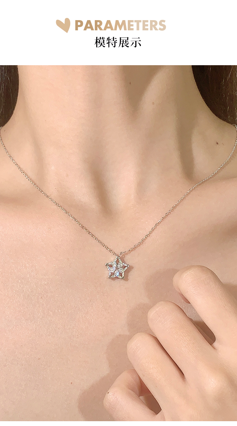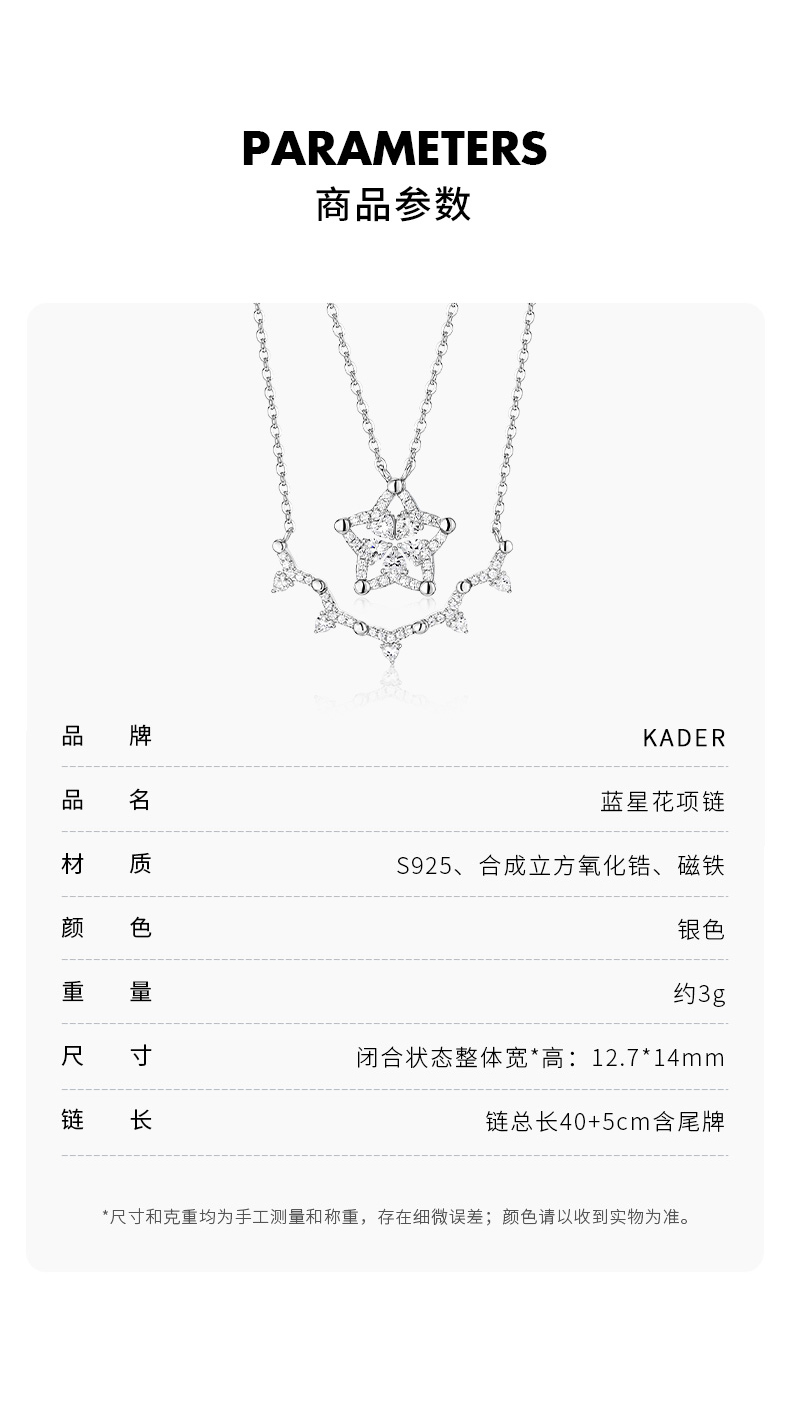 卡蒂罗/KADER 蓝星花 可展开/闭合 一饰两戴 经典五瓣花满镶锆石星星造型设计原创吊坠 闪耀银河锁骨链 七夕表白礼物