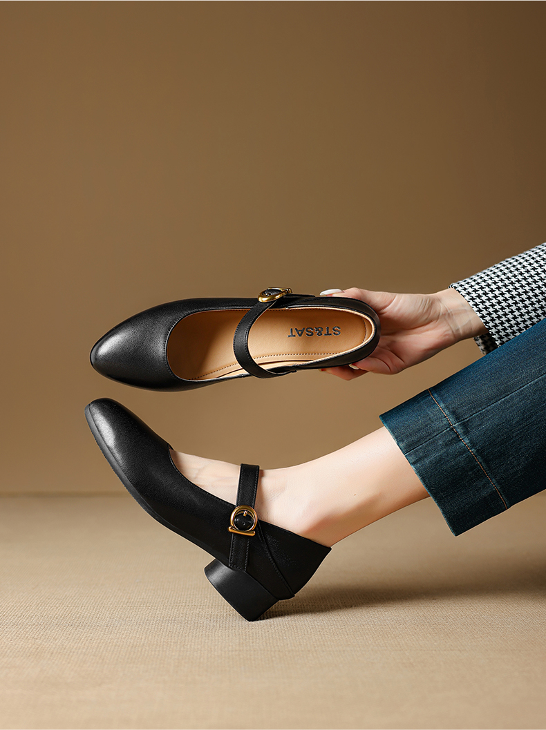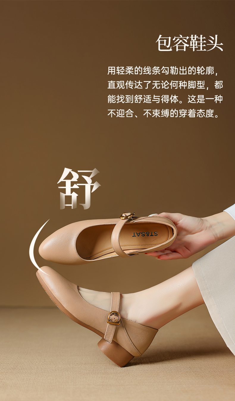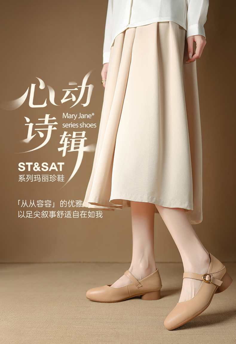 星期六26春新款简约通勤单扣粗跟玛丽珍SSE1111C21