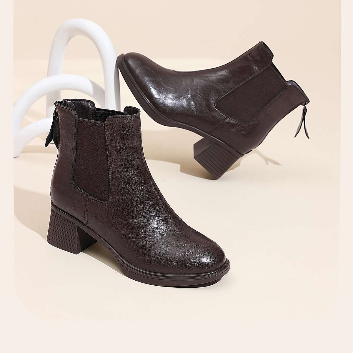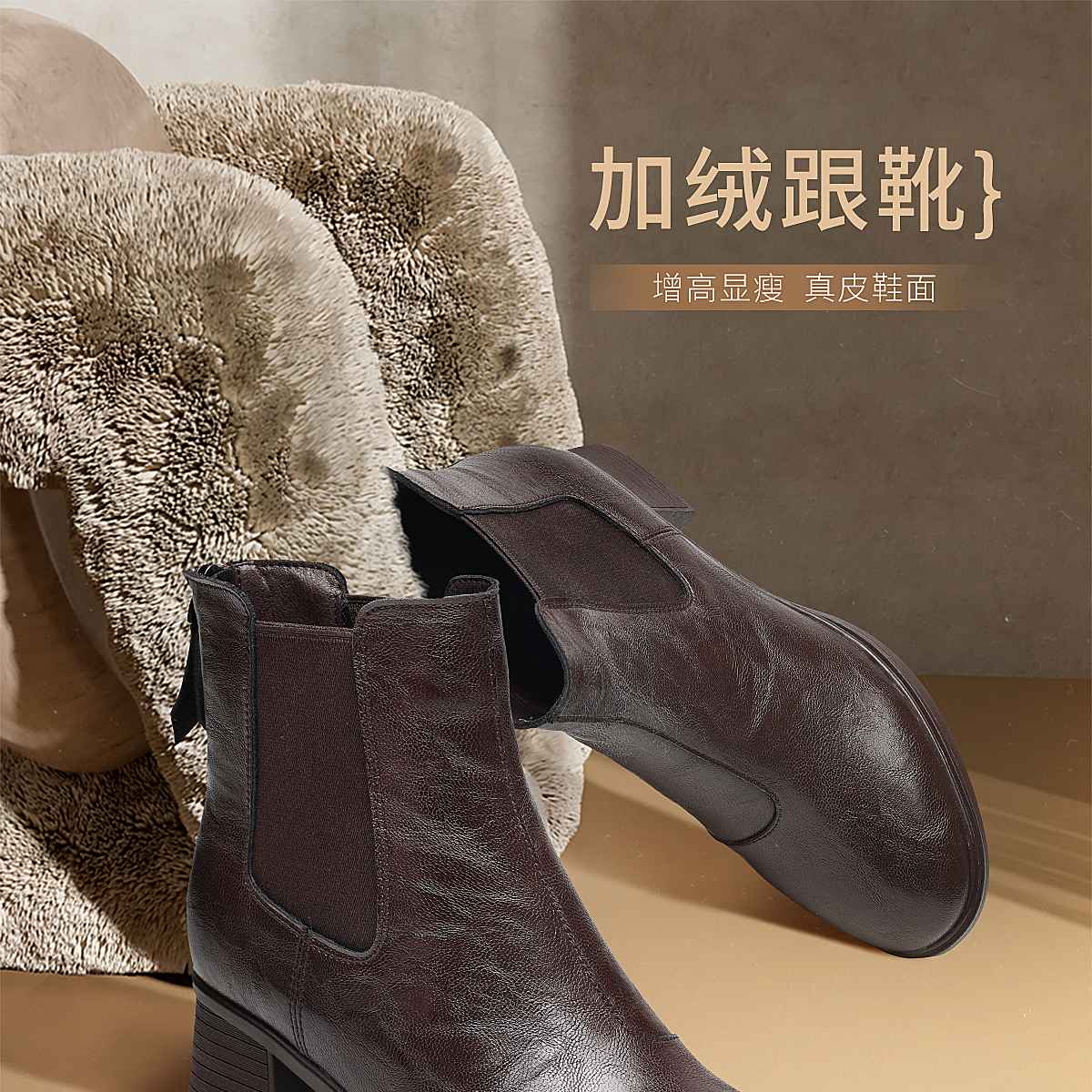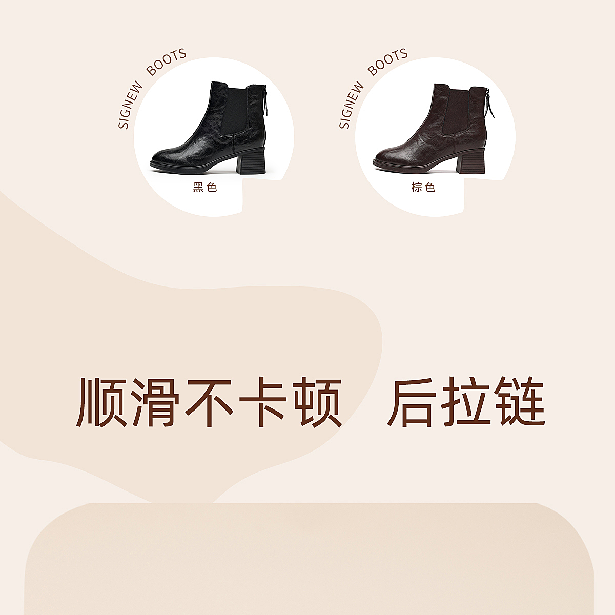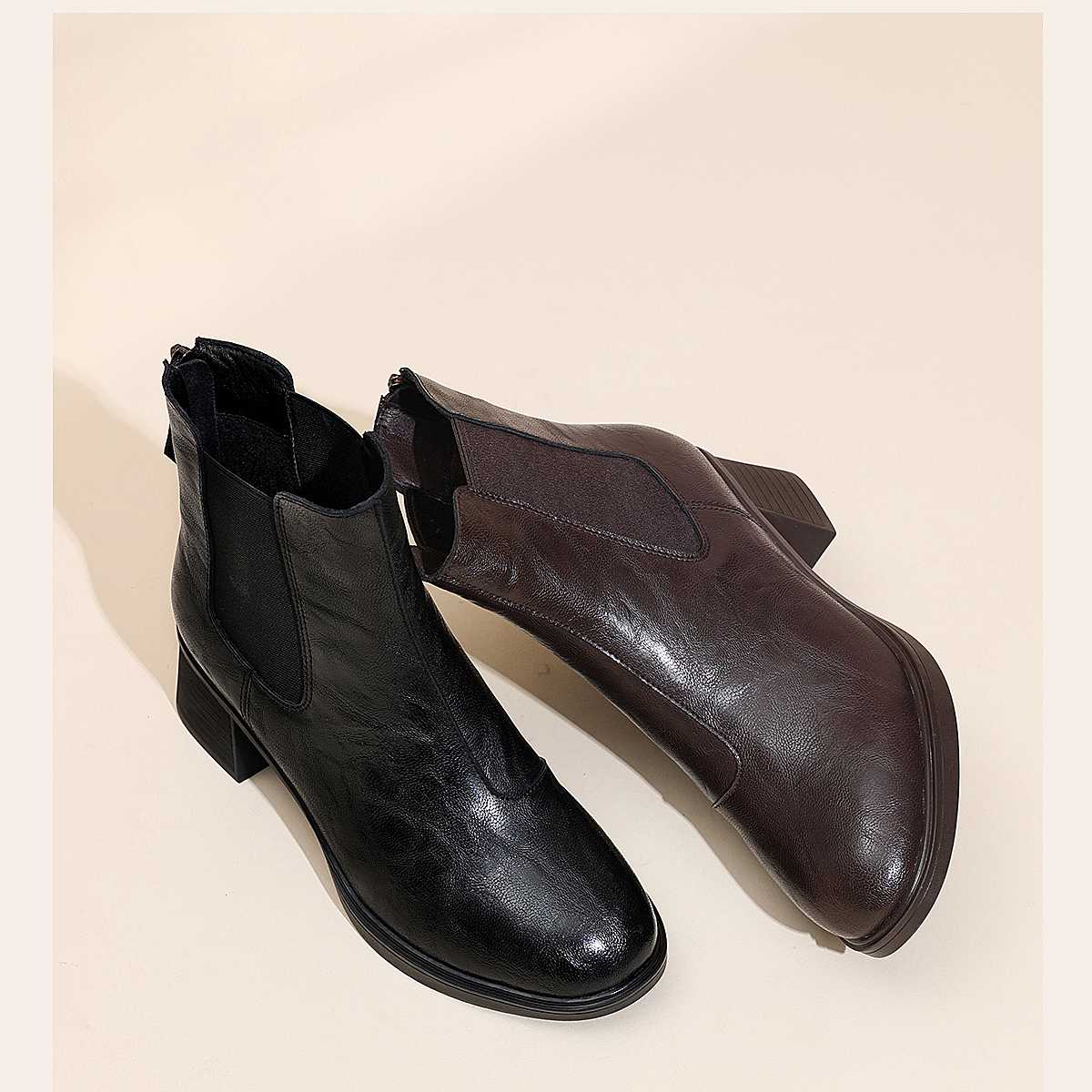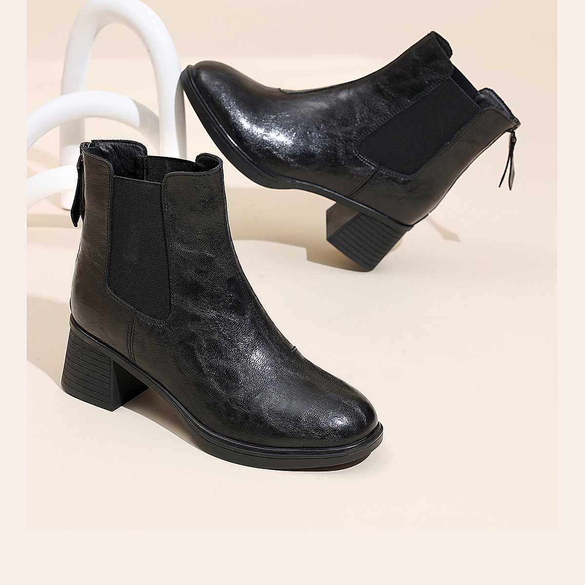 信诺加绒妈妈棉鞋女粗跟瘦瘦靴百搭气质短靴切尔西靴2025冬季新款5M193-28TD