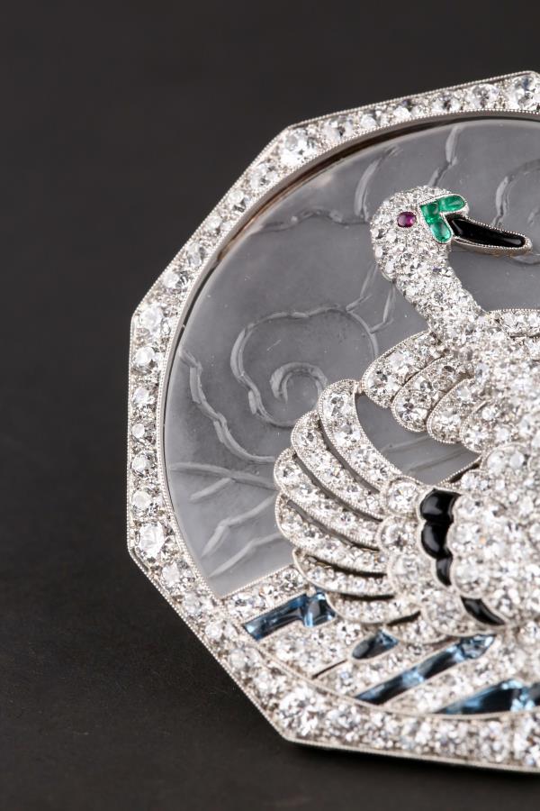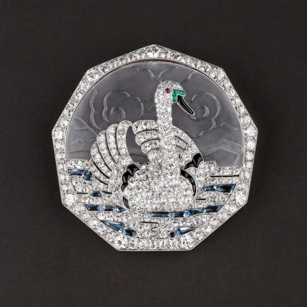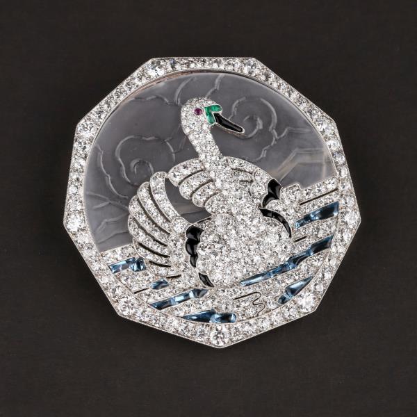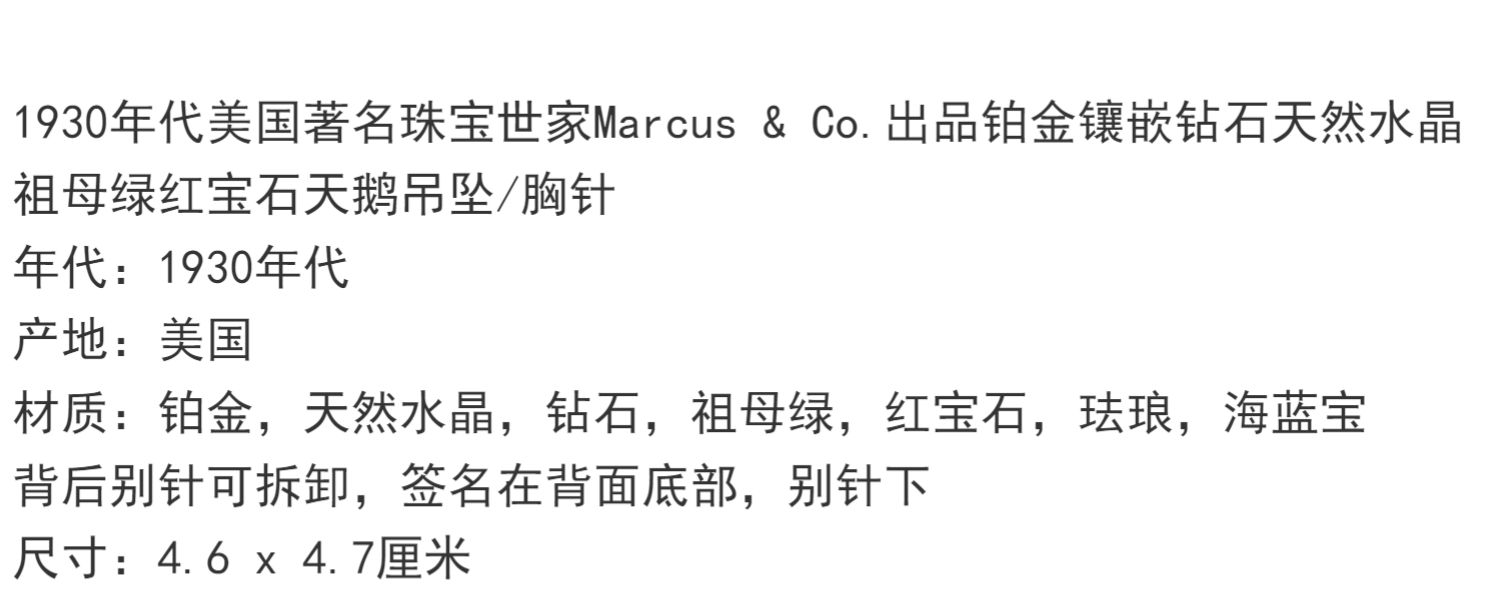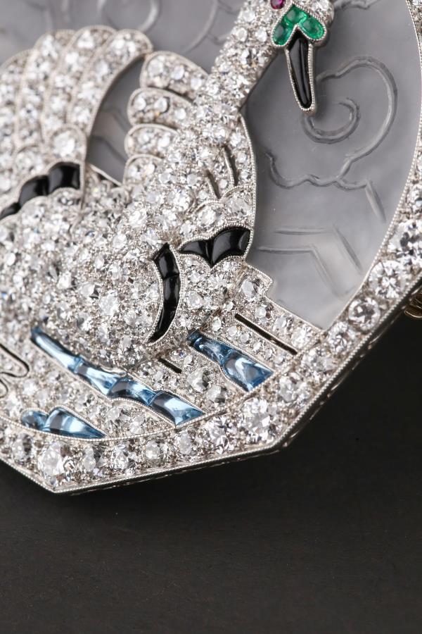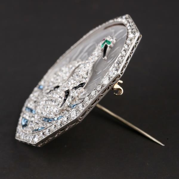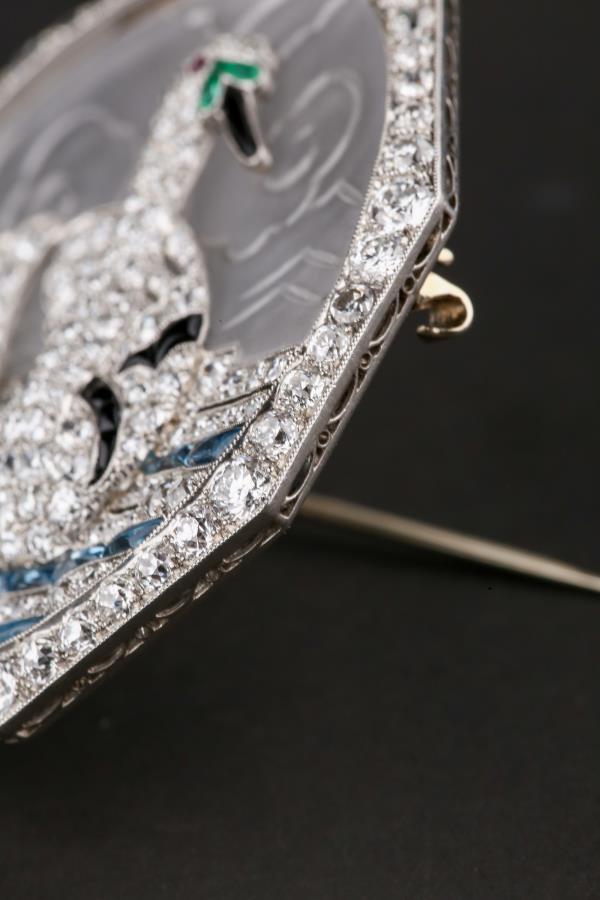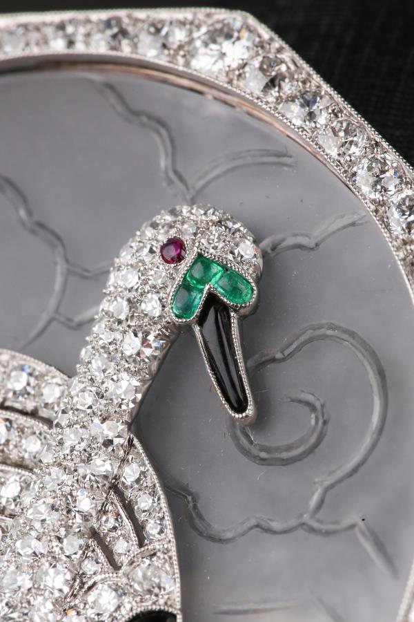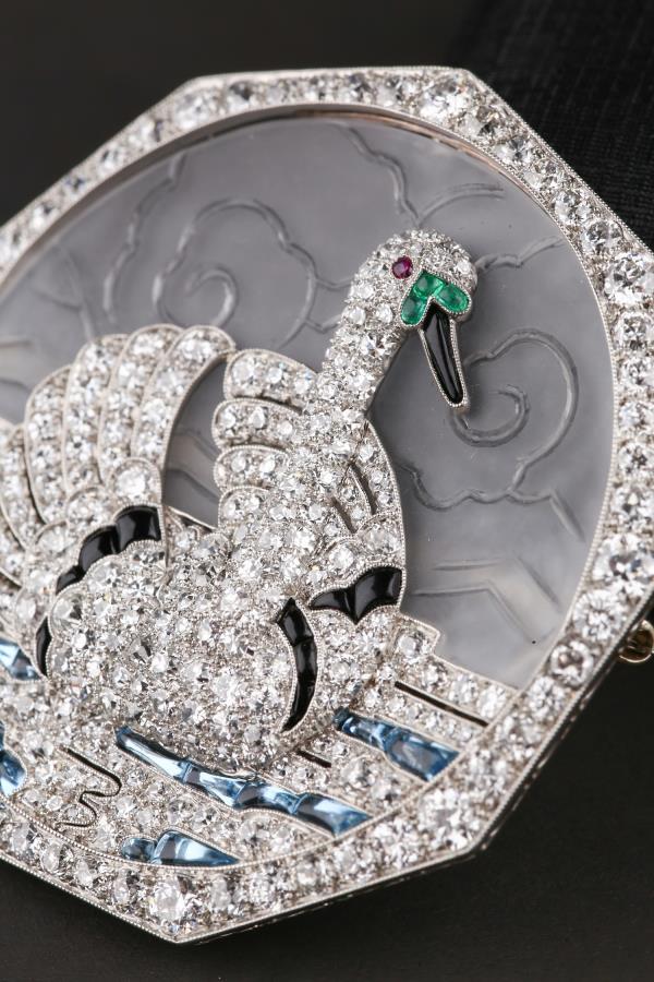 独角鹿西洋古董铂金镶嵌钻石天然水晶祖母绿红宝石海蓝宝天鹅胸针