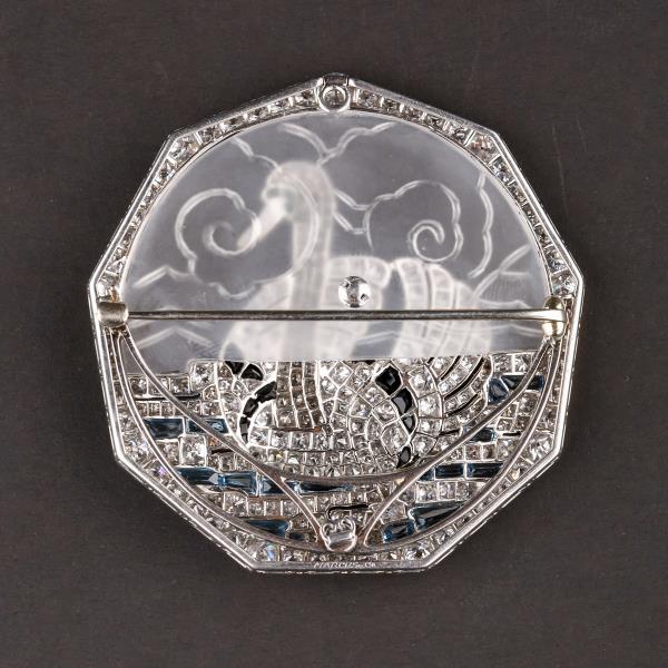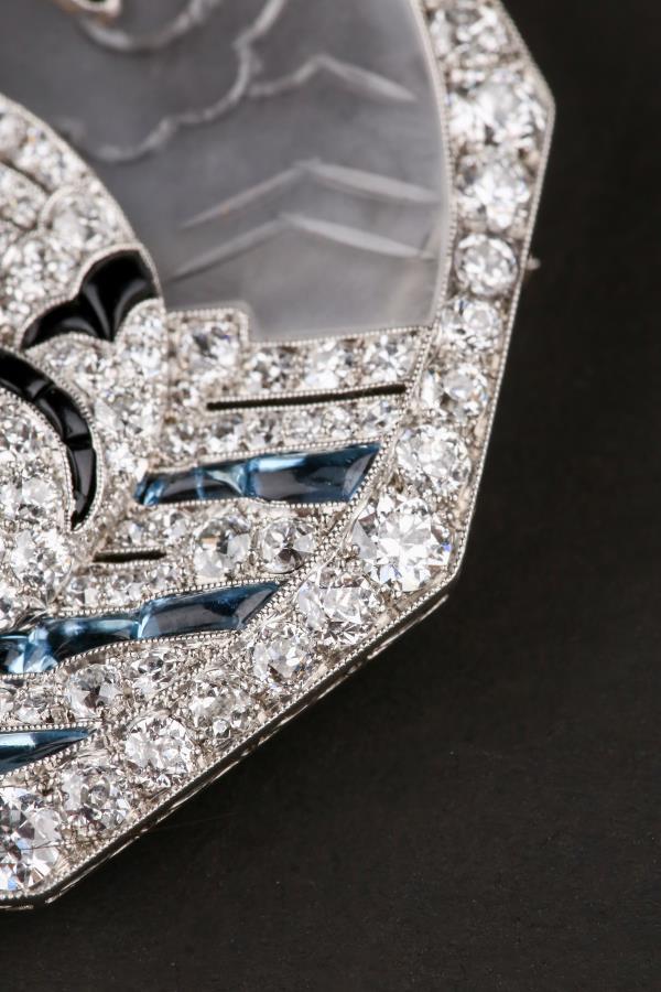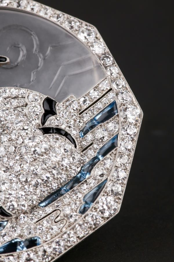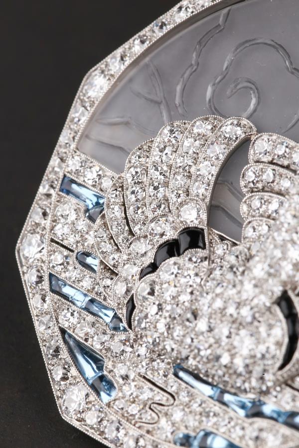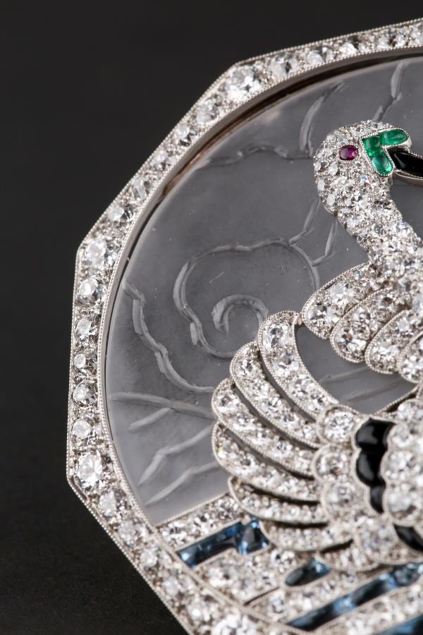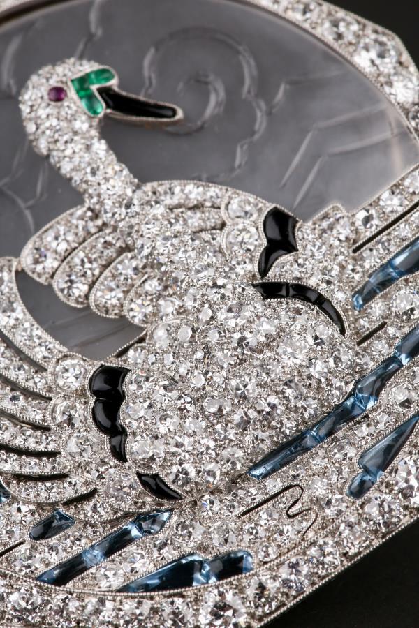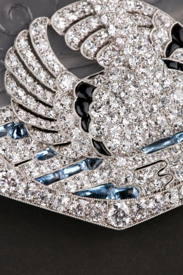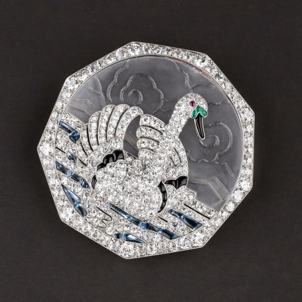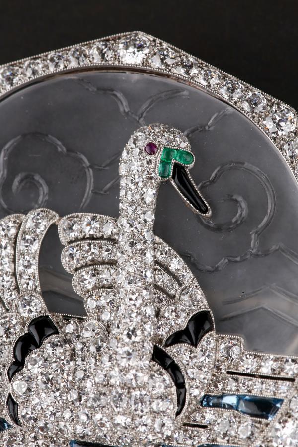 独角鹿西洋古董铂金镶嵌钻石天然水晶祖母绿红宝石海蓝宝天鹅胸针