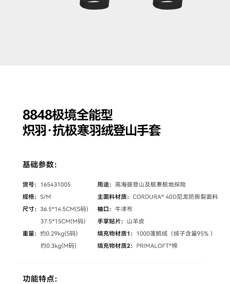 【炽羽】伯希和THE LIMIT SERIES系列极境抗极寒羽绒登山手套