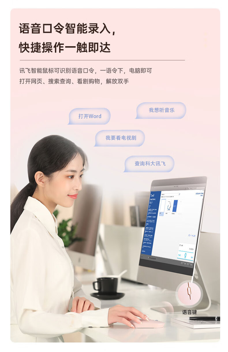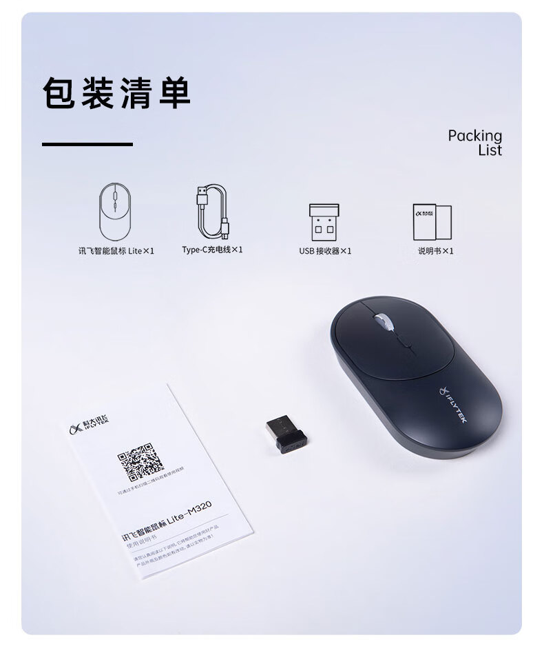 【科大讯飞】智能鼠标lite M320语音鼠标 无线办公 充电鼠标 语音输入 打字翻译