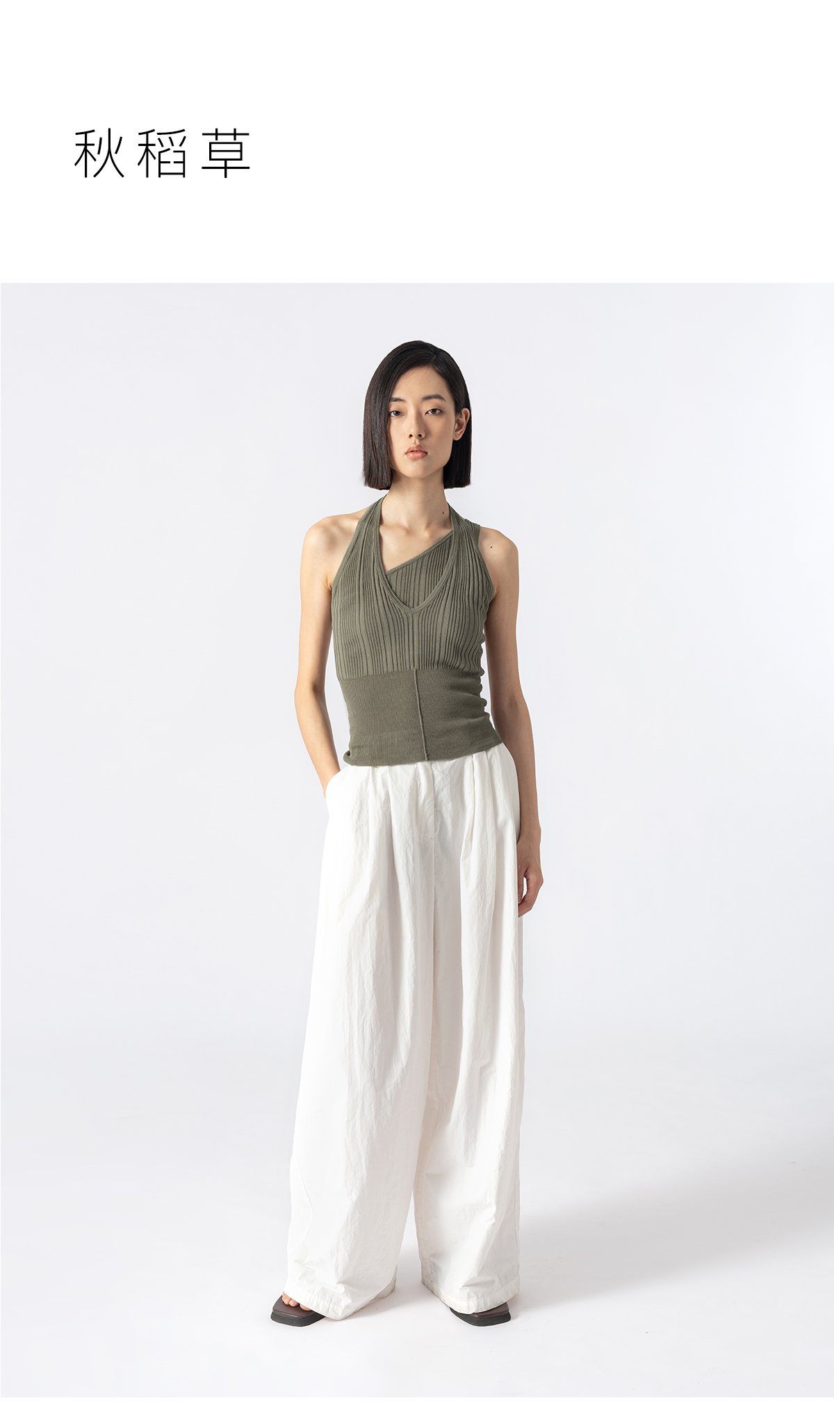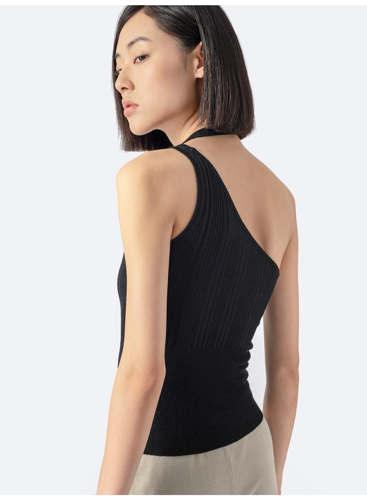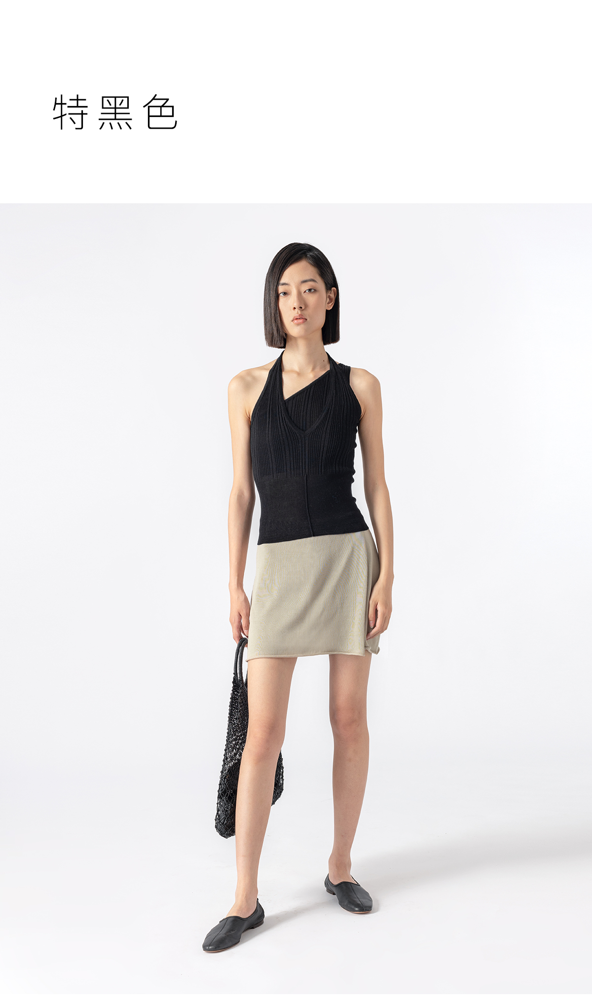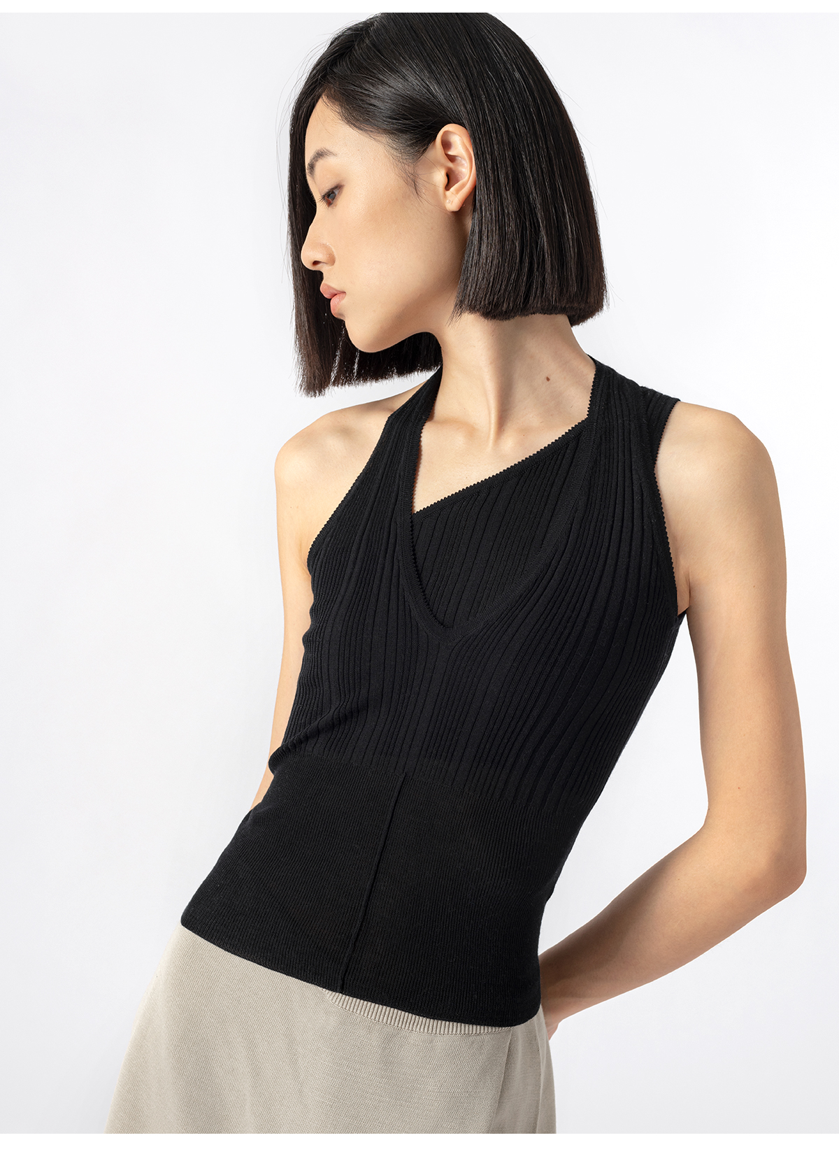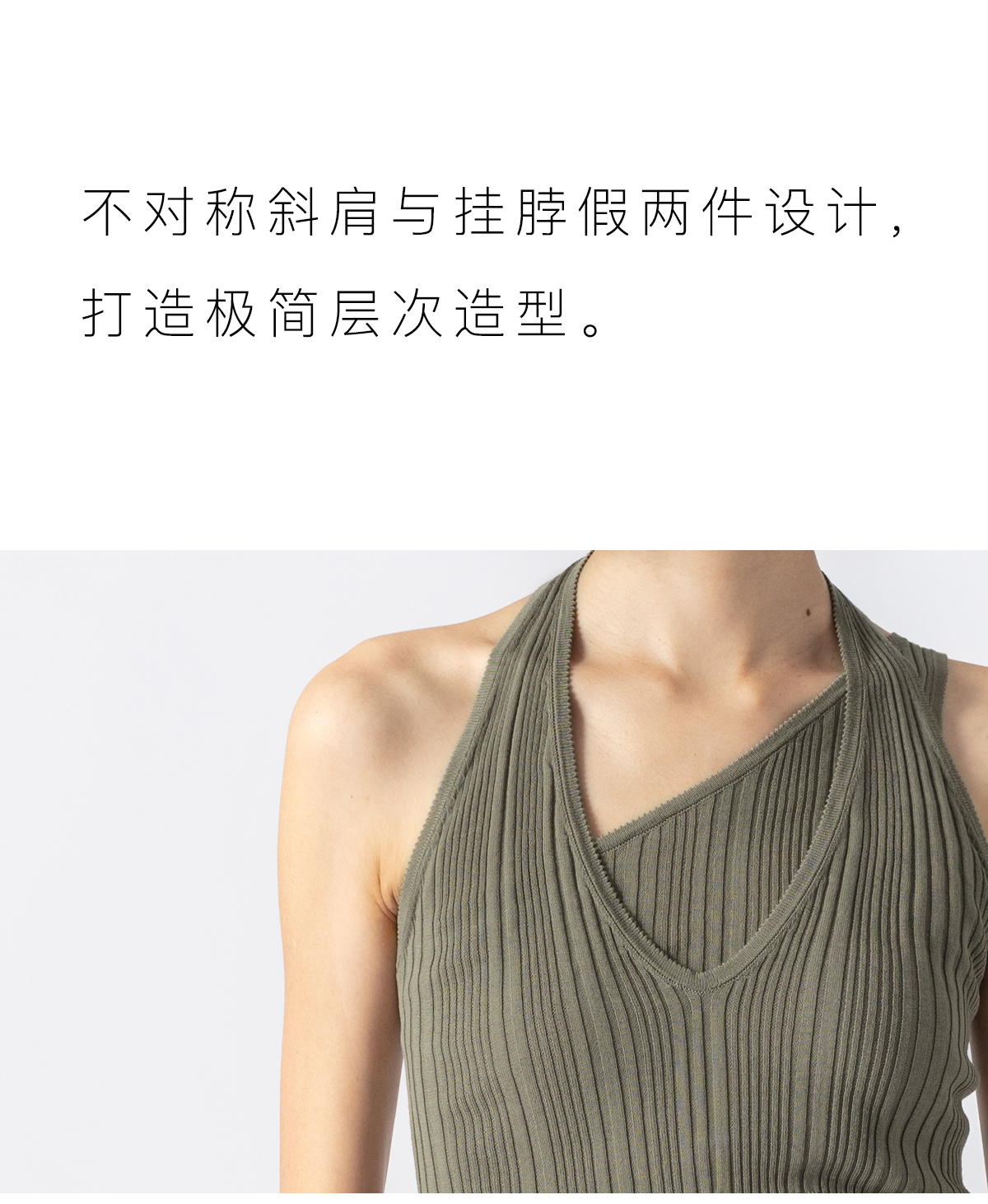 322工房精致造型假两件天蚕丝挂脖背心2023夏款性感针织吊带B075