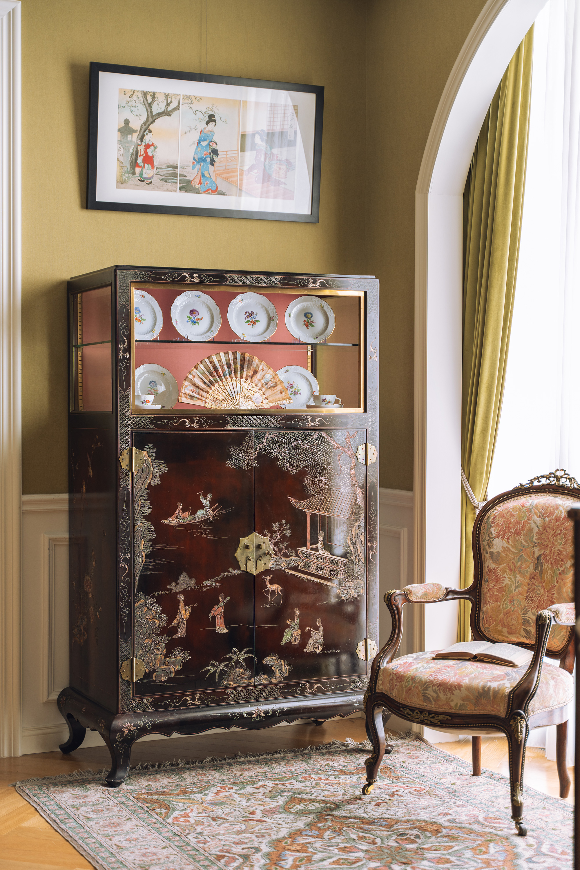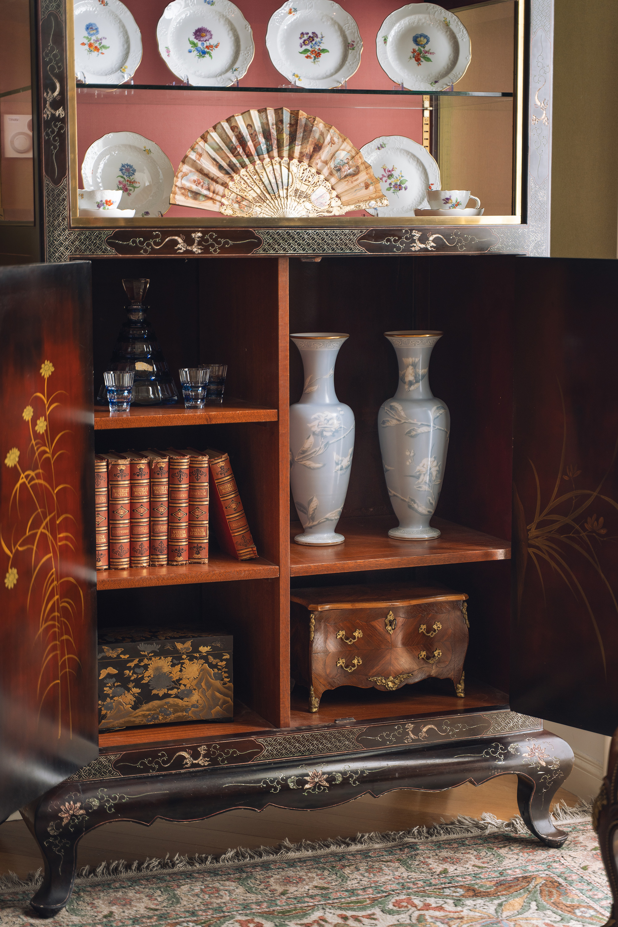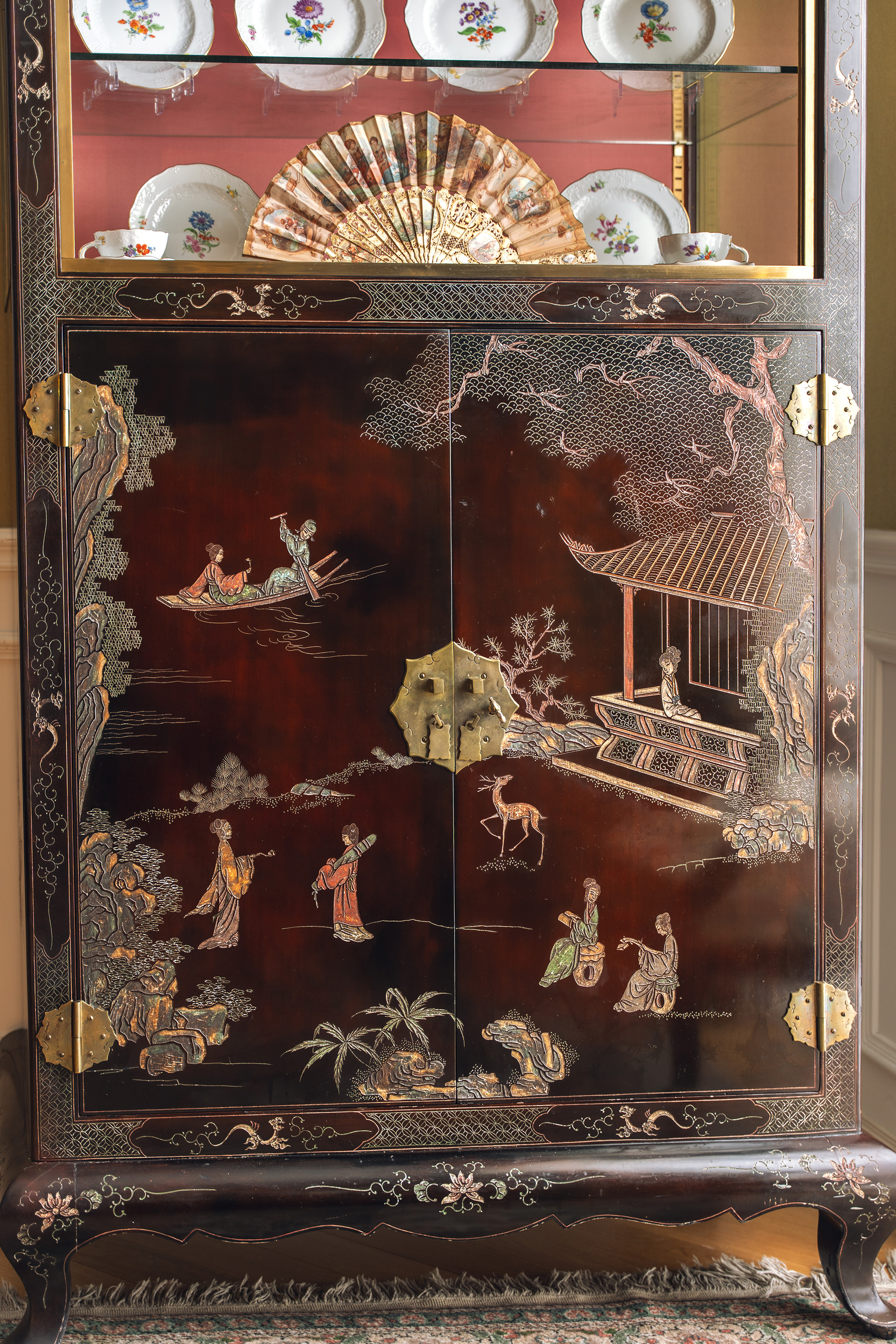 材质:漆,硬木,玻璃,铜鎏金