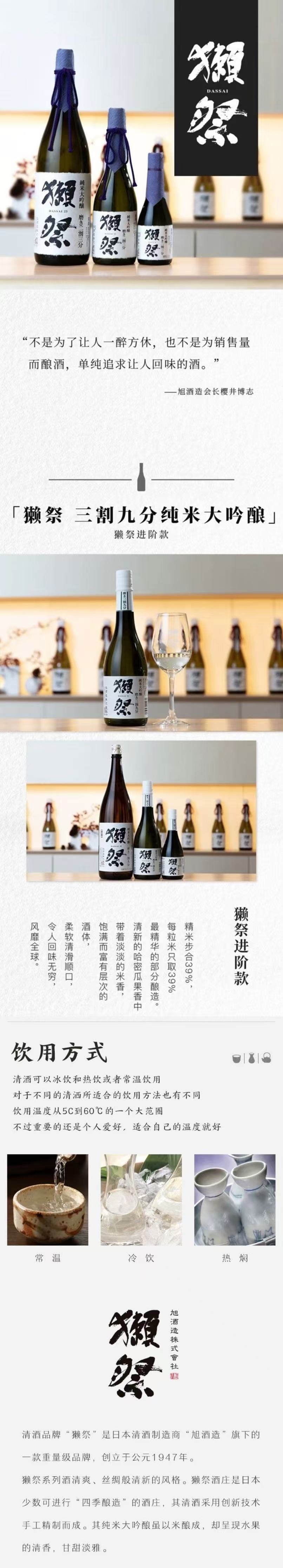 清酒DASSAI獭祭纯米大吟酿三割九分720ml/瓶赠送一袋琉球酒豪传说解酒护肝片经典款6包/袋