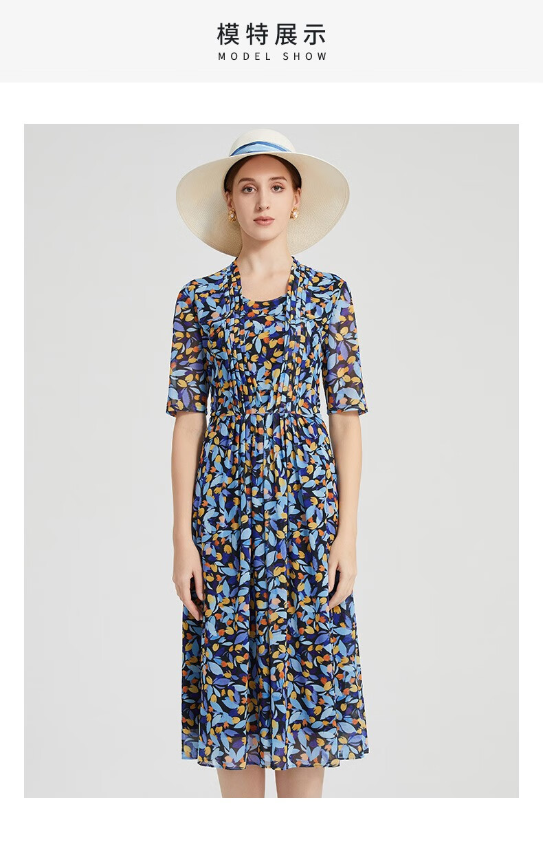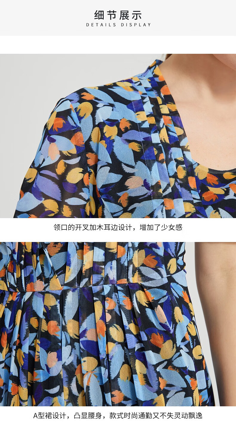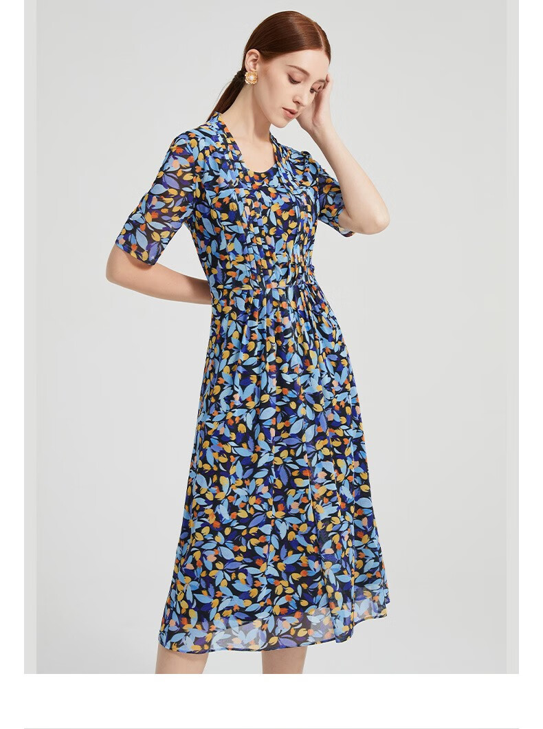皮尔卡丹女装简约波西米亚风通勤收腰连衣裙P2208D2147L3