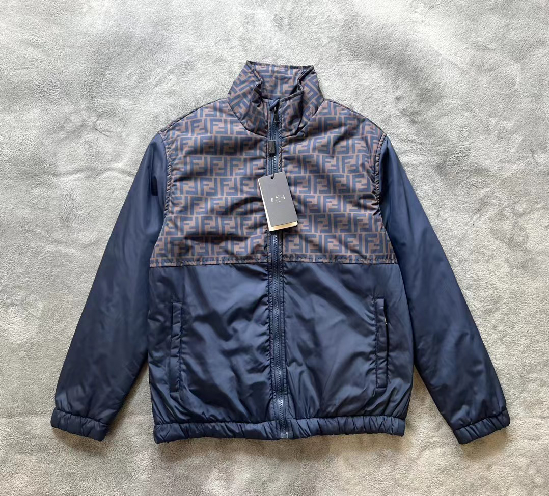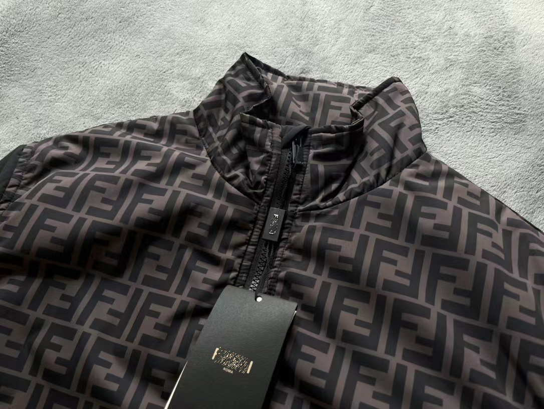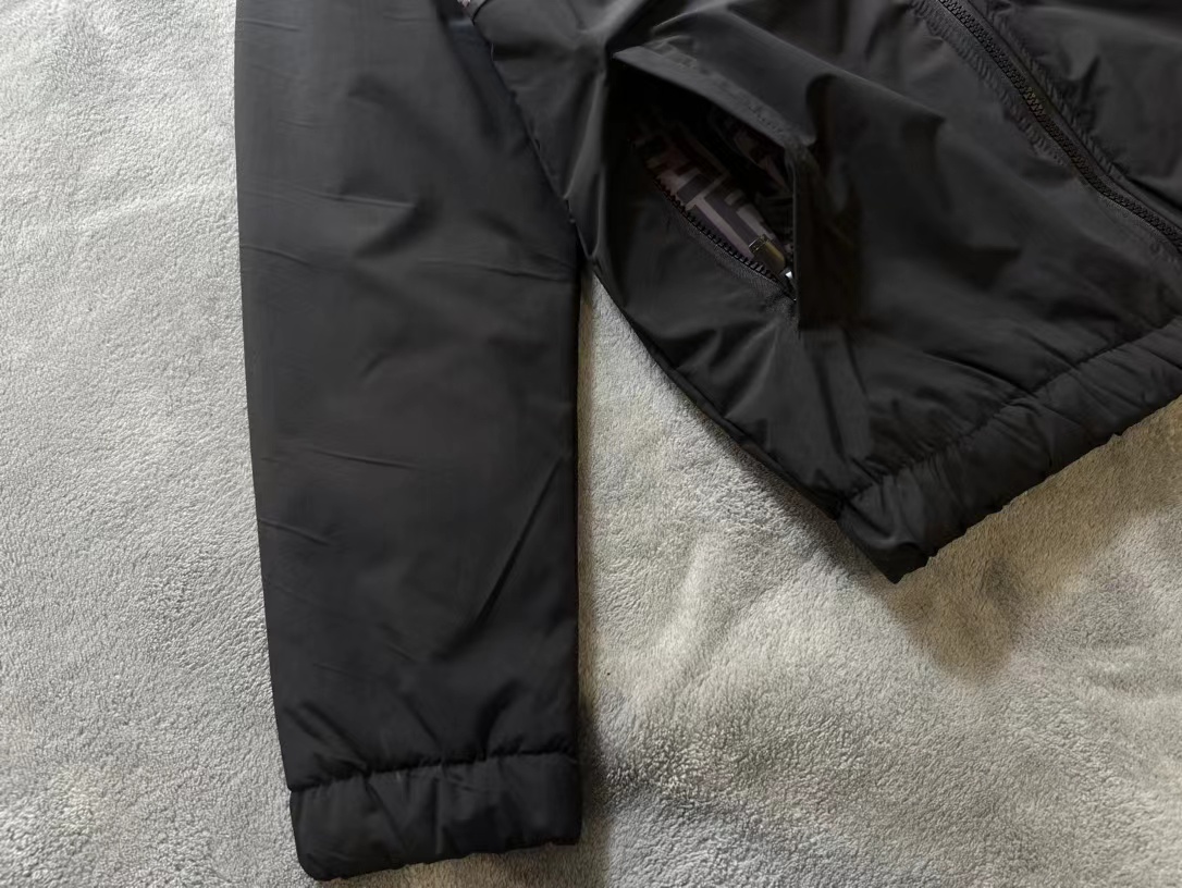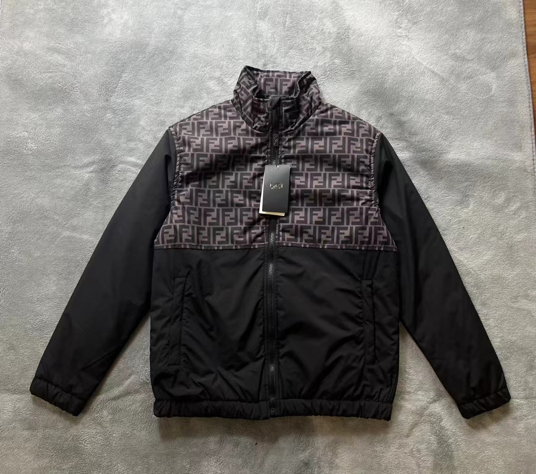 FD 秋冬季男士 黑色徽标印花梭织拼接 休闲棉夹克外套。内胆夹棉工艺,防风保暖。定制五金细节满满。冬季单穿或搭配皆宜。