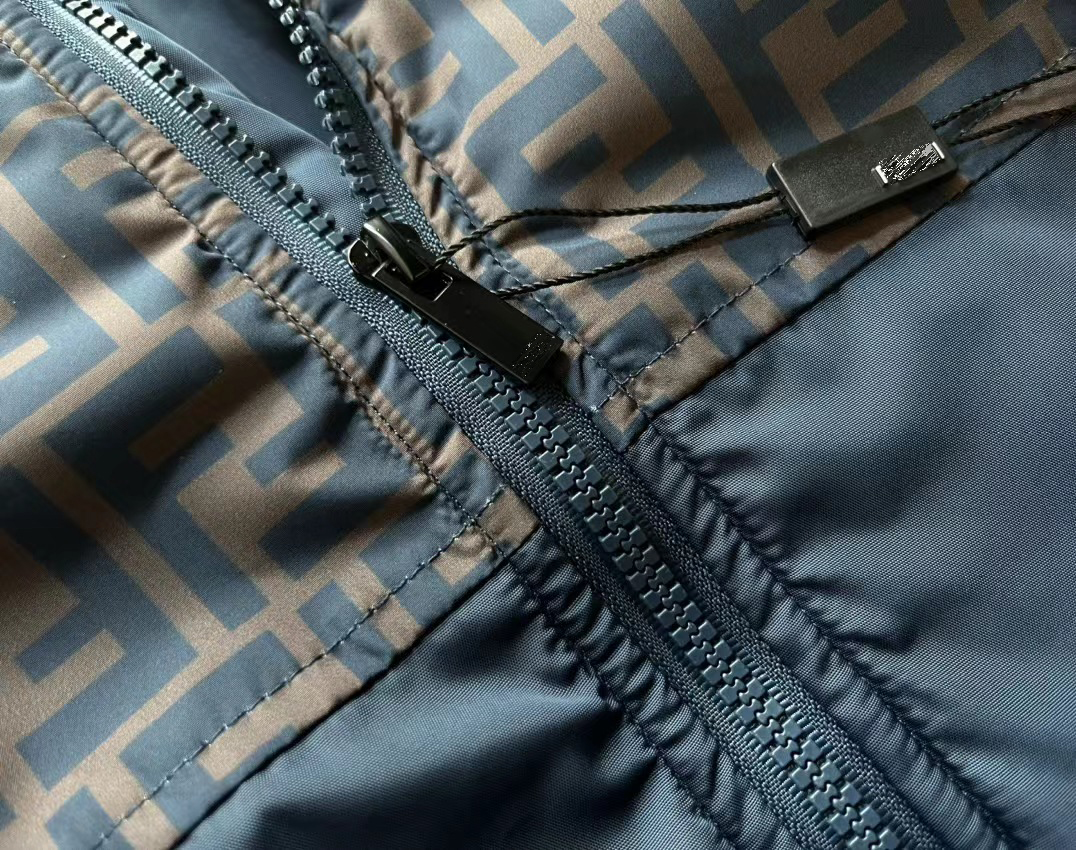 FD 男士 黑徽标印花梭织拼接 休闲棉夹克外套 Z-11088