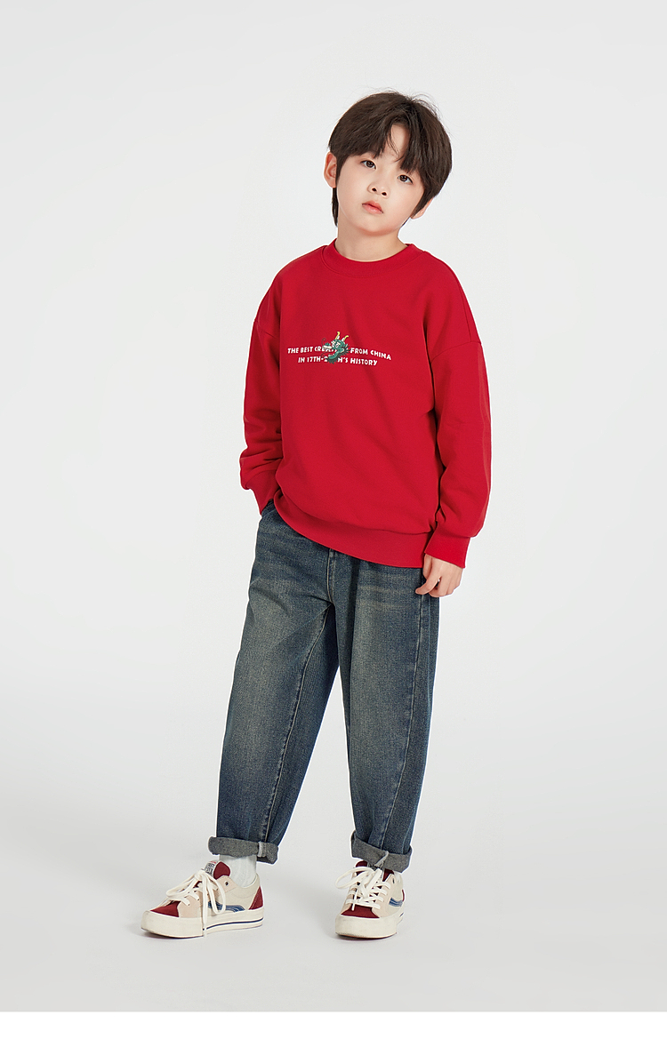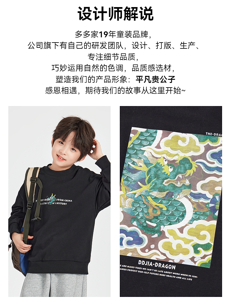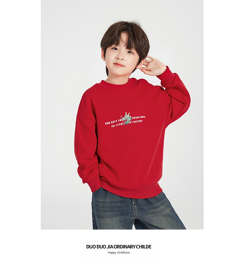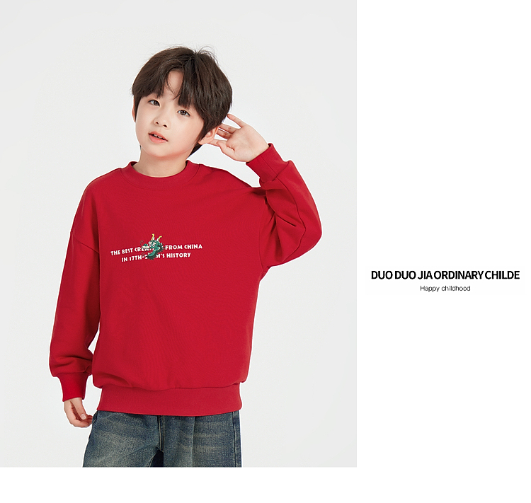 【团购价】多多家男童卫衣春秋款2025新款儿童中大童圆领套头字母印花上衣潮10335