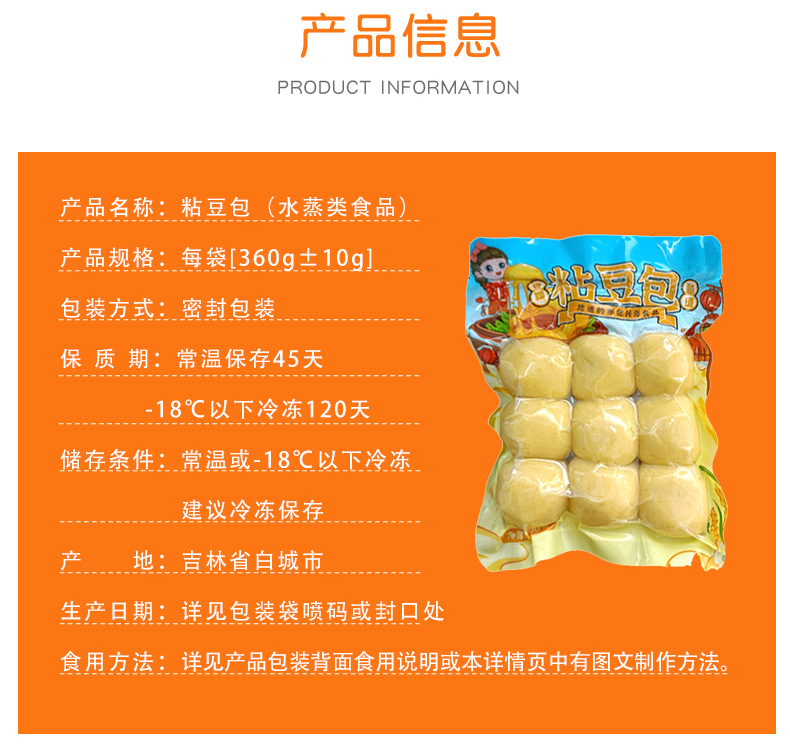 东北粘豆包360g/袋 黏黄米 芸豆馅 蒸煎 年糕 传统糕点 新老包装随机发货 包邮