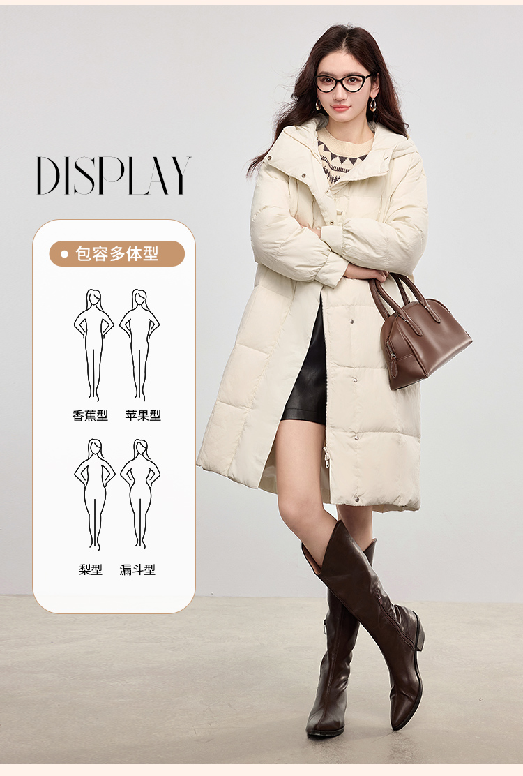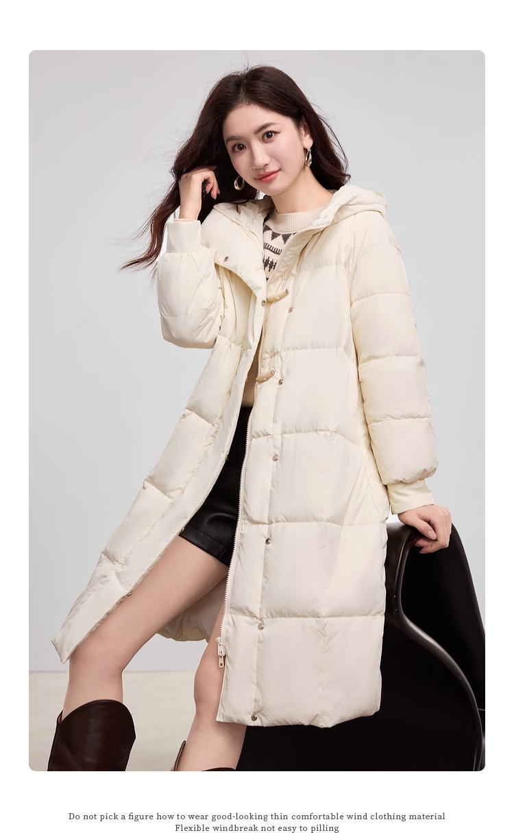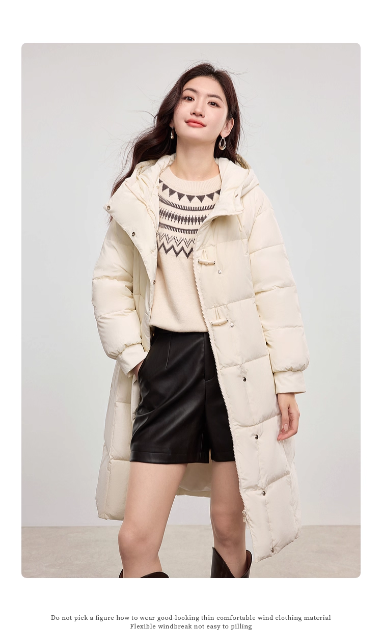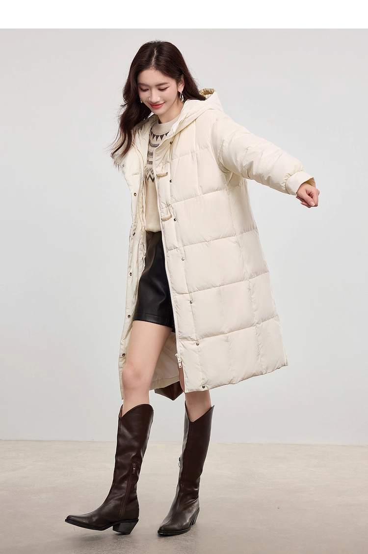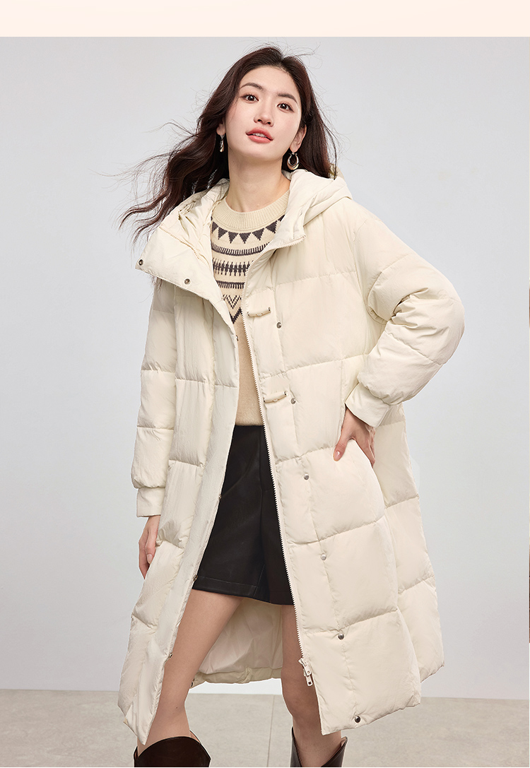 【年终特卖】熙世界90白鸭绒羽绒服女长款2025年冬季新款连帽防风御寒保暖外套