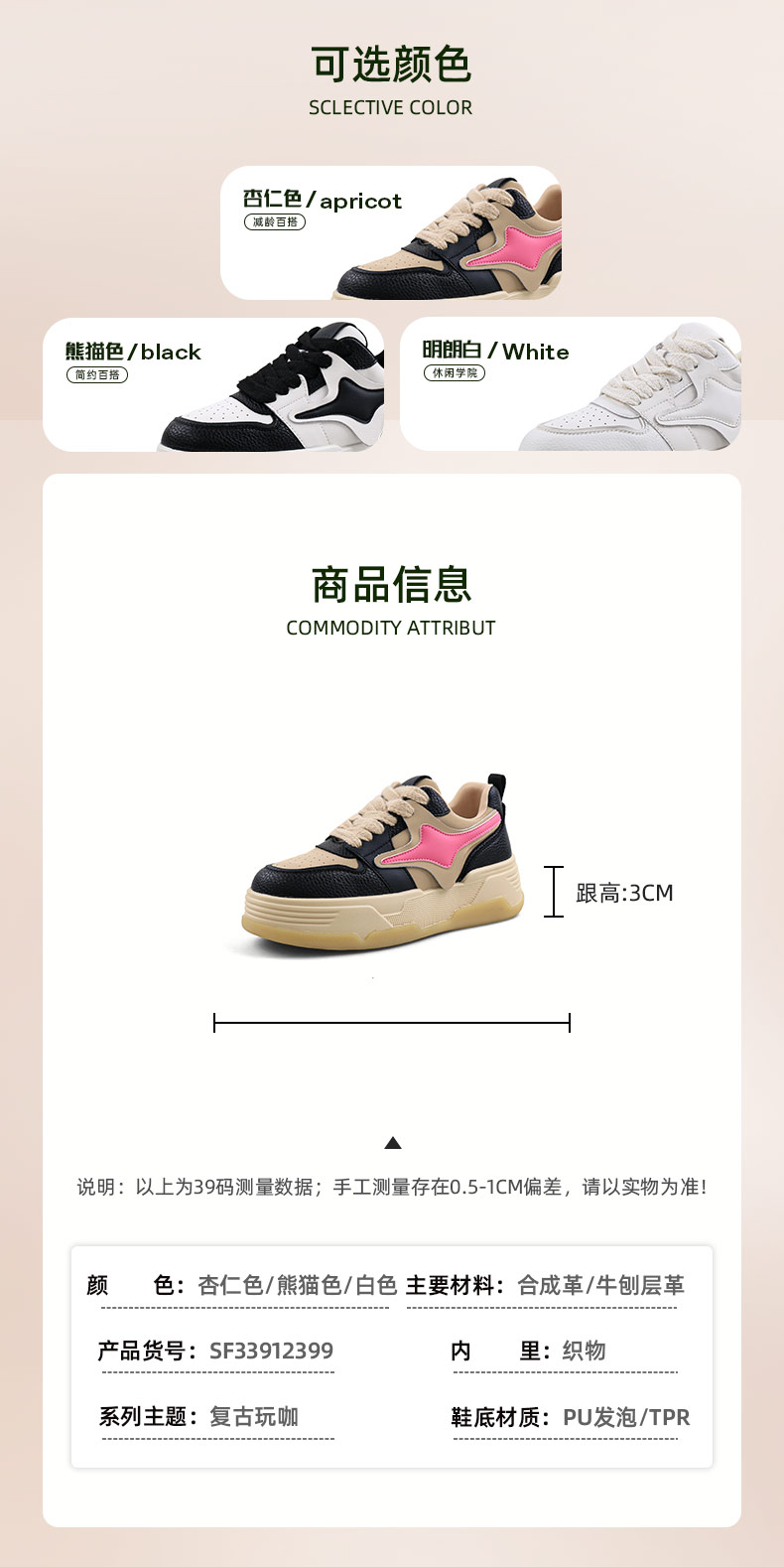 超值精选 | Safiya/索菲娅2023秋冬复古撞色面包鞋潮流街头运动板鞋 SF33912399