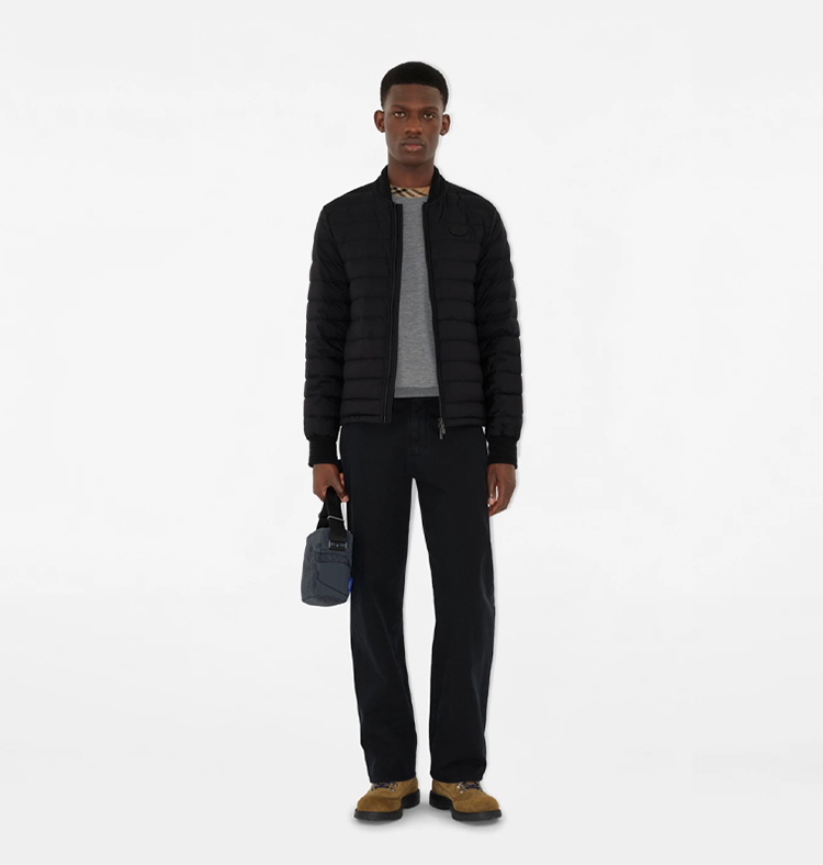 BURBERRY 巴宝莉 男士马术骑士徽标贴片绗缝尼龙羽绒服 黑色 8110272 A1189